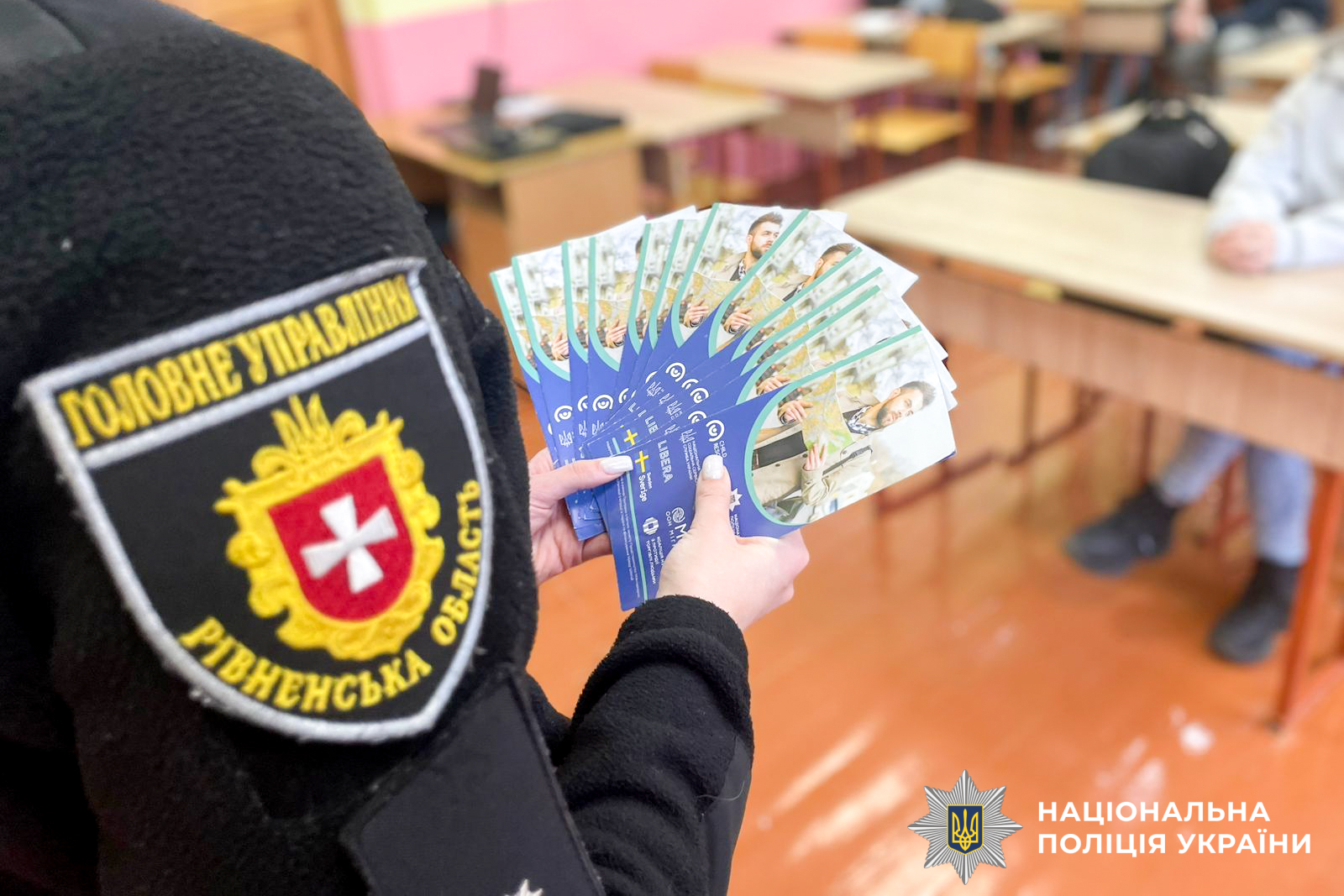 Поліцейські, які несуть службу у ліцеях Вараського, Сарненського та Рівненського районів, у рамках всеукраїнської акції розповідають учням про протидію будь-яким видам жорстокості, захист прав осіб, які стали жертвами таких злочинів, та притягнення кривдників до відповідальності.