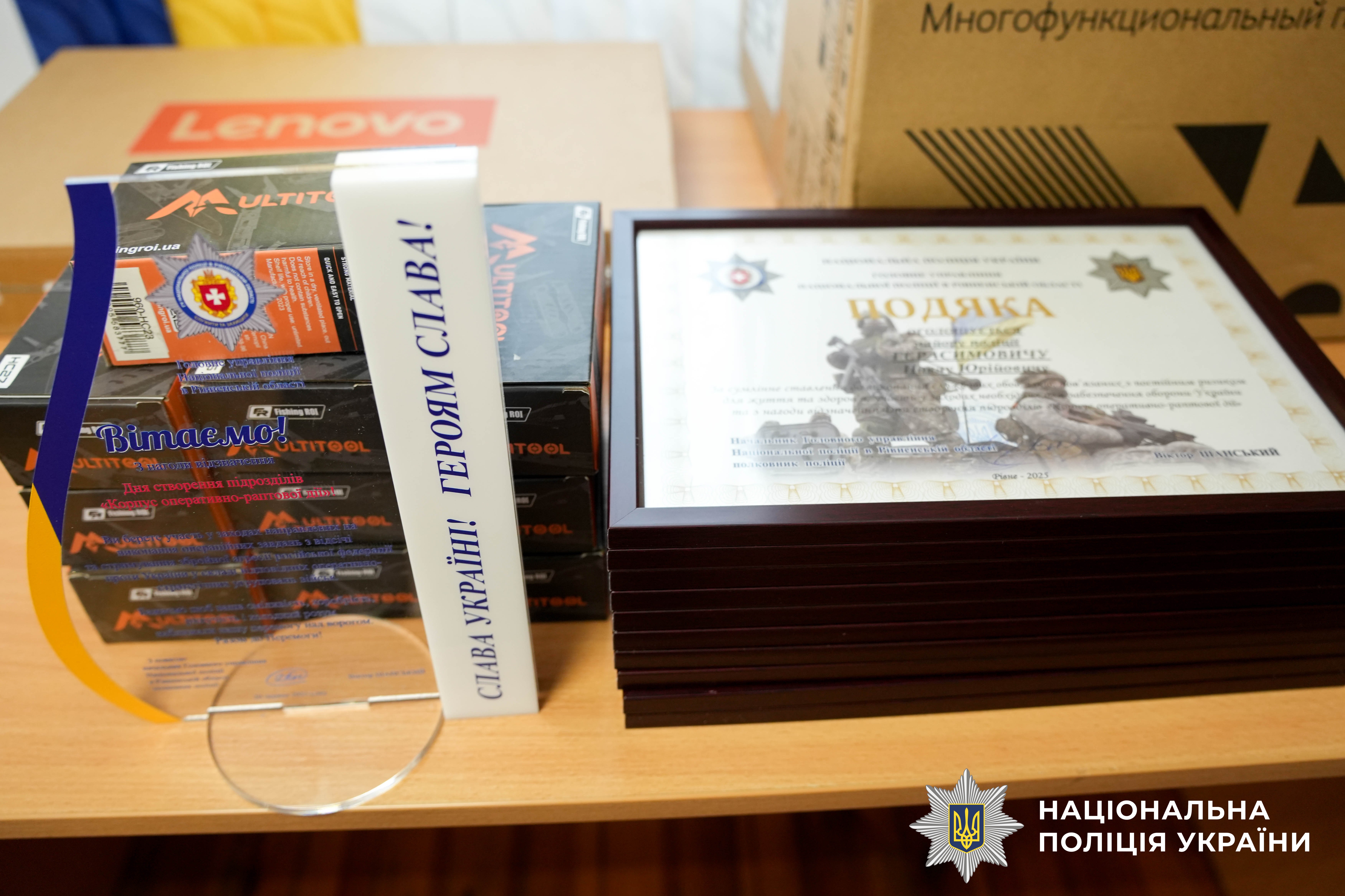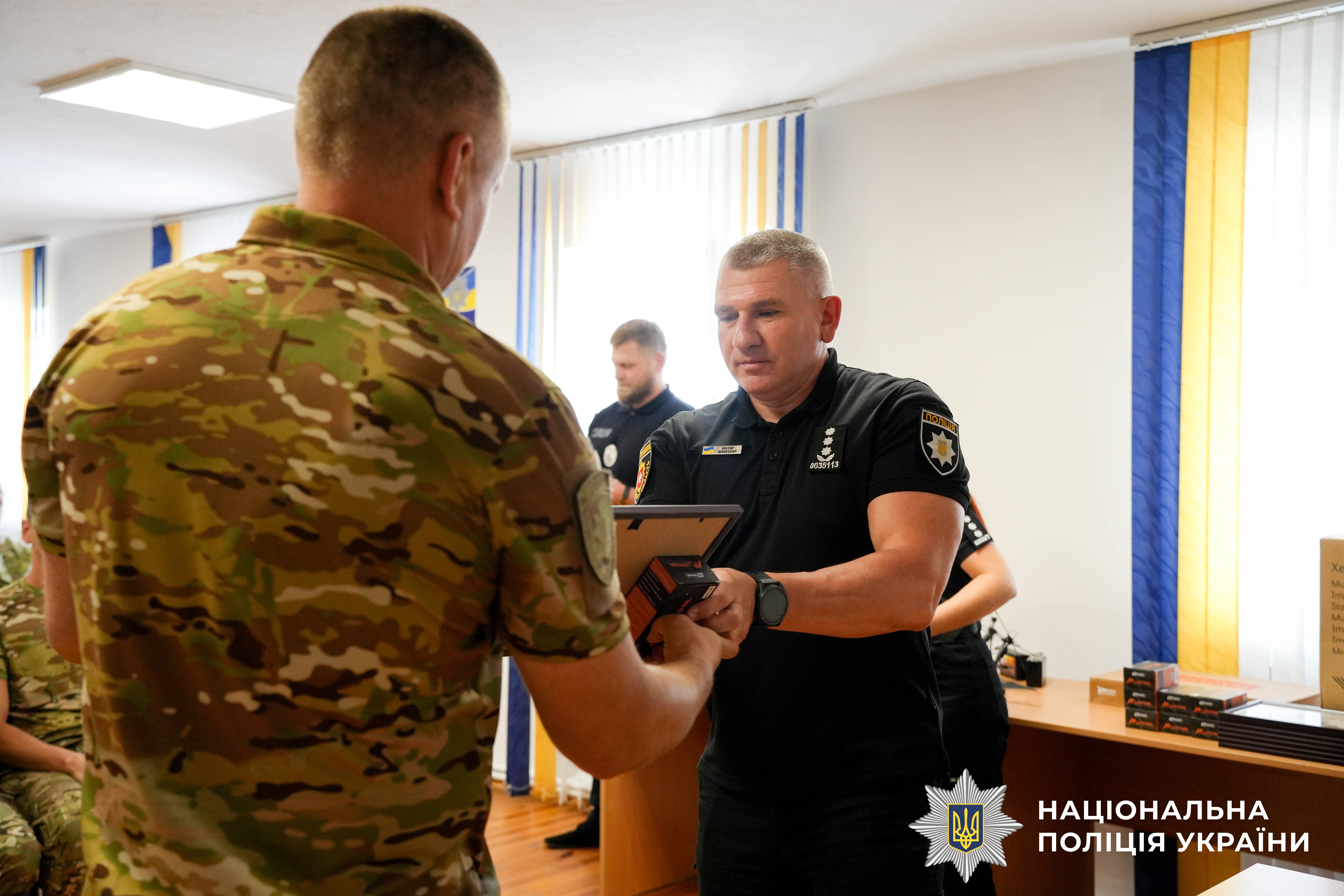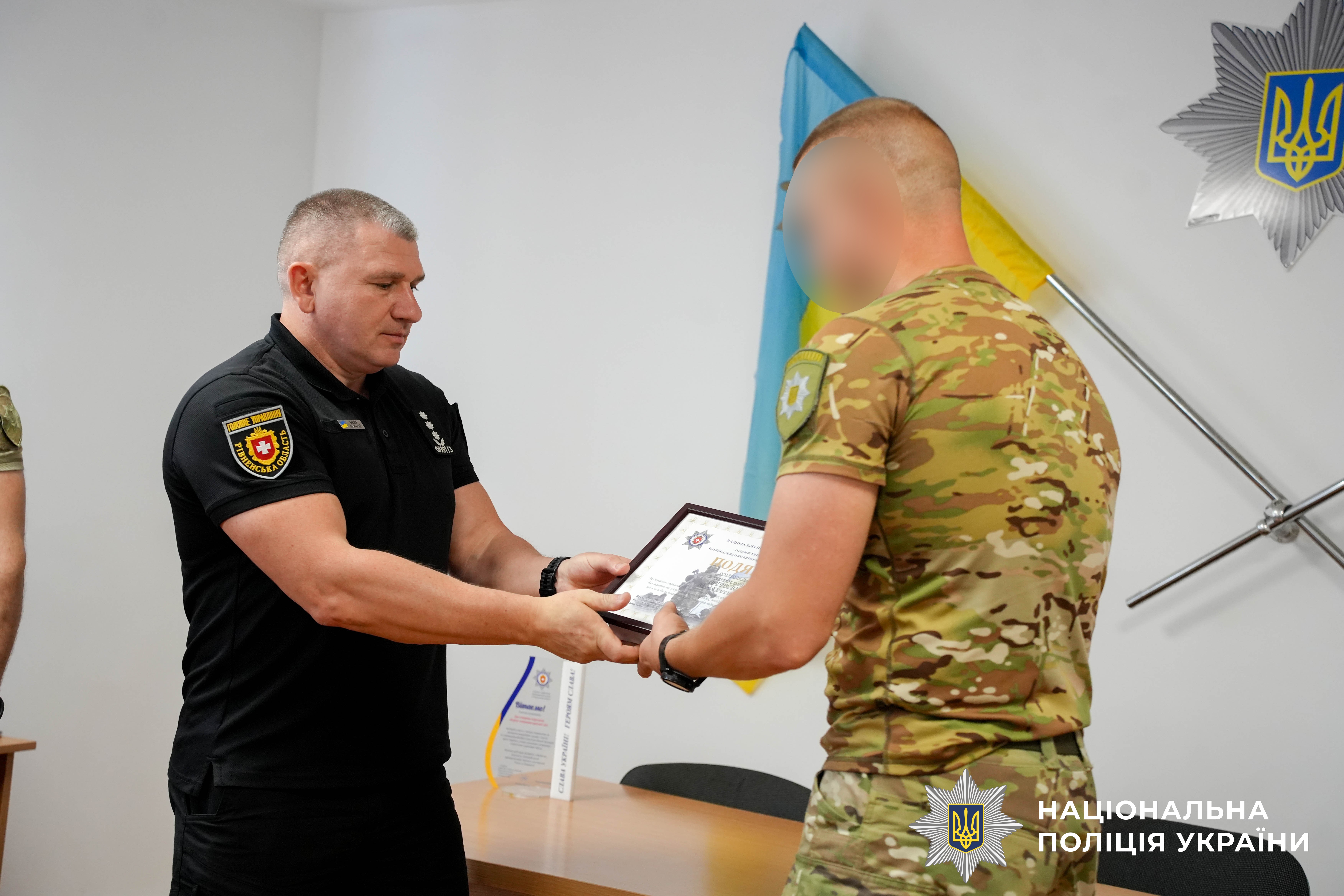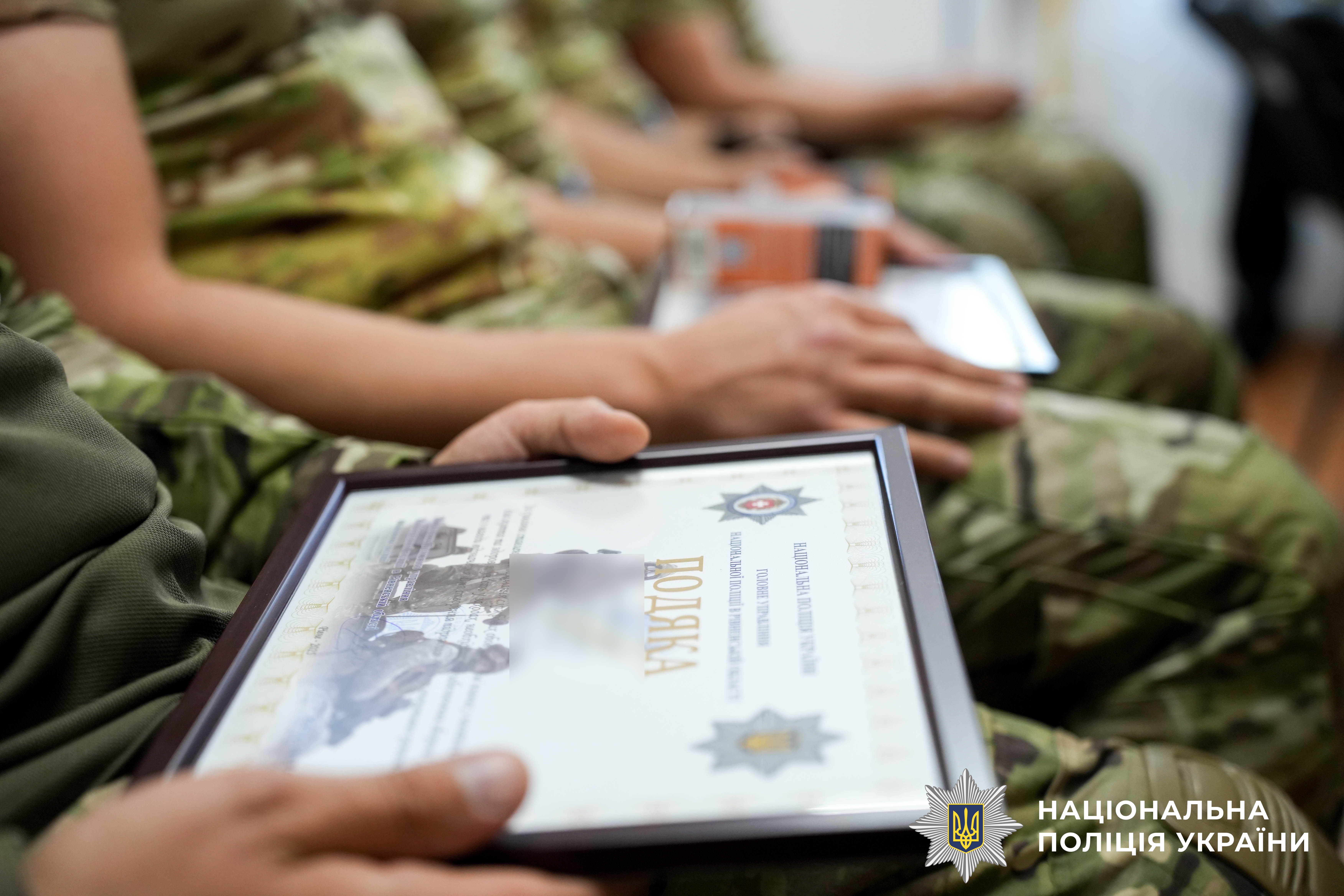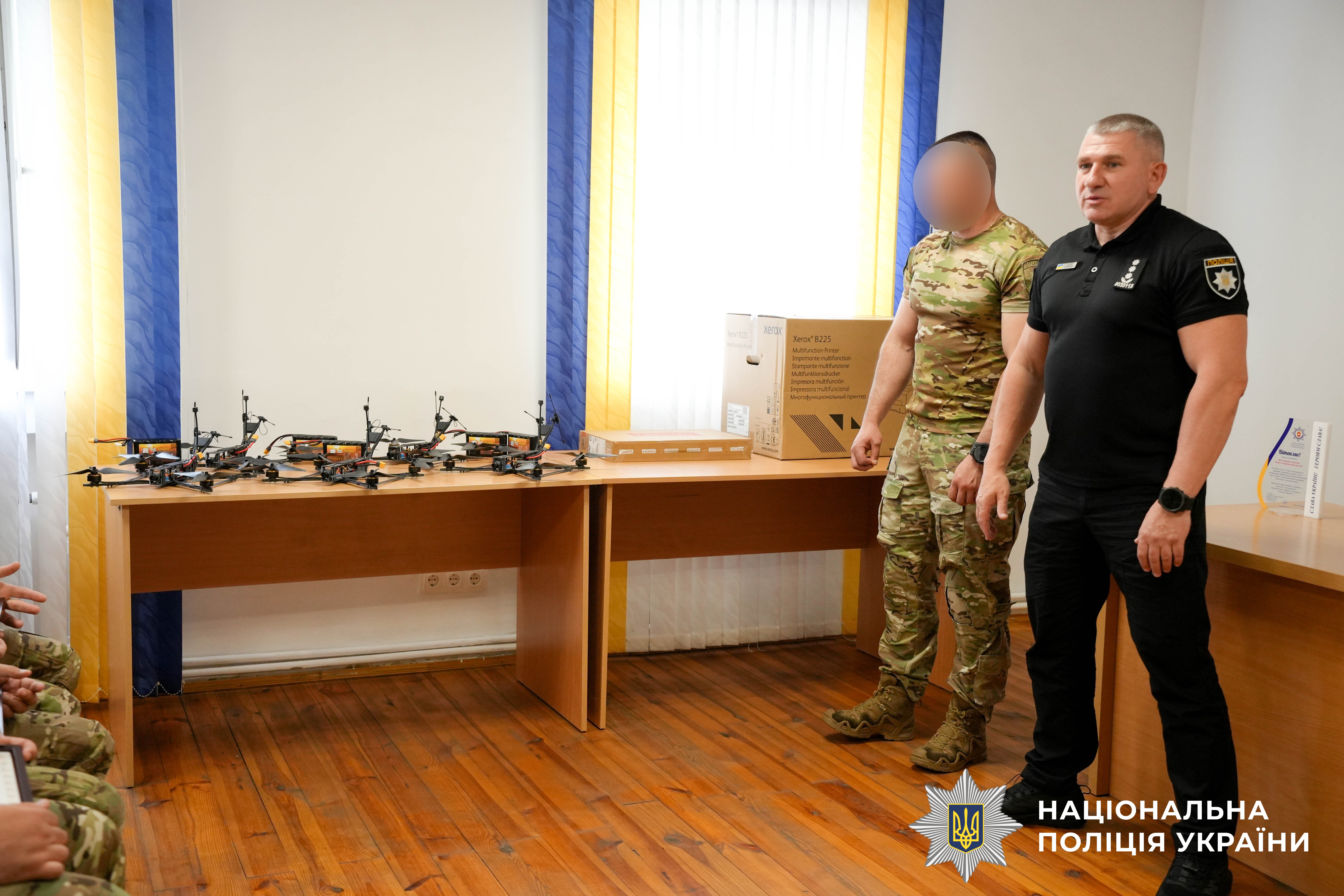 За сумлінне виконання службових обов’язків, пов’язаних з постійним ризиком для життя та здоров’я, участь у заходах, необхідних для забезпечення оборони України очільник поліції області вручив спецпризначенцям подяки та цінні подарунки, зокрема й FPV-дрони.