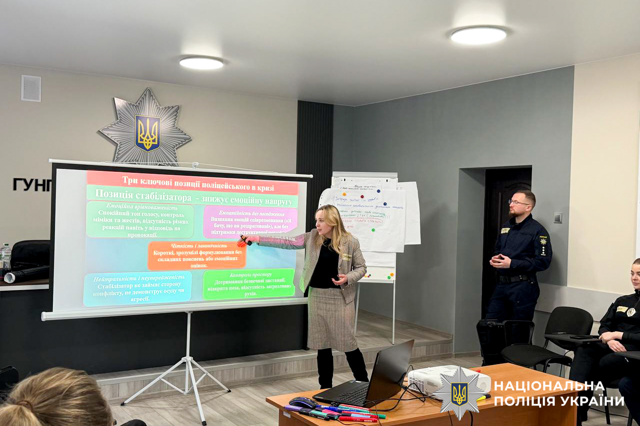 Поліцейські обговорили реальні ситуації, алгоритми дій у кризових випадках, особливості надання допомоги людям у стресових станах, як зберігати довіру громадян та забезпечувати безпеку навіть у найскладніших обставинах. Крім того, учасники опанували навички активного слухання, деескалації конфліктів, вербальної та невербальної підтримки.