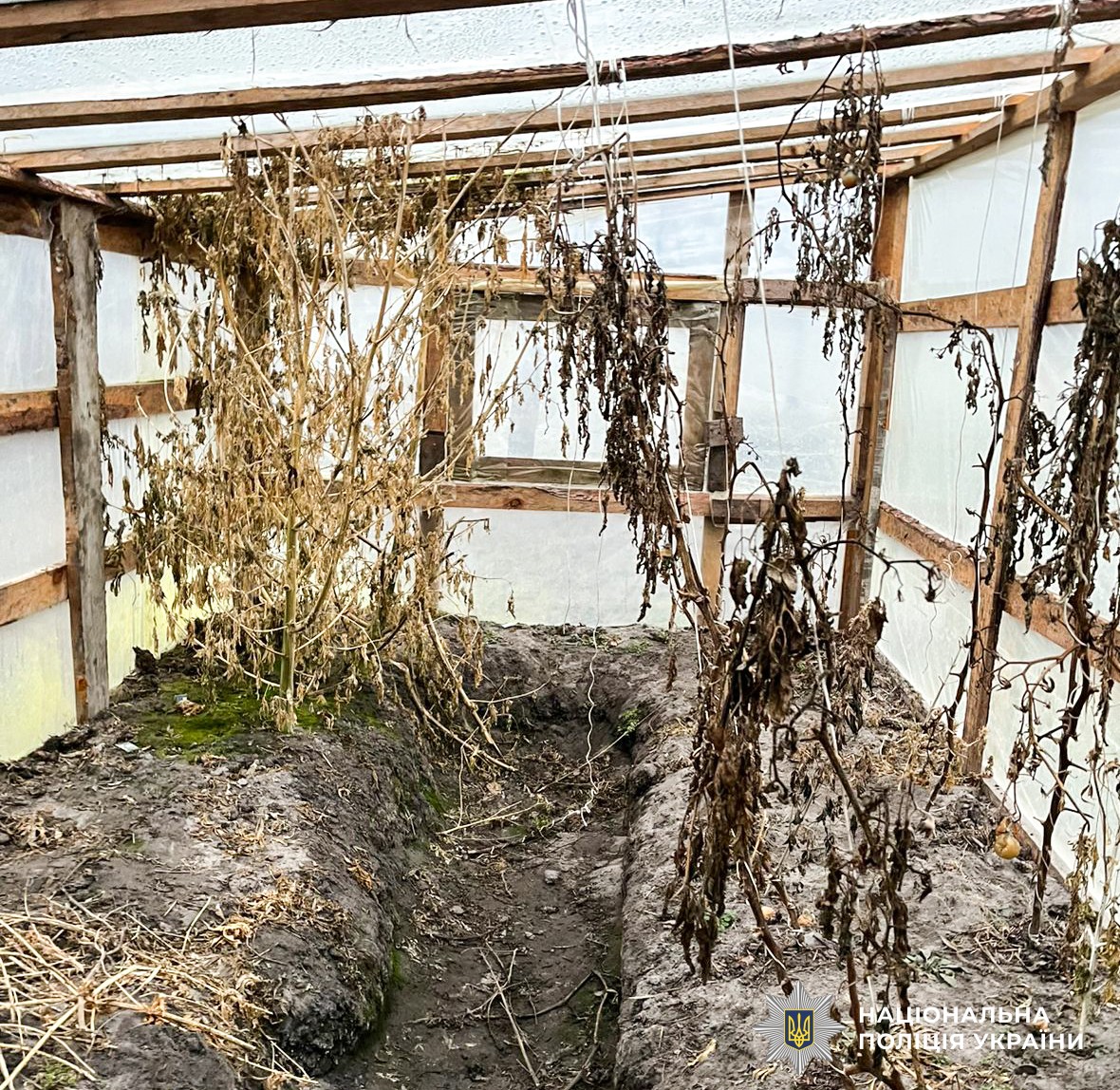 Крім того, під час проведення слідчих дій поліцейські виявили теплицю зі стеблами рослин конопель та понад 11 кілограмів наркотичних засобів: зіп-пакети із метамфетаміном, марихуаною та маковою соломкою.