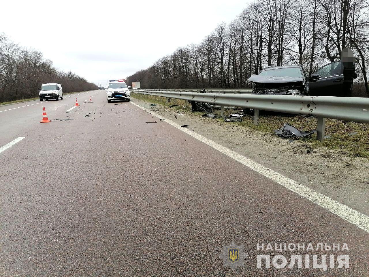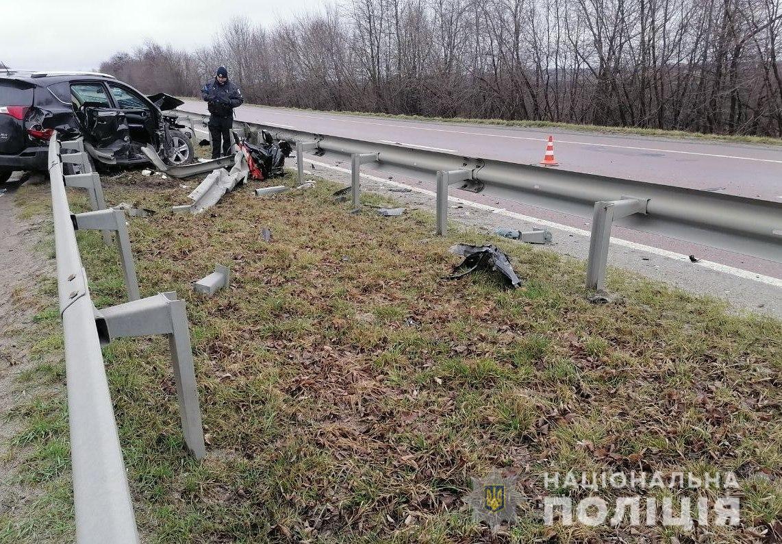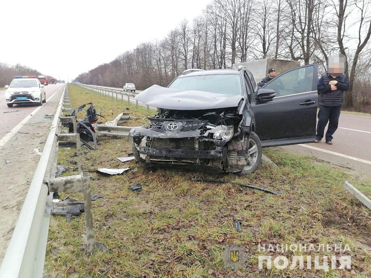 Поліцейські на місці події встановили, що 57-річний киянин, водій автомобіля «Toyota RAV-4», не вибрав безпечної швидкості руху, не впорався з керуванням, виїхав за межі проїзної частини та протаранив відбійник. Зі слів кермувальника, автівку почало заносити, коли він «вскочив» у вибоїну на дорозі.