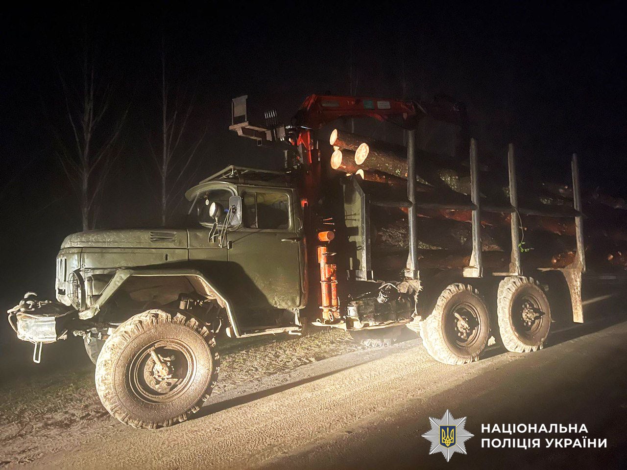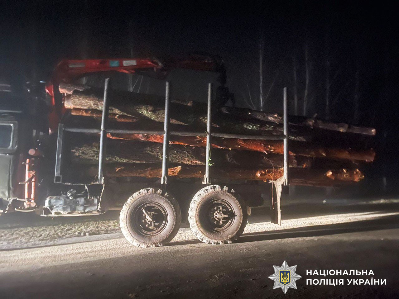 Крім того, близько 18 години цього ж дня поліцейські зупинили автомобіль «ЗІЛ», що був завантажений колодами породи сосна. Керманич, 48-річний житель села Поліське Березнівської громади, відповідних документів не мав.
