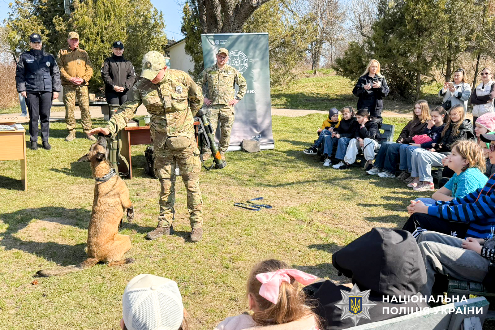 Так, учасники заходу мали змогу ознайомитися з особливостями роботи кінологів та побачити уміння виконувати команди службовою собакою. Вибухотехніки розповіли про правила мінної безпеки та алгоритми дій у разі виявлення підозрілих предметів.