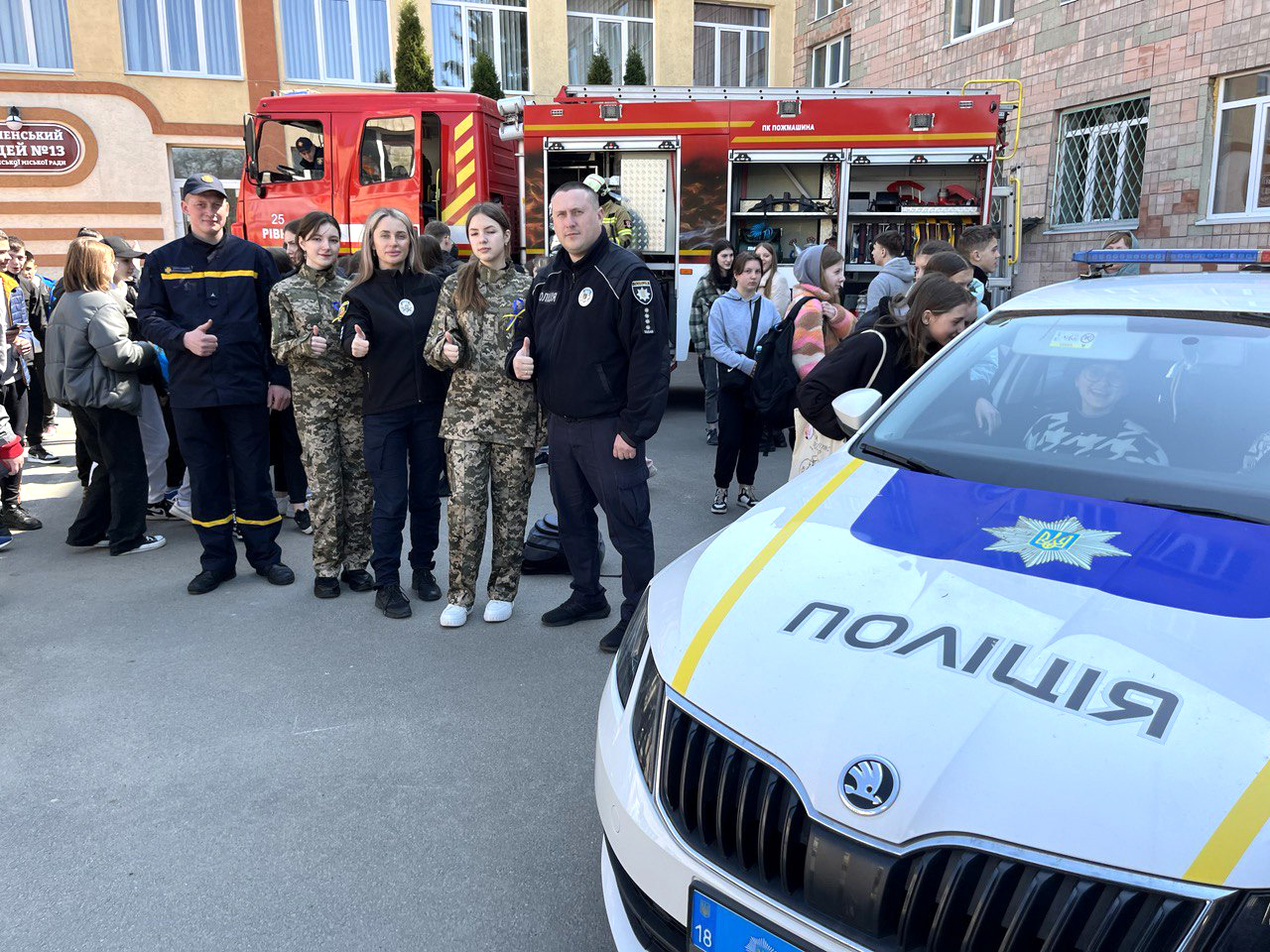 Також поліцейські та рятувальники розповіли учням про особливості своєї роботи.