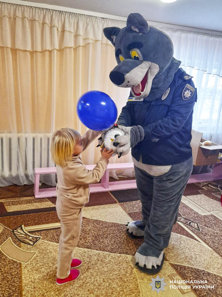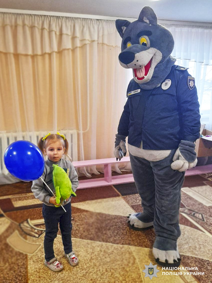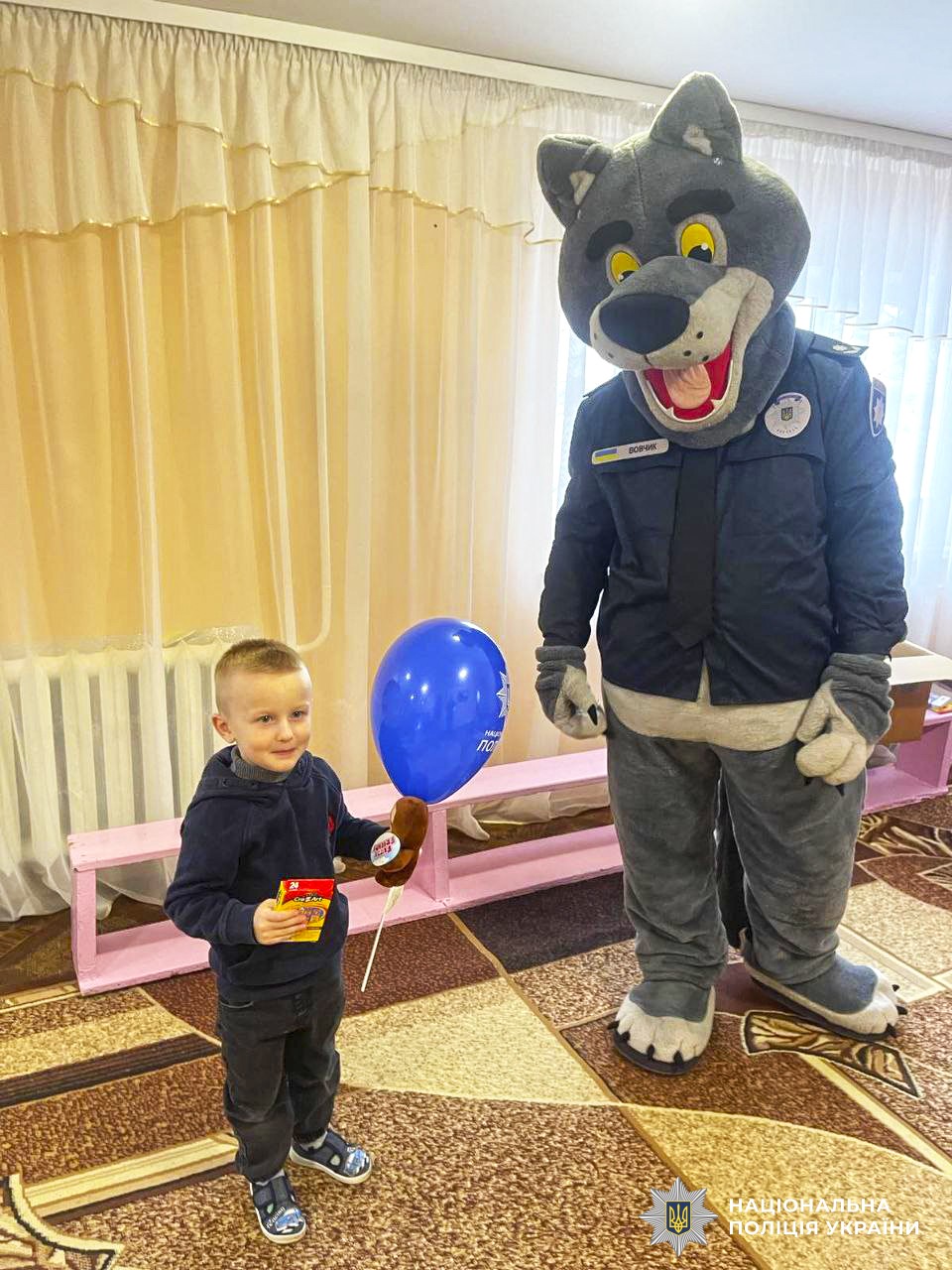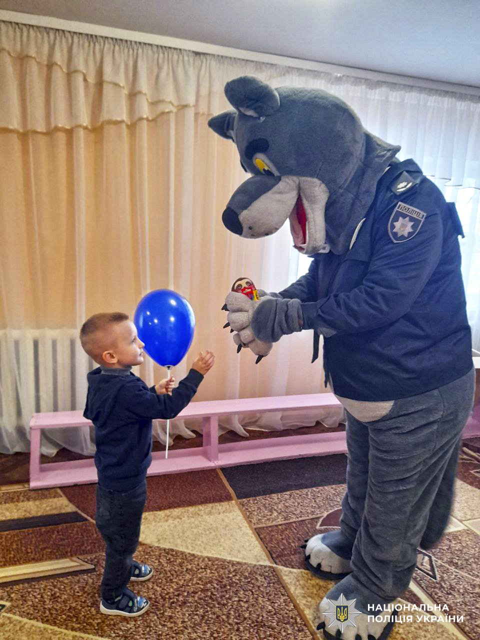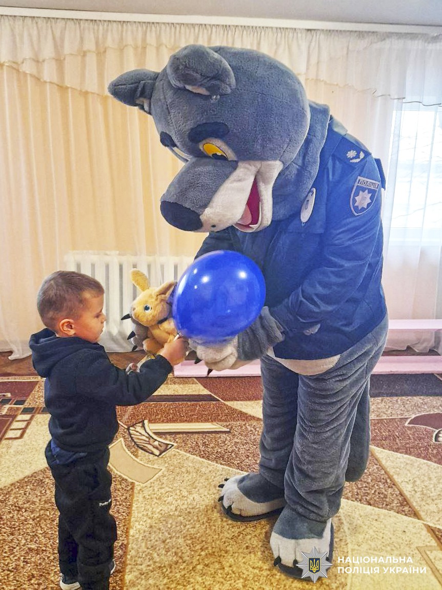 Утім, найкращим сюрпризом для дітлахів був величезний поліцейський Вовчик, який провів гру з дітлахами.