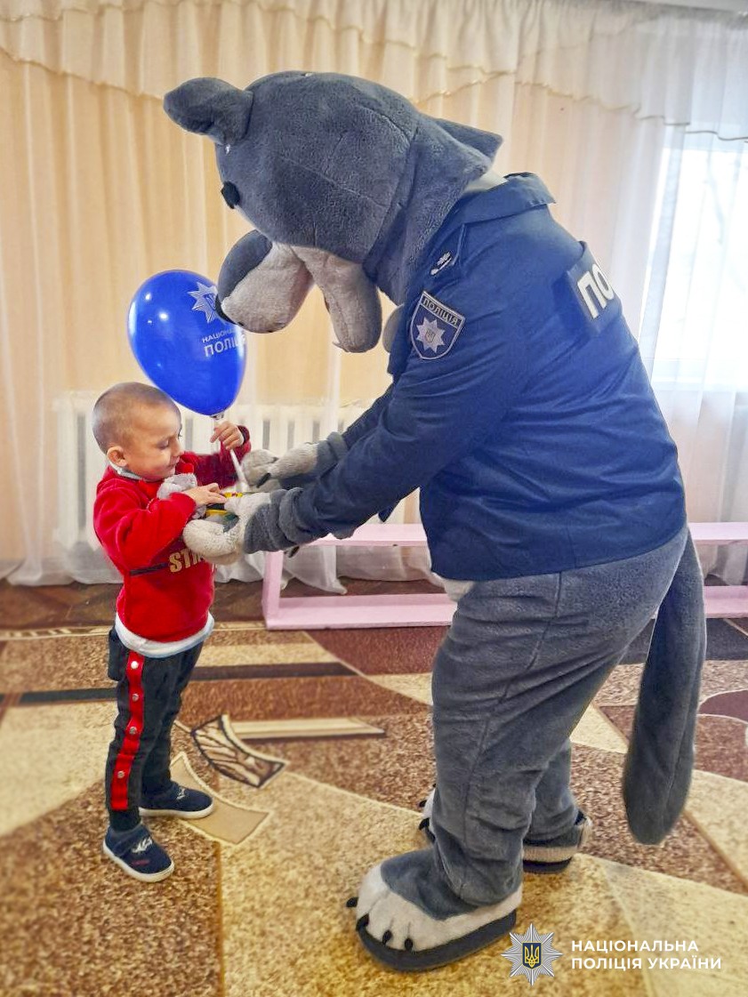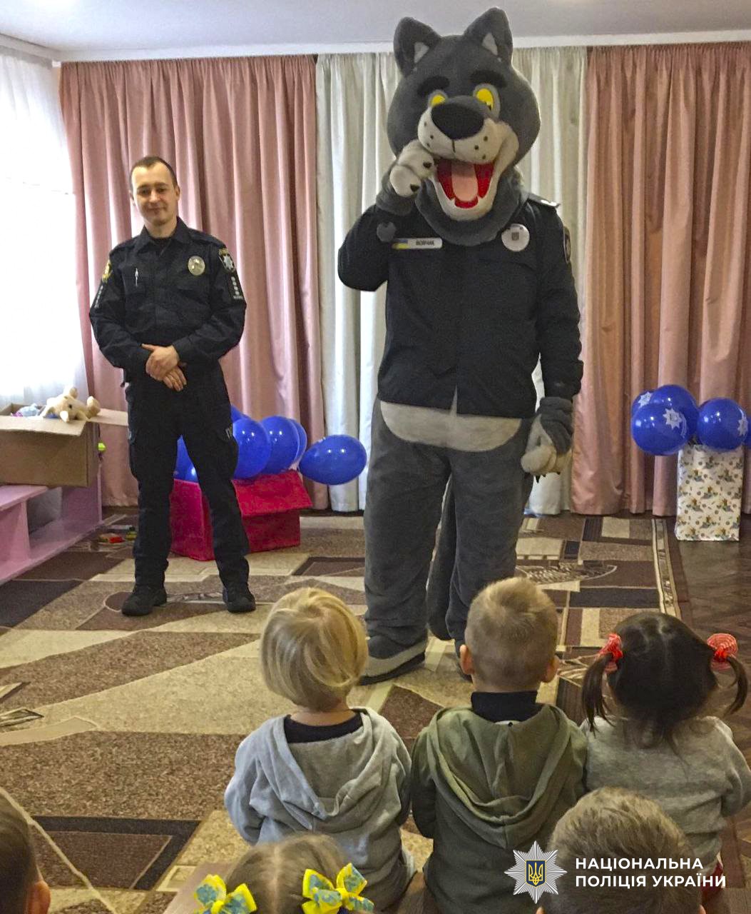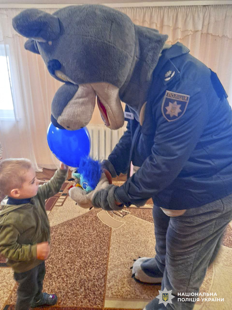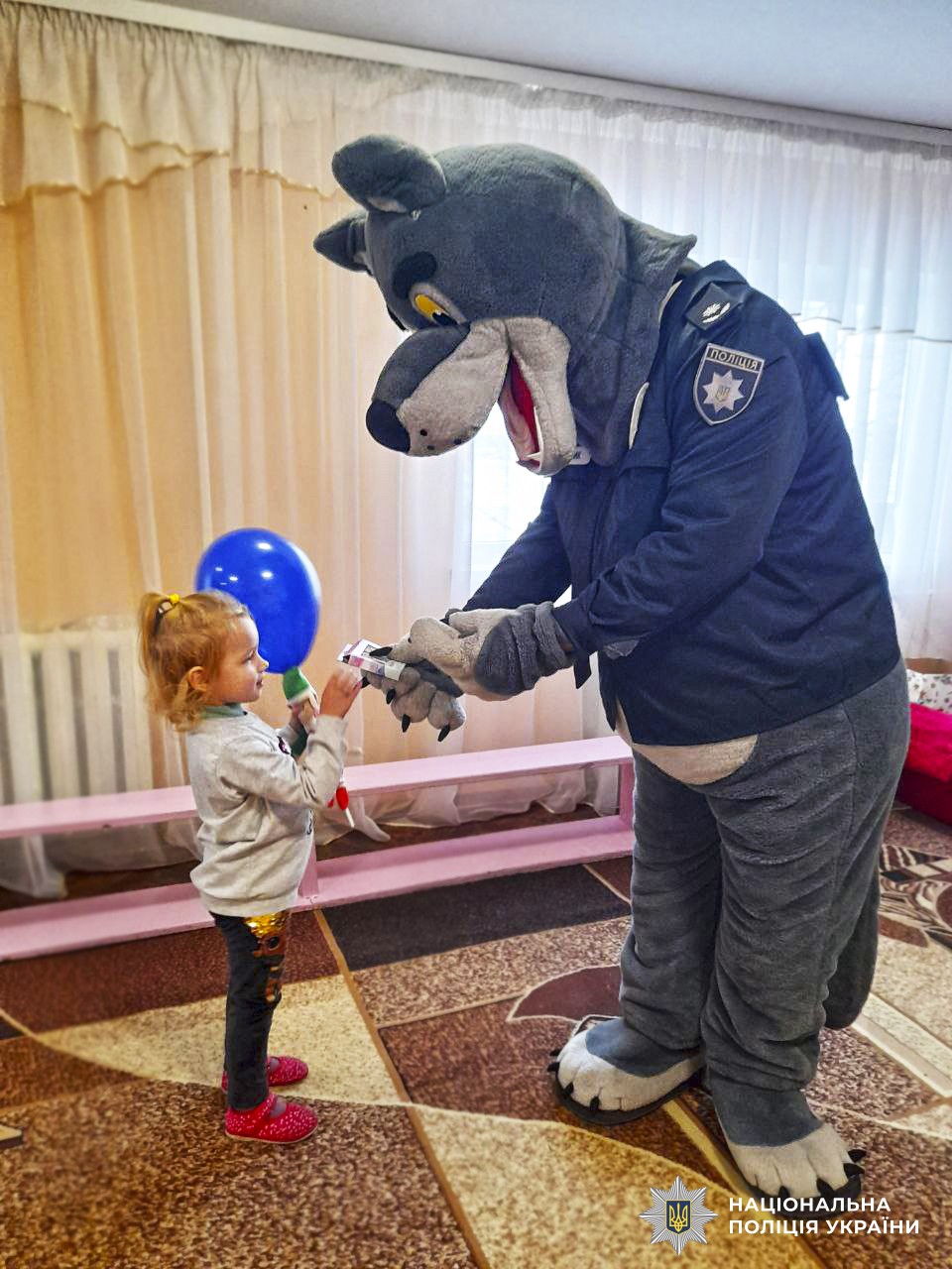 Утім, найкращим сюрпризом для дітлахів був величезний поліцейський Вовчик, який провів гру з дітлахами.