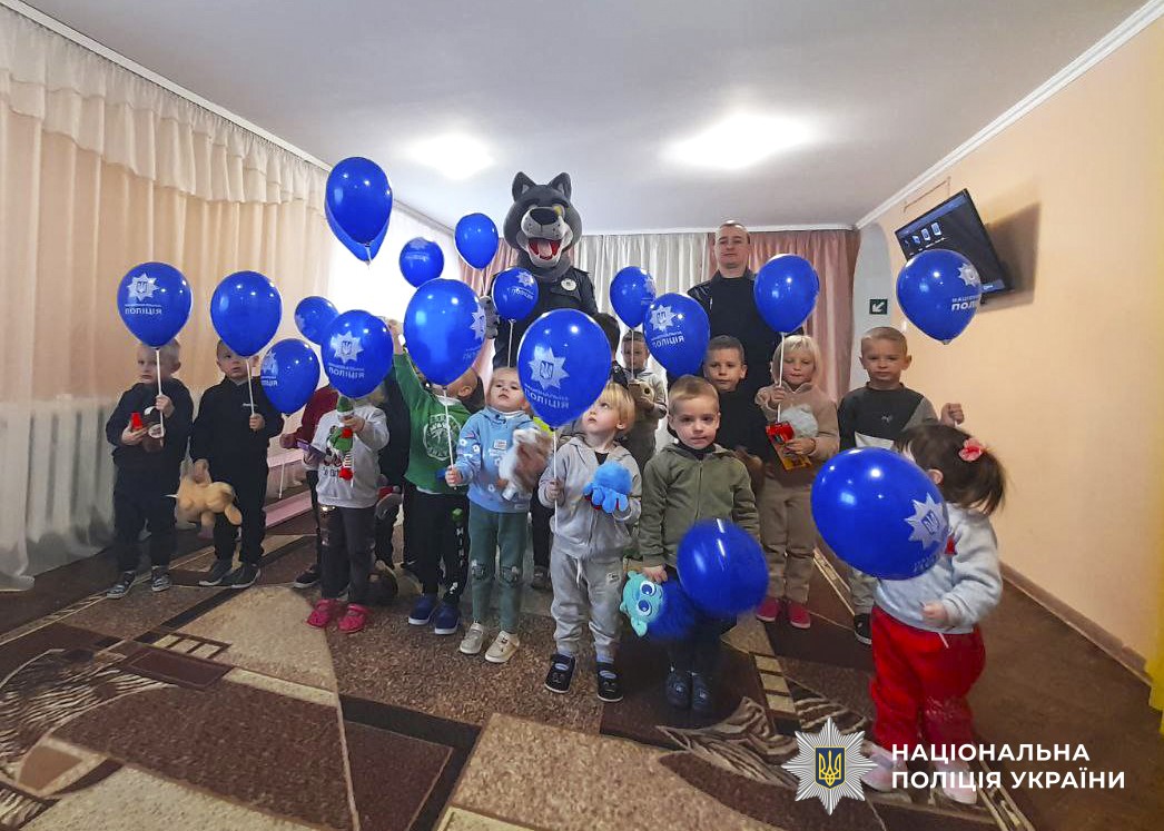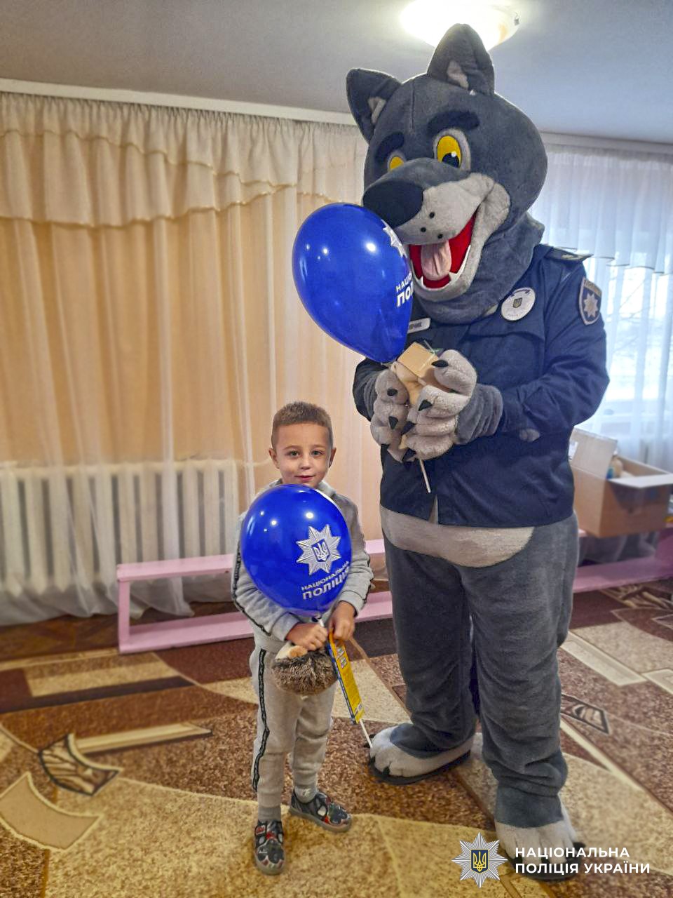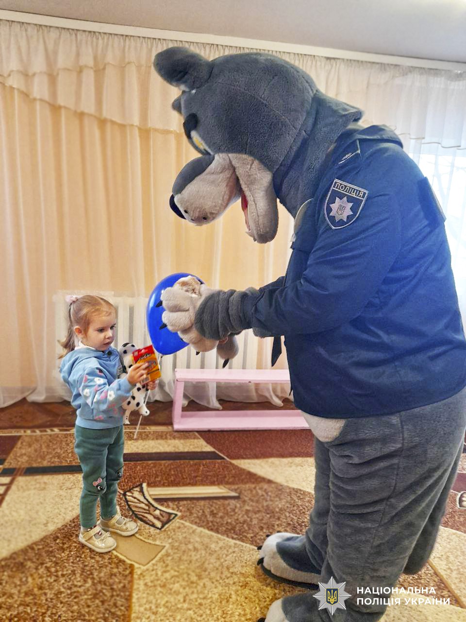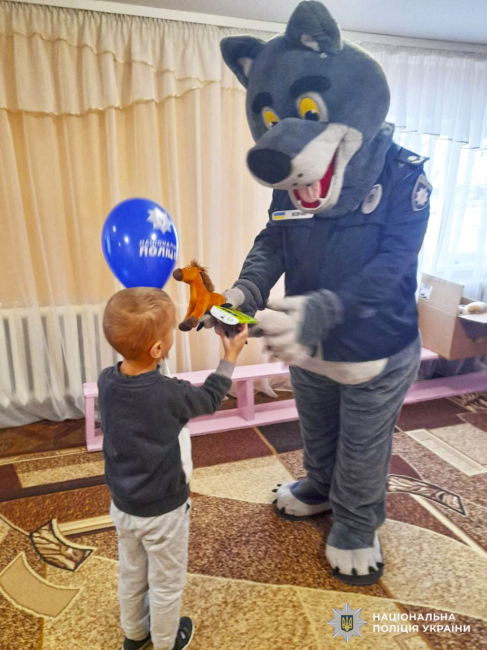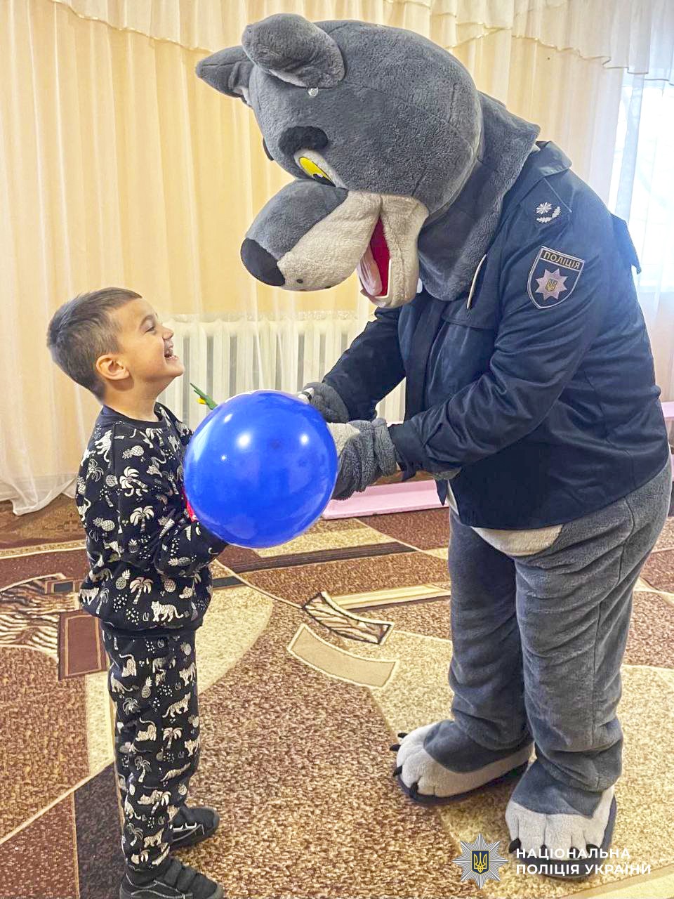 Утім, найкращим сюрпризом для дітлахів був величезний поліцейський Вовчик, який провів гру з дітлахами.