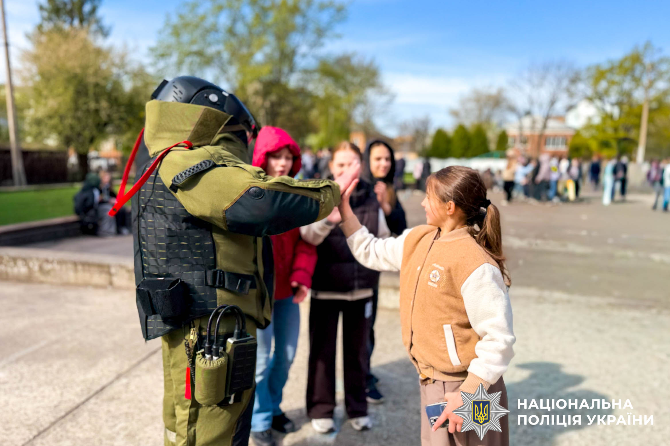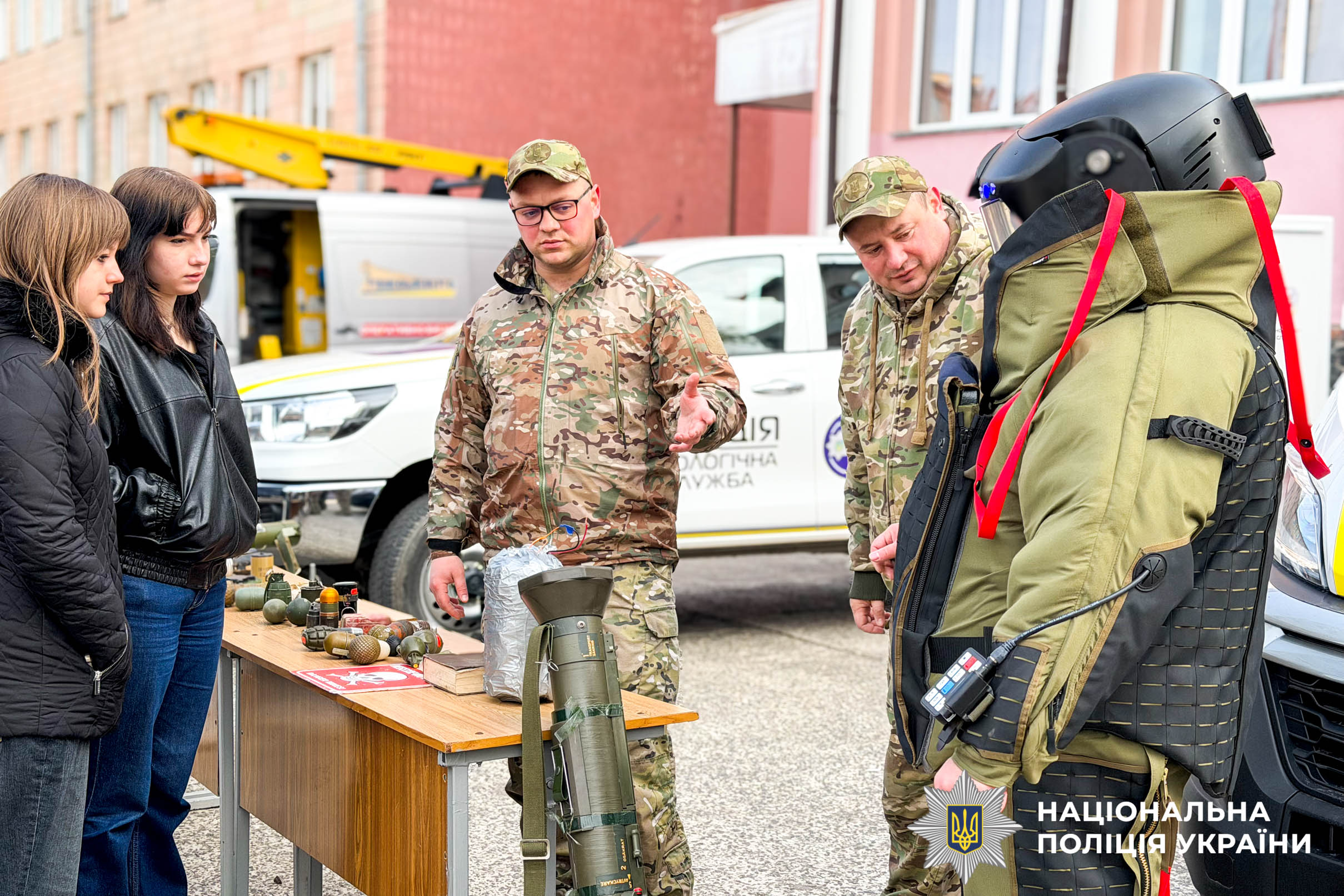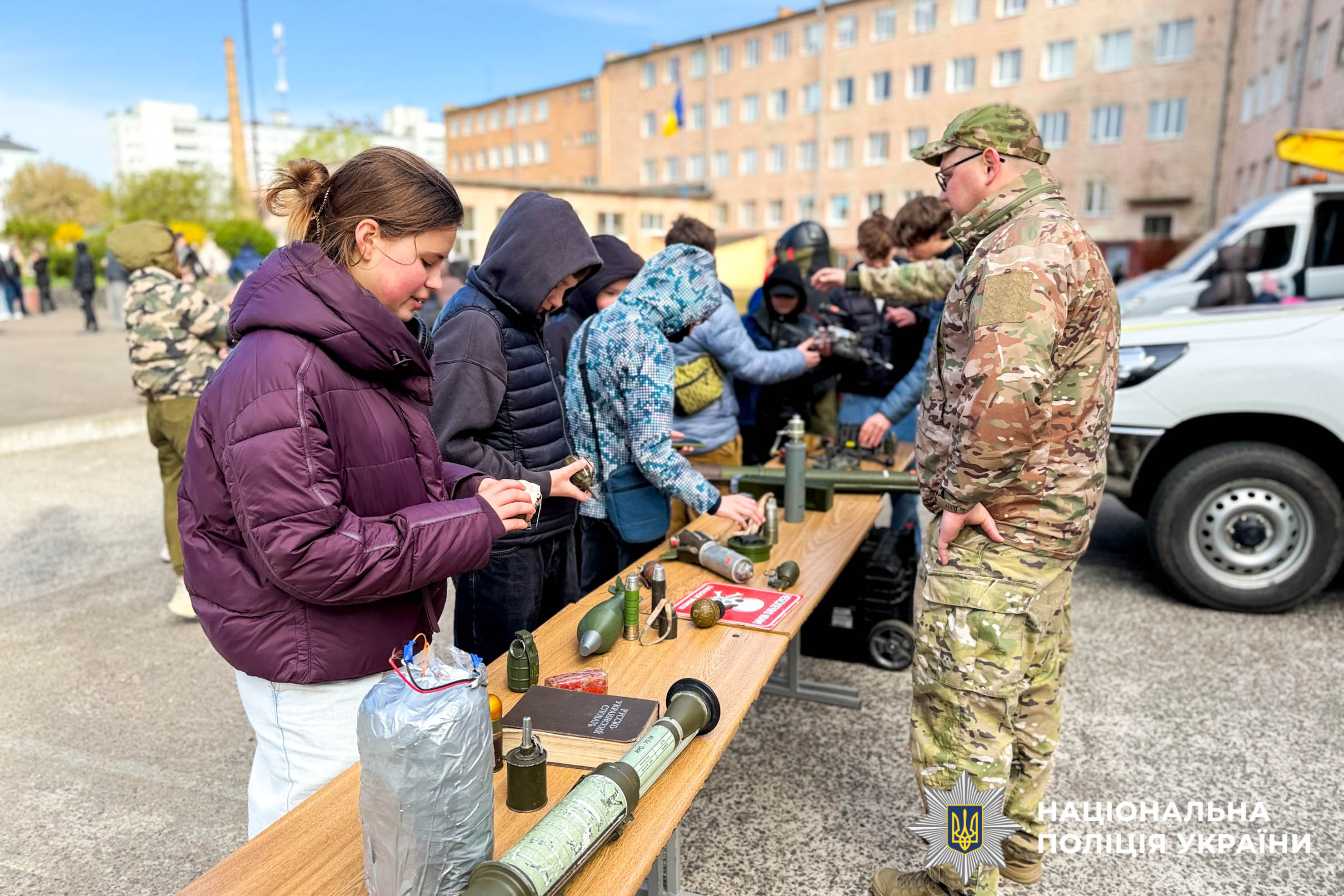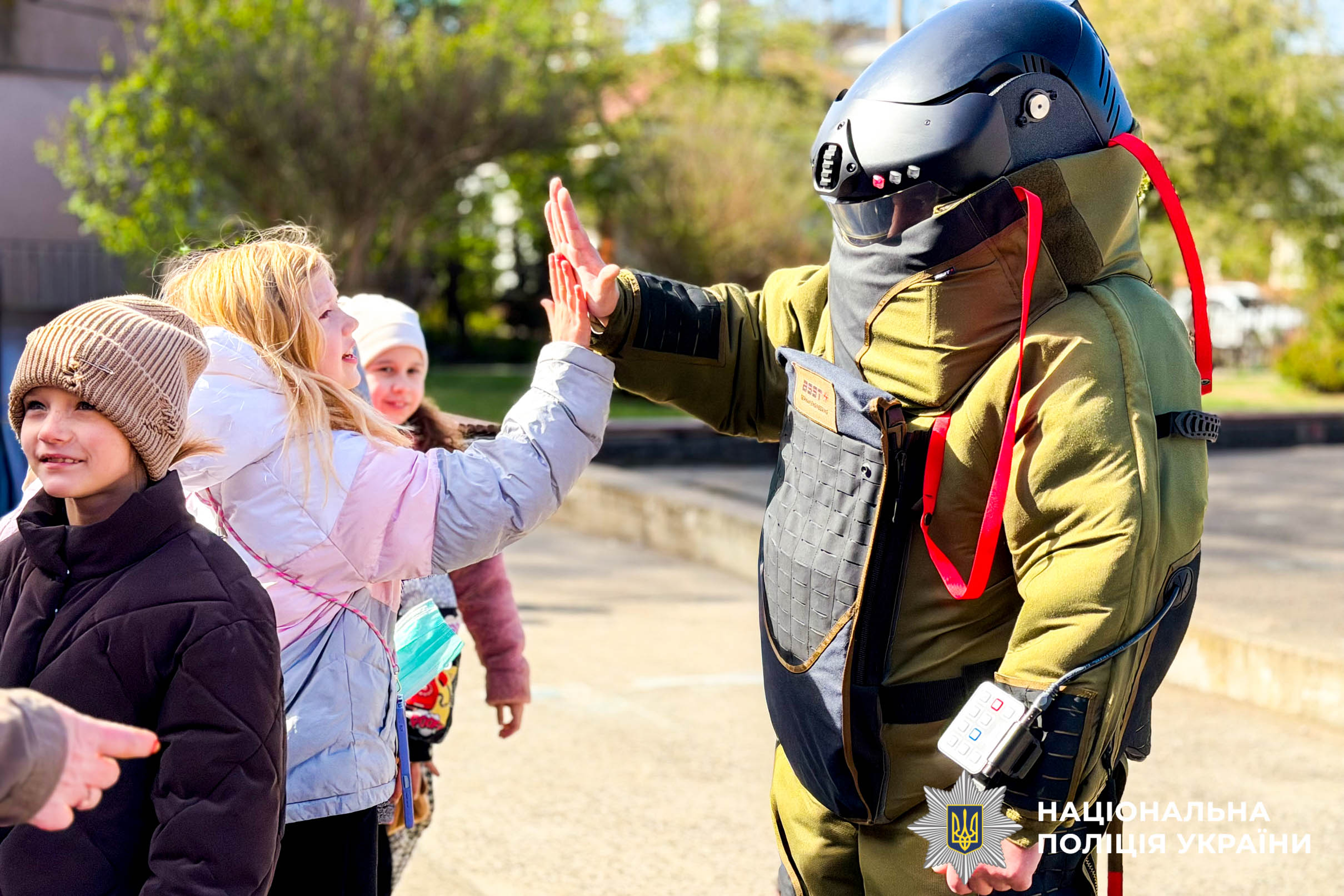 Під час зустрічі вибухотехніки продемонстрували дітям макети небезпечних предметів та розповіли про алгоритм дій у разі виявлення підозрілої знахідки. Вони наголосили завжди пам’ятати правило трьох «НЕ»: не підходити, не чіпати, не панікувати та одразу телефонувати на 112