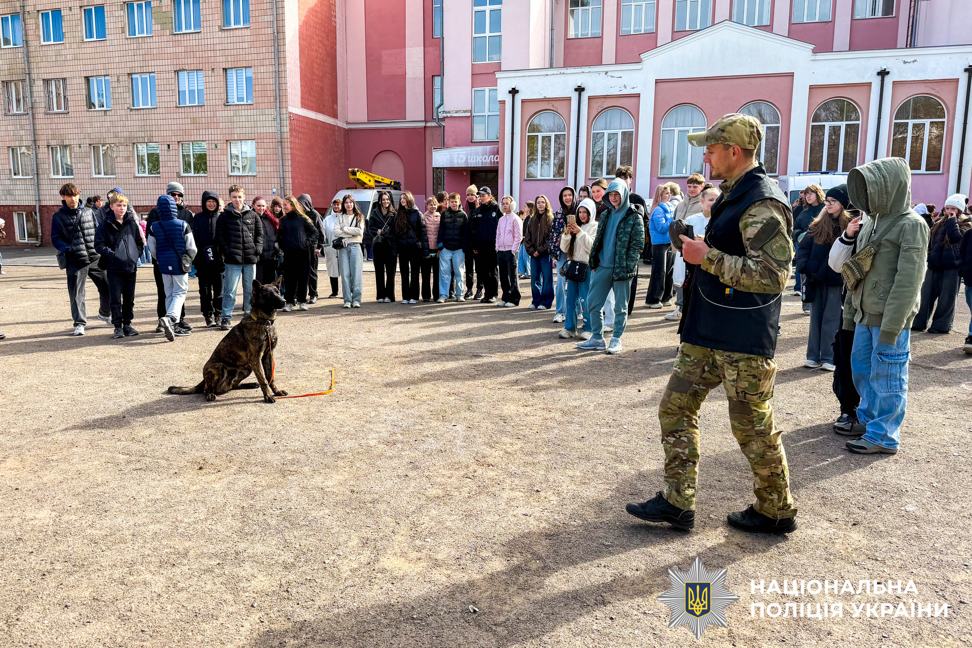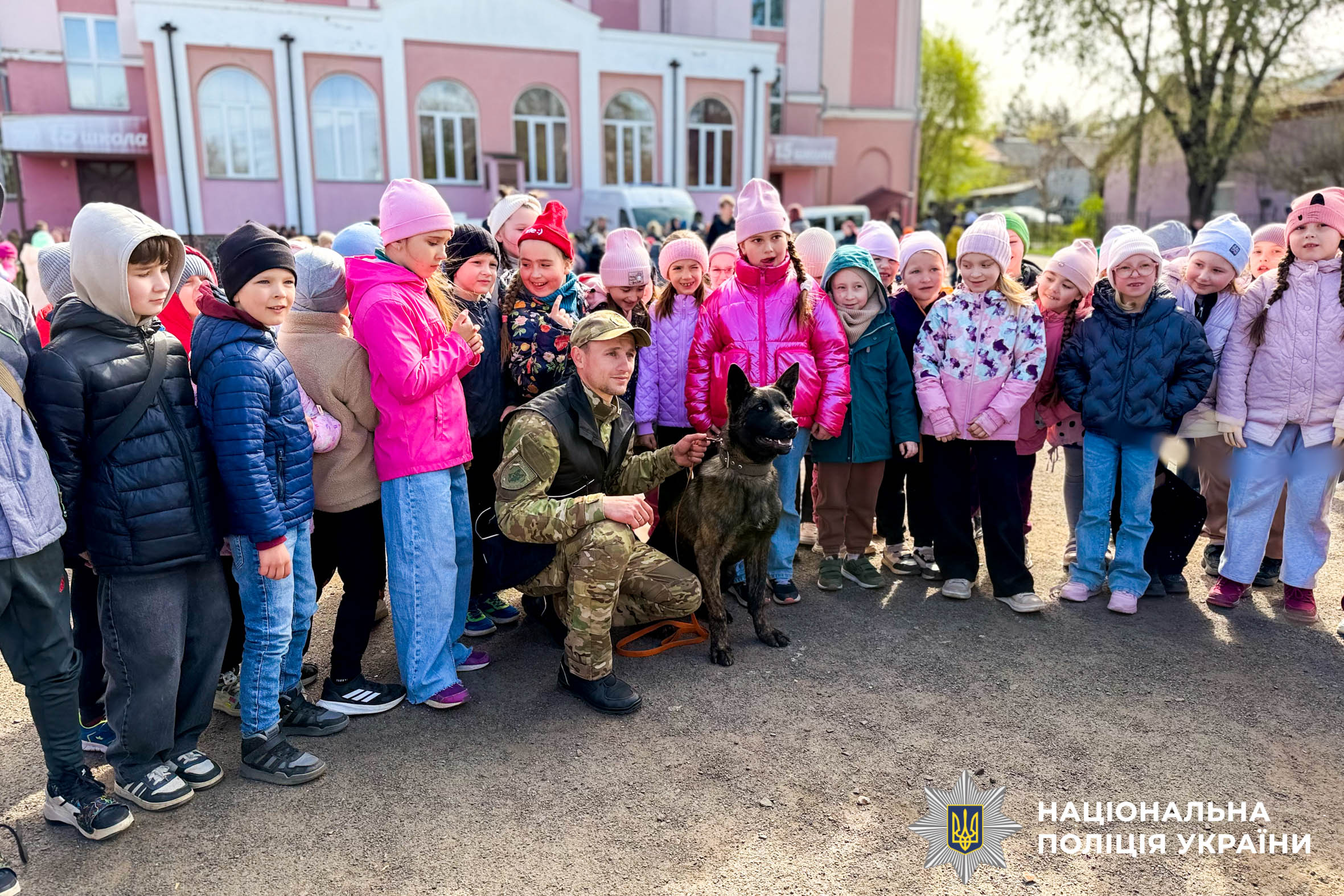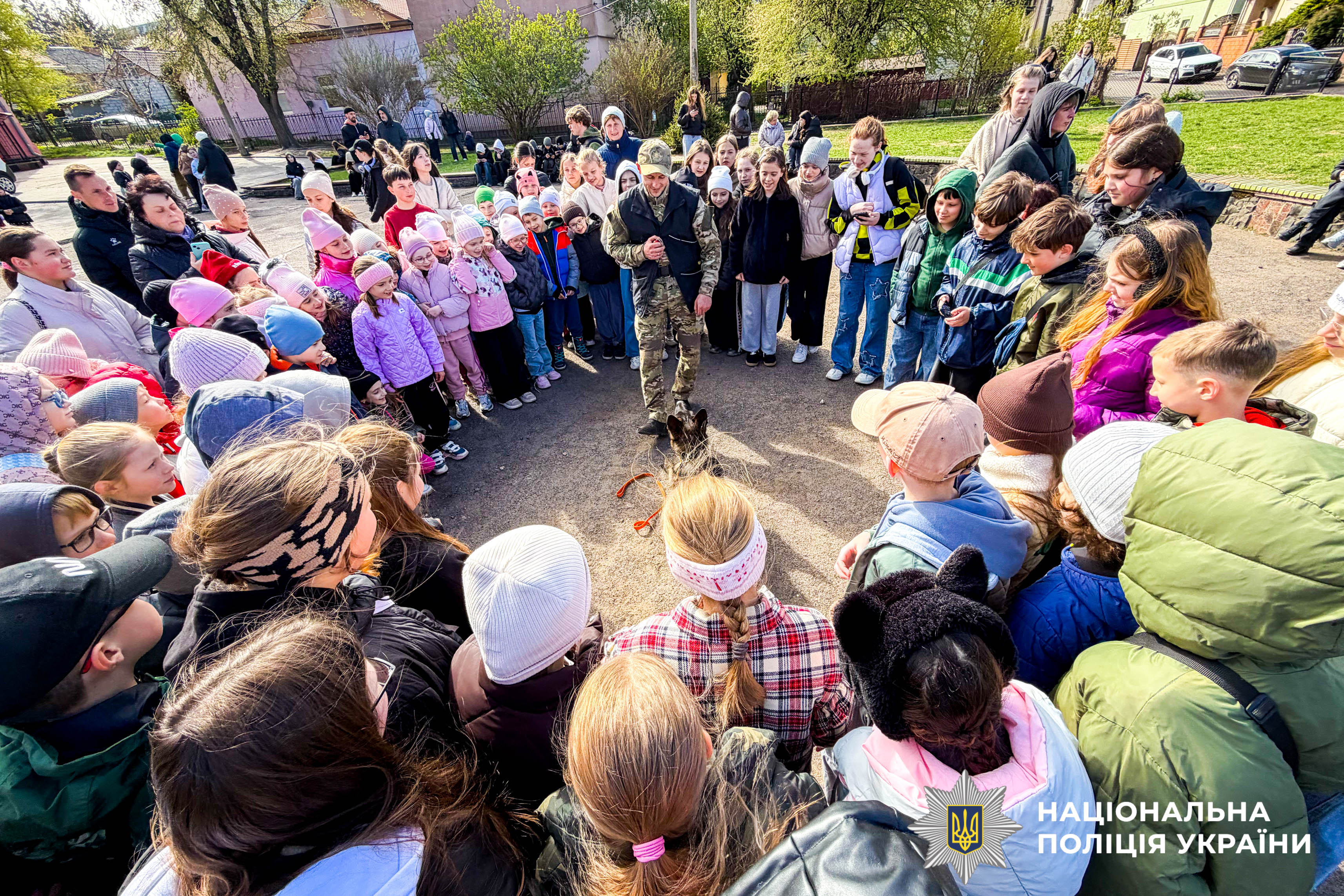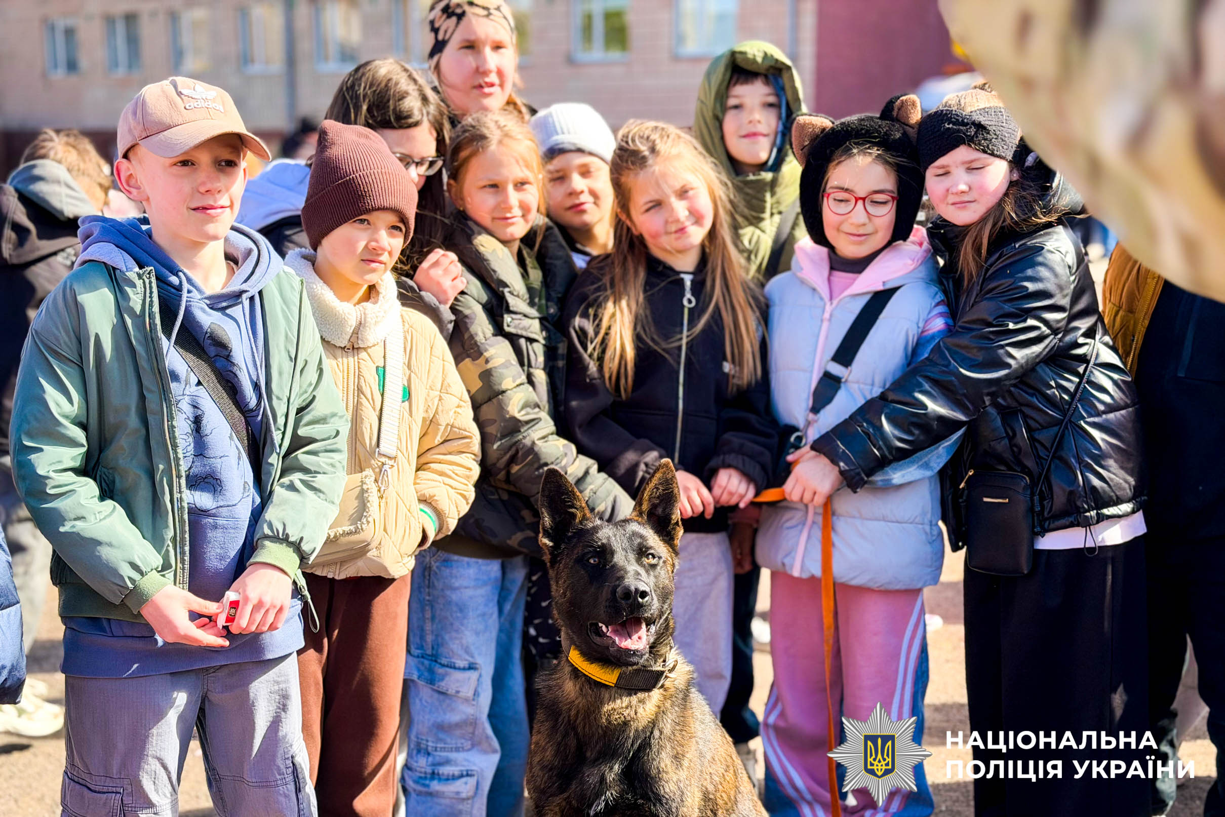 Особливе захоплення у дітей викликав виступ кінолога та його службових собак. Поліцейський розповів про важливу роль чотирилапих помічників у розкритті злочинів і пошуку вибухових речовин. Своєю чергою собаки продемонстрували справжню дисципліну та витримку, виконуючи команди, і довели, що кожен їхній крок — результат тривалих тренувань.