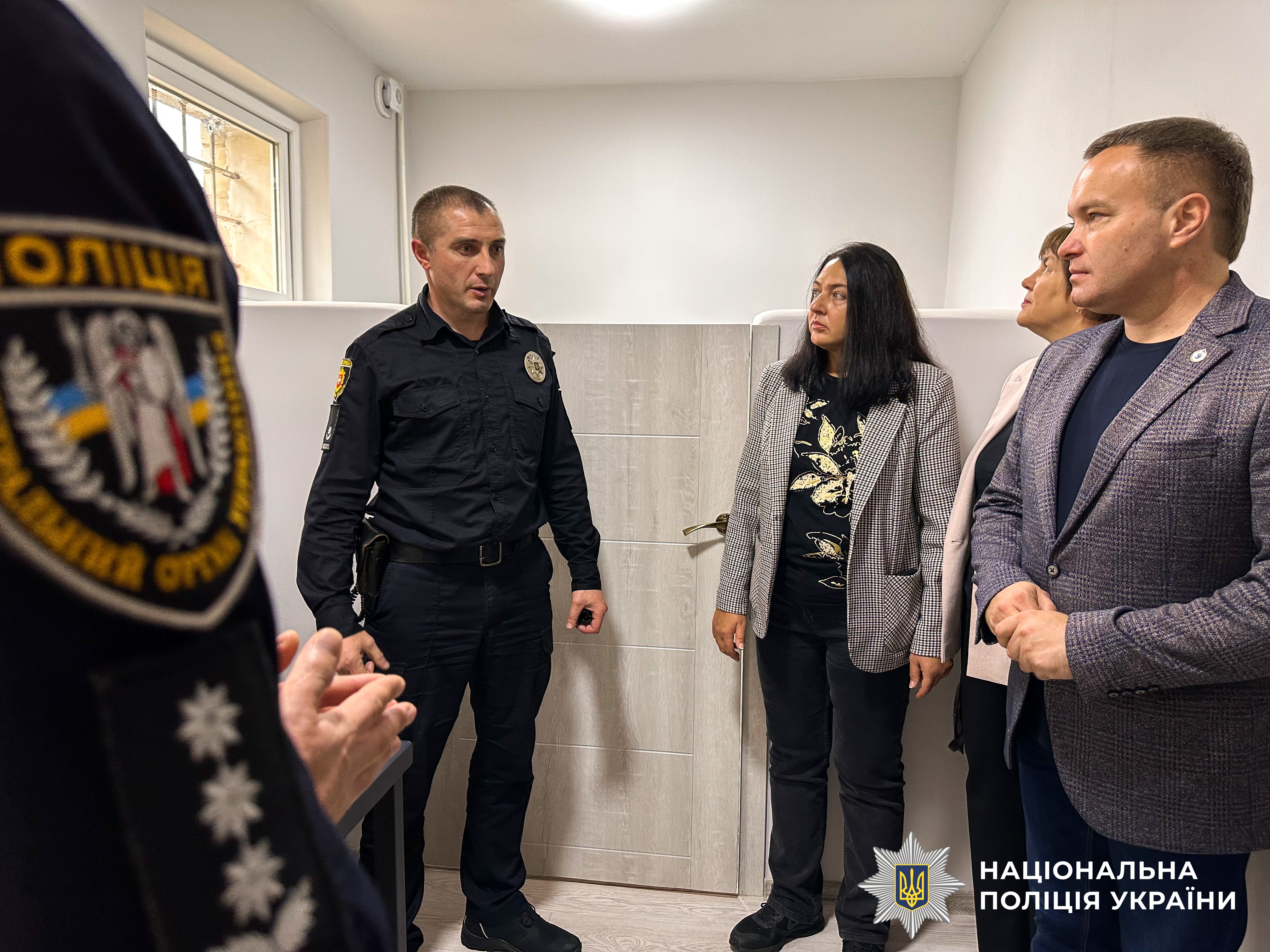 Тут передбачені кімнати спілкування з захисником, для проведення слідчих дій, роботи інспектора з дотримання прав людини, а також облаштовано кімнату для перебування затриманих осіб. Все, що відбувається, фіксується на камери спостереження, що унеможливлює як порушення прав громадян, так і убезпечує правоохоронців.