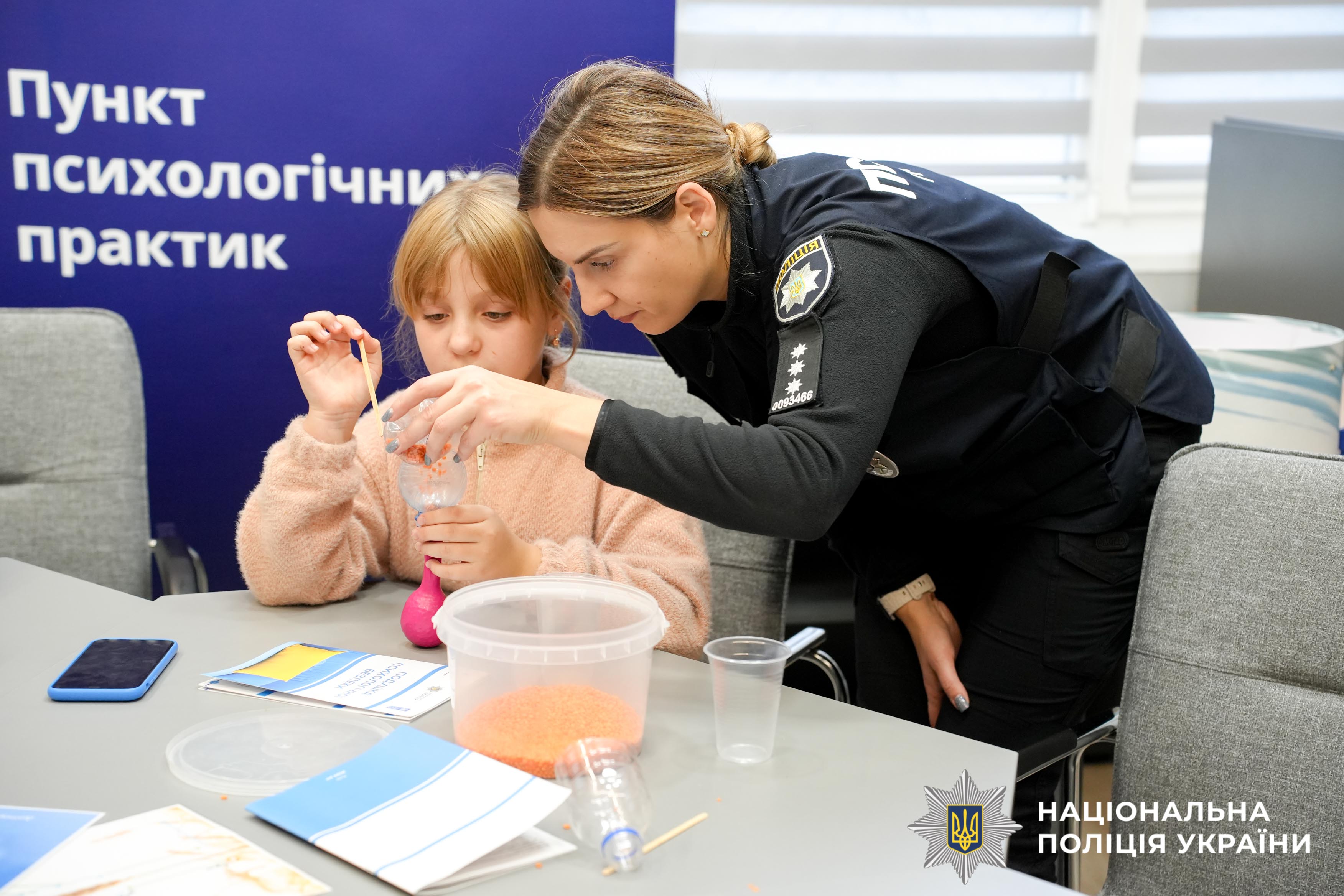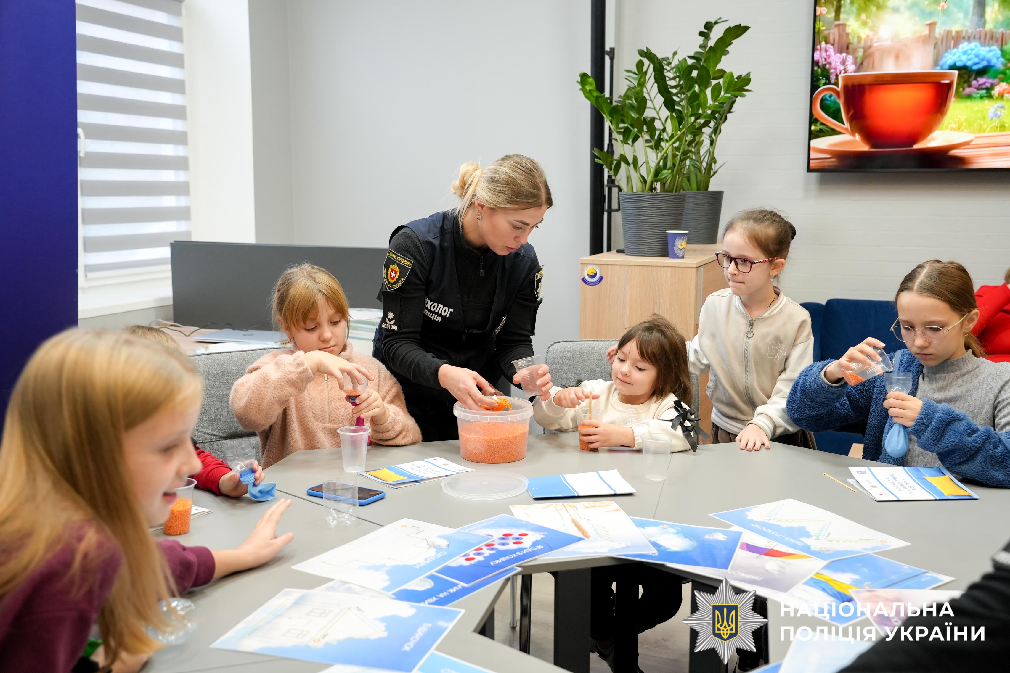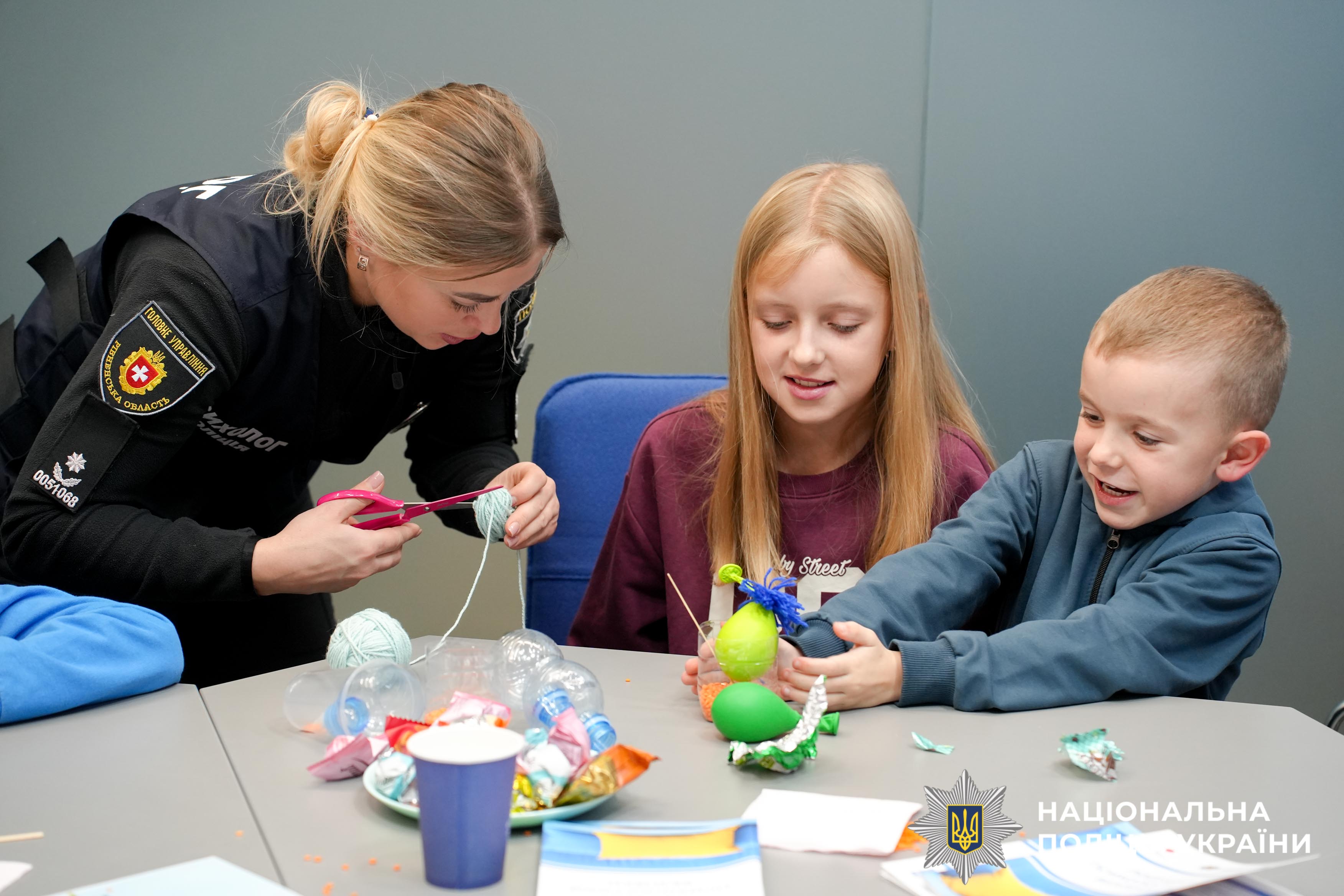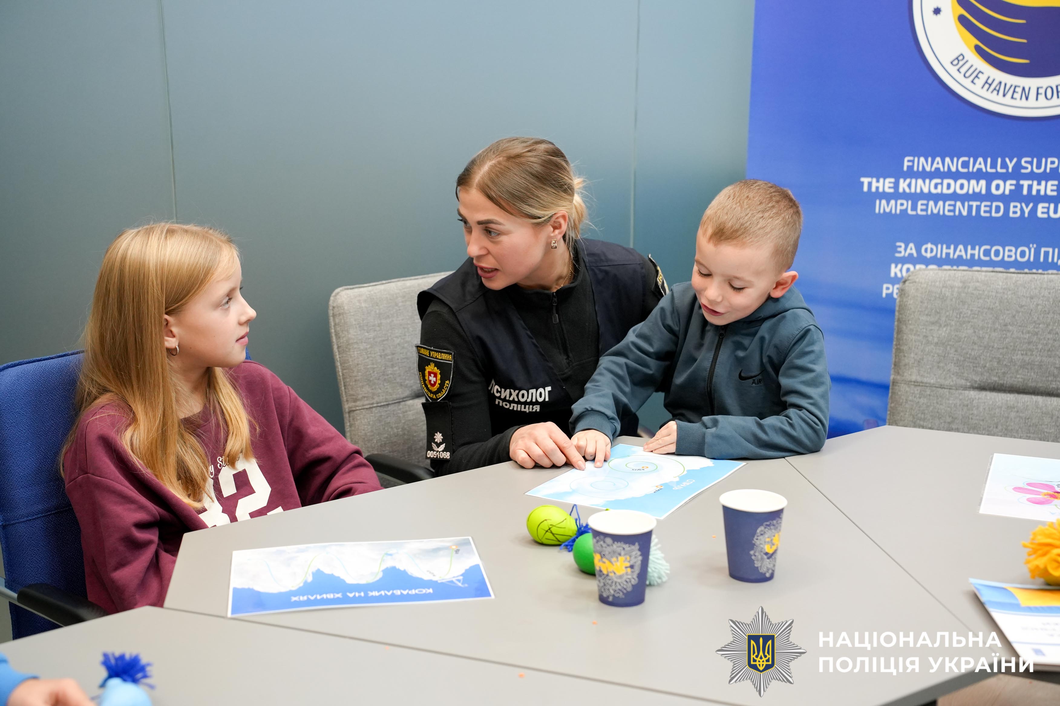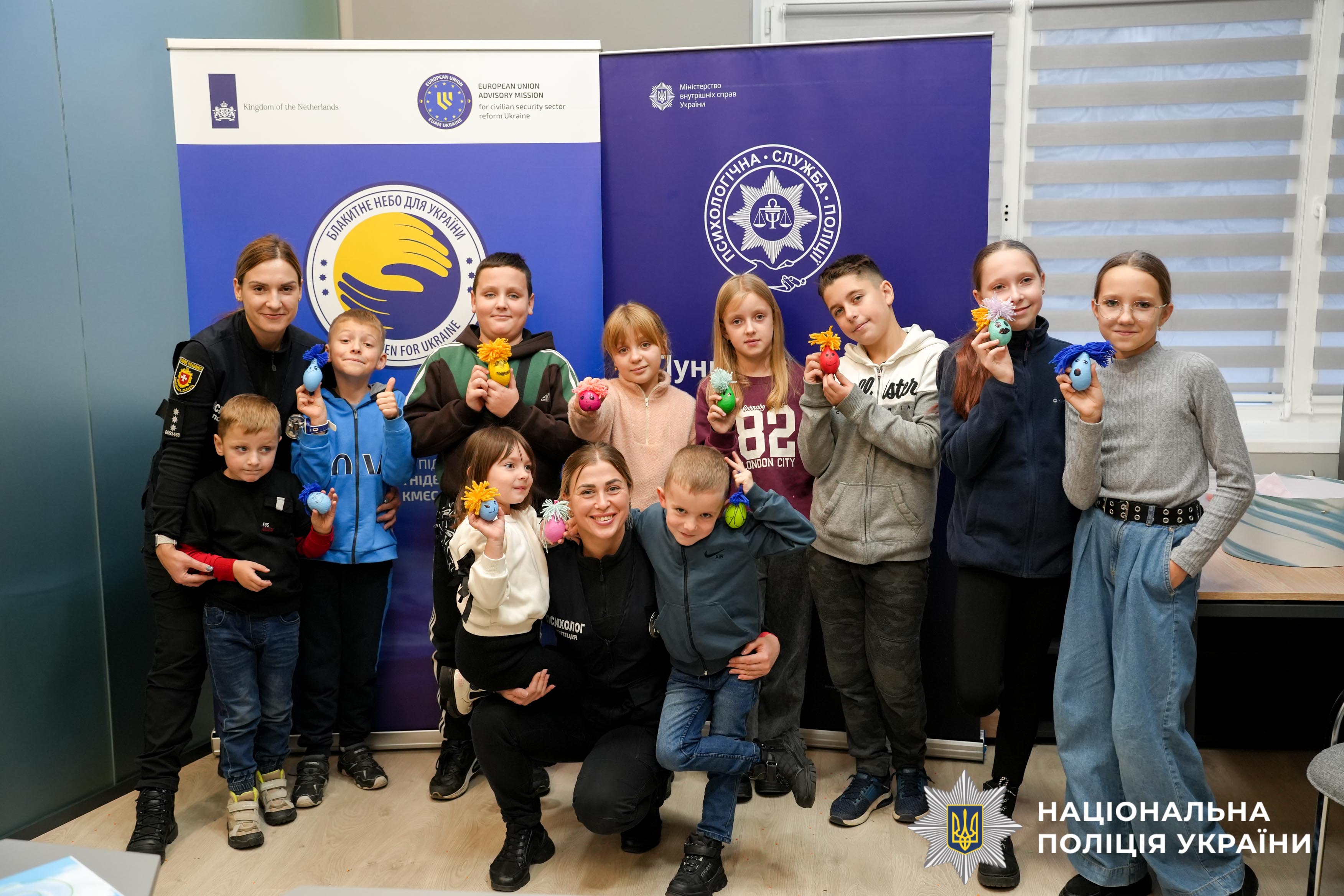 У центрі психологічної допомоги та підтримки «Блакитне небо для України», створений за підтримки уряду та поліції Нідерландів і Консультативної місії Євросоюзу (КМЄС) психологи поліції Рівненщини провели арттерапевтичне заняття для дітей загиблих та поранених поліцейських, які захищали Україну. У цьому теплому просторі діти вчилися простим, але дієвим технікам дихання, що допомагають впоратися зі страхом і хвилюванням. Власноруч вони створювали антистрес-іграшки — маленькі символи радості та миру, які народжувалися просто з їхніх долонь.