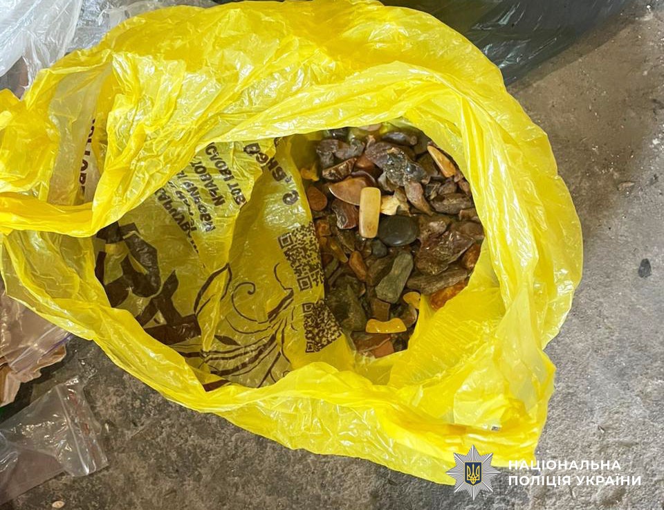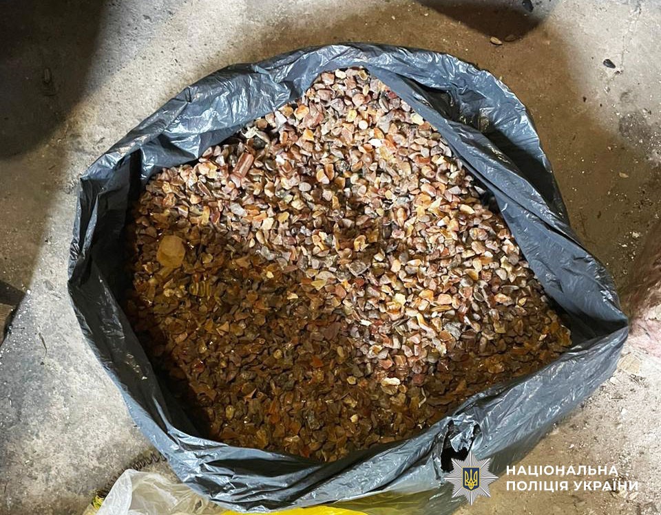Загальна вага бурштину різної фракції — орієнтовно два кілограми.