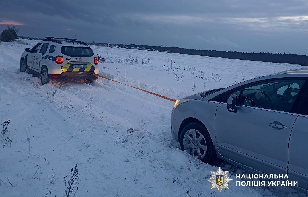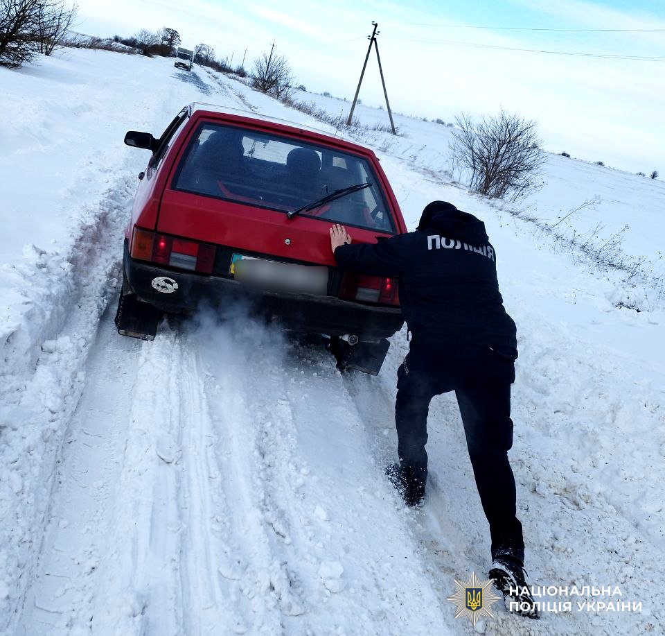 Водіям, які стали заручниками негоди, допомагали також поліцейські офіцери Вербської та Мирогощанської тергромади. А поліцейський офіцер Корецької ТГ, що у Рівненському районі, допоміг водію зарядити акумуляторну батарею в його авто.