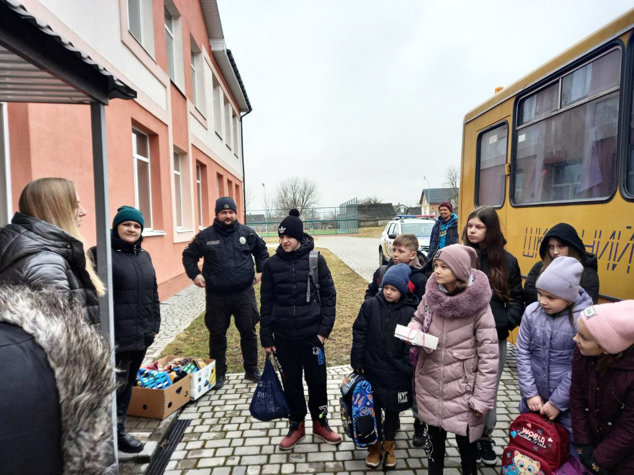 Тож поліцейські офіцери спільно із працівниками соцслужби тергромади вирішили організувати профілактичний захід «Чемні учні шкільного автобуса». Аби діти засвоїли урок, поділили їх на дві команди: яка з них упродовж тижня дотримуватиметься правил безпеки в автобусі — отримає подарунки.