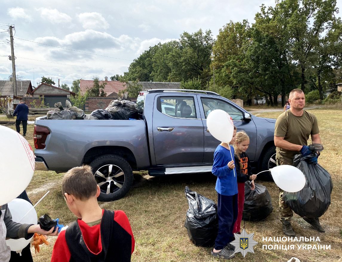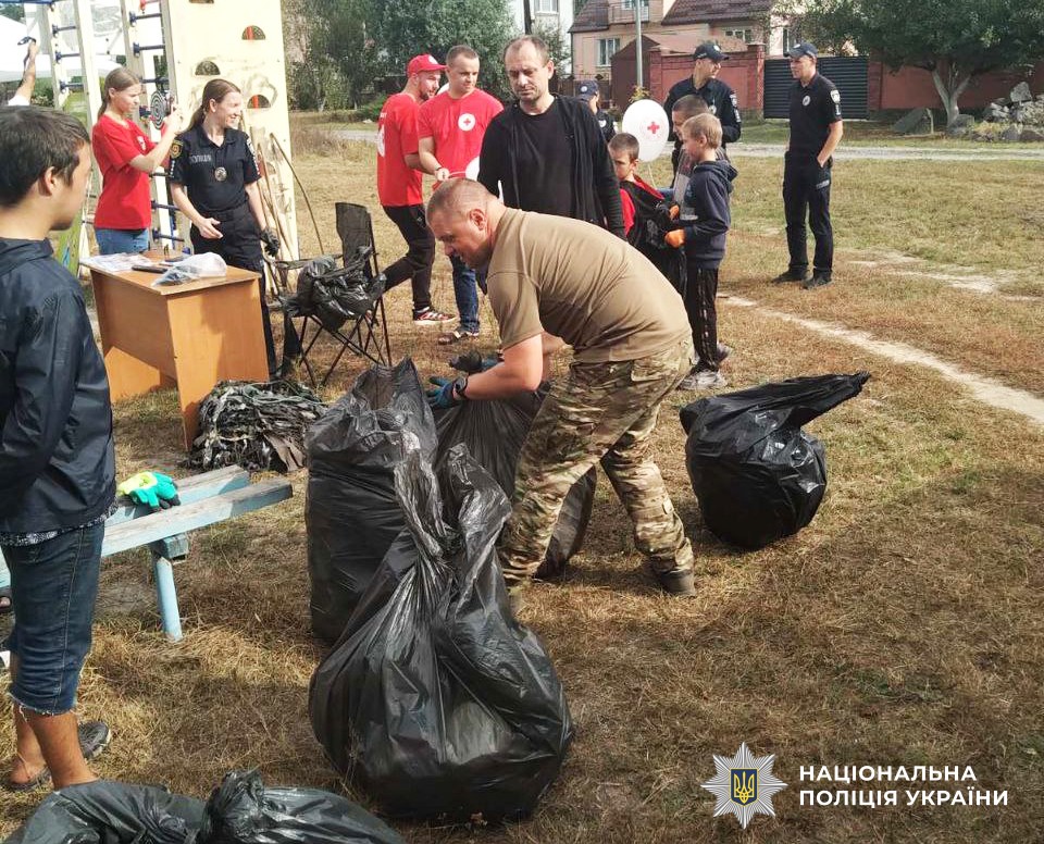 «Чисте місто — безпечне життя»: сарненські поліцейські спільно з внутрішньо-переміщеними дітьми прибирали парки й вулиці