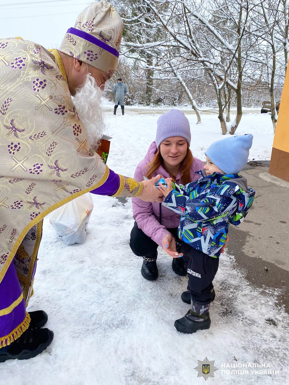 Дякували за приємний сюрприз усі — від малого до великого. Задоволений від отриманих позитивних емоцій мешканців громади і поліцейський офіцер.