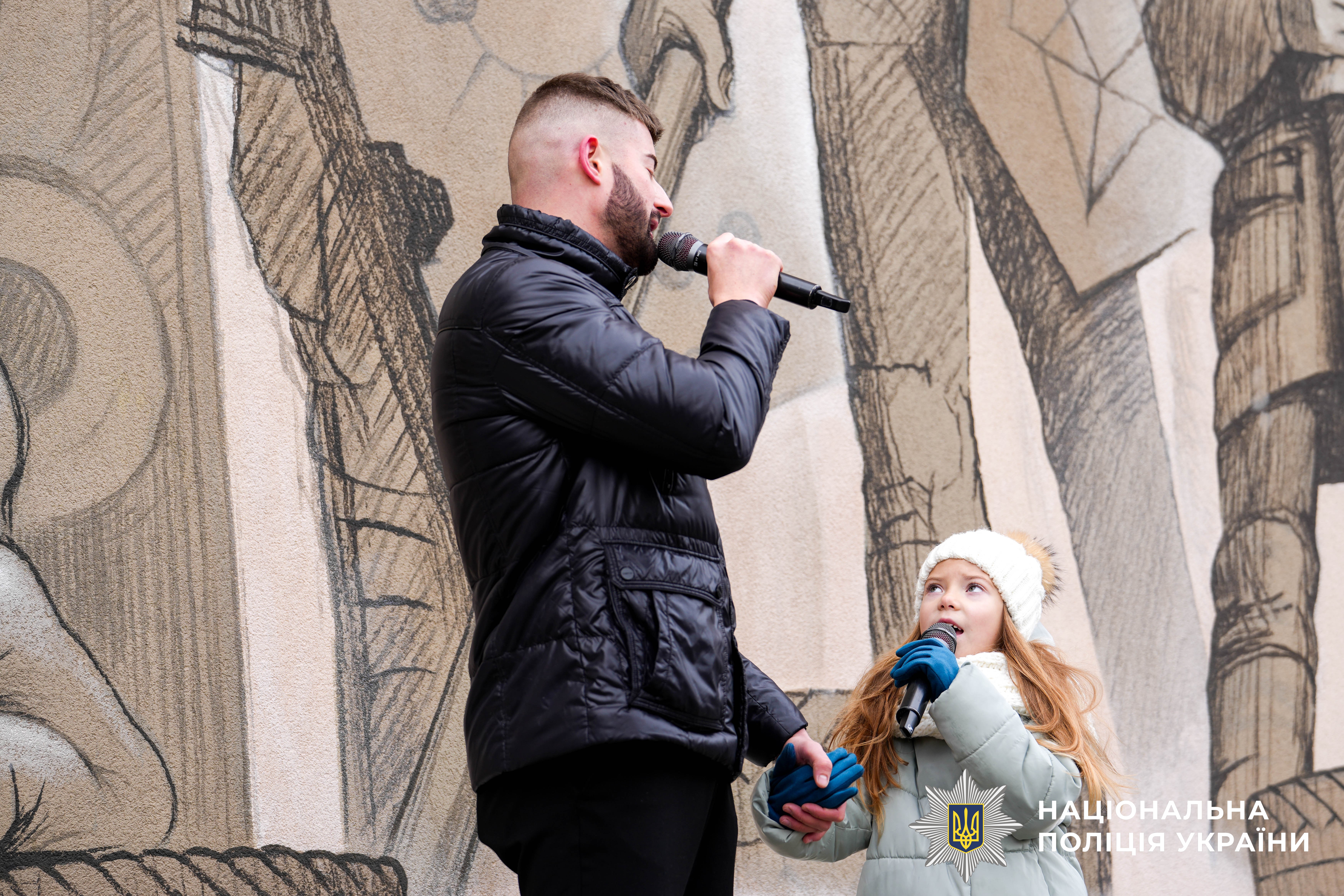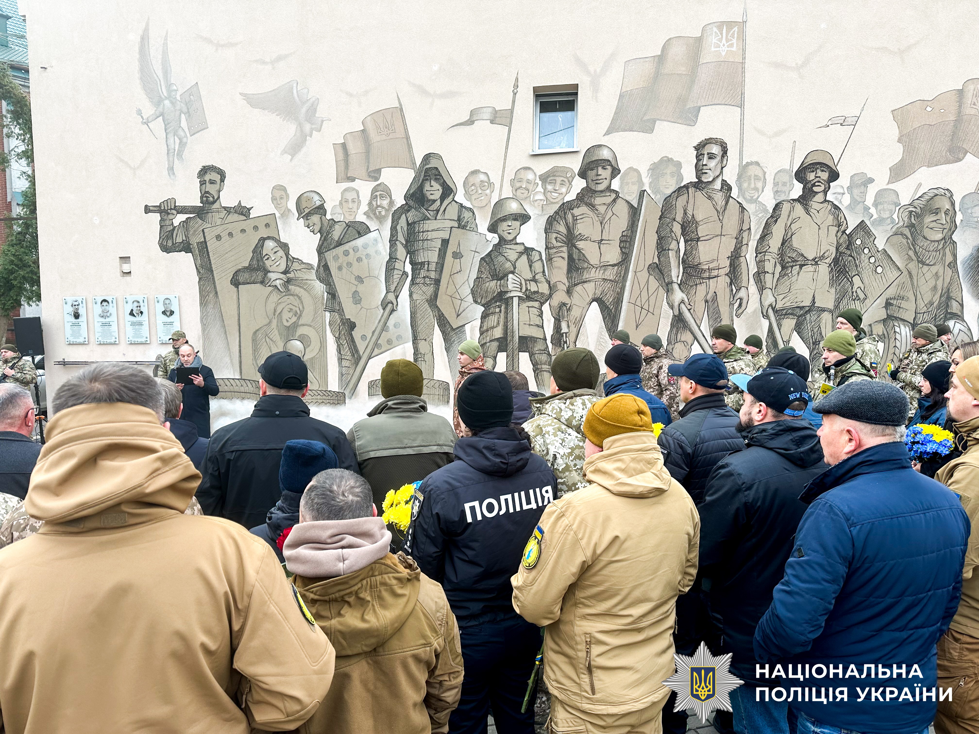 Біля Муралу Героям Небесної Сотні, спільно із представниками влади та громадськістю правоохоронці віддали шану мужнім патріотам України, які загинули за ідеали свободи та демократії у нашій державі. Вшанували присутні і пам’ять захисників, які поклали на вівтар своє життя, виборюючи нашу Перемогу сьогодні.