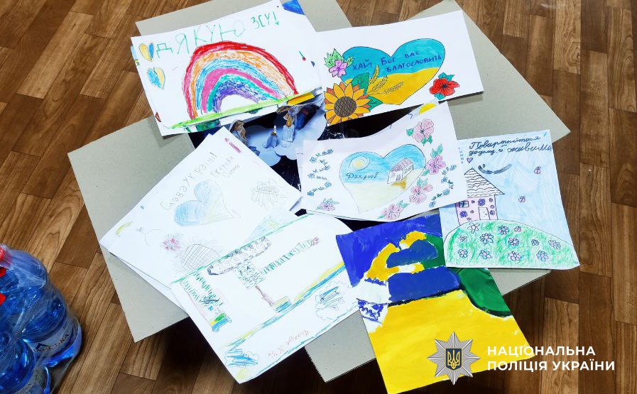 Та найбільш важливими у посилці стали малюнки від дітей поліцейських: у них відображена сила українського духу, підтримка та турбота за кожного захисника. Вже у таких своїх малих роках вони розуміють, що «у руках захисників доля України».