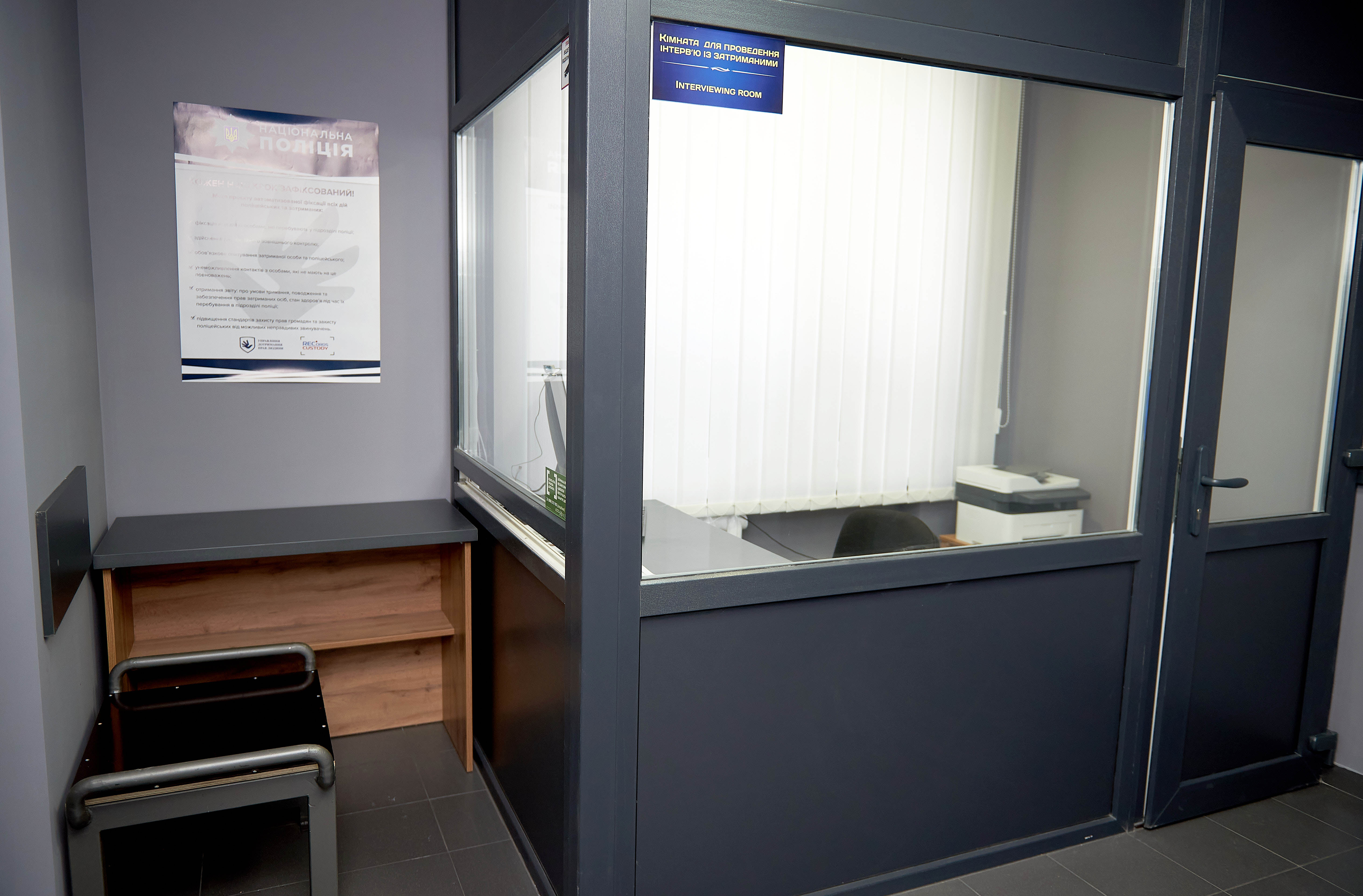 У відділенні поліції у місті Костопіль, відповідно до вимог міжнародних стандартів з дотримання прав людини, облаштовані із відеонаглядом кімнати для очікування, проведення слідчих дій, для зустрічі доставленої особи із захисником, а також окреме приміщення для затриманих.
