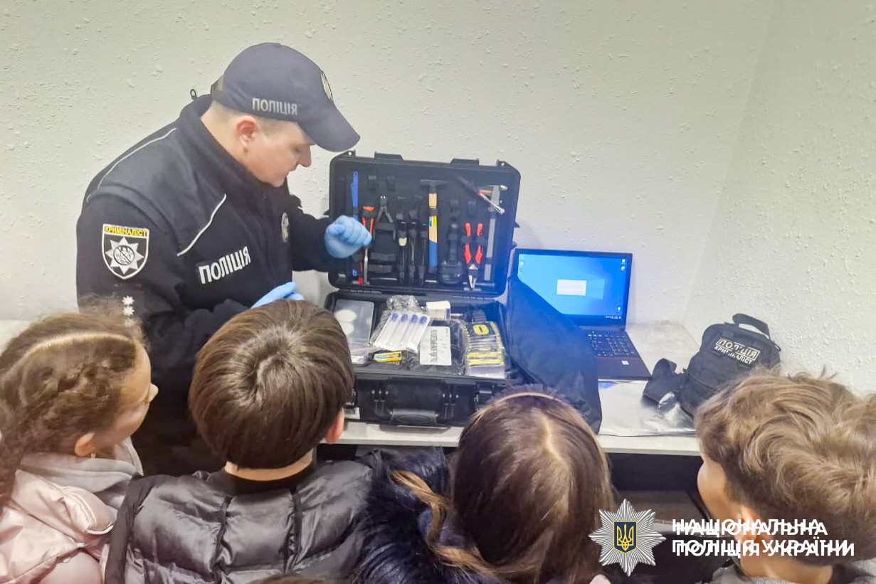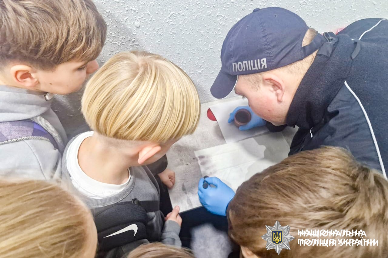 Під час зустрічі малеча ознайомилася з роботою системи «Custody Records», яка захищає права як затриманих, так і поліцейських. Крім того, спеціаліст-криміналіст продемонстрував вилучення відбитків пальців та розповів про важливість дактилоскопування.
