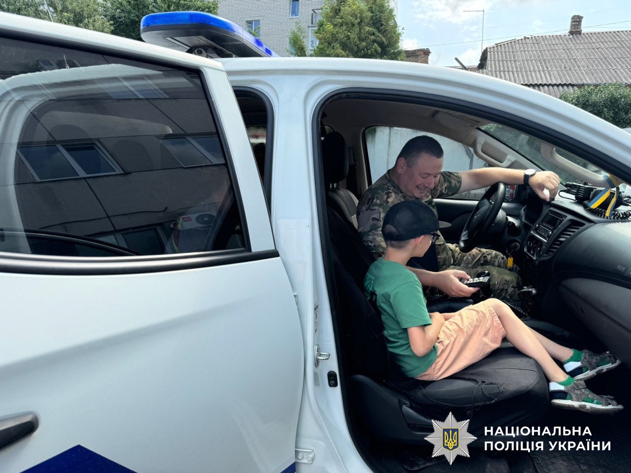 Діти мали змогу риміряти поліцейську амуніцію, дізнатись про підстави застосування та види спеціальних засобів, посидіти за кермом службового авто, ввімкнути проблискові маячки, зупинити транспортний засіб, умовного правопорушника, через гучномовець.