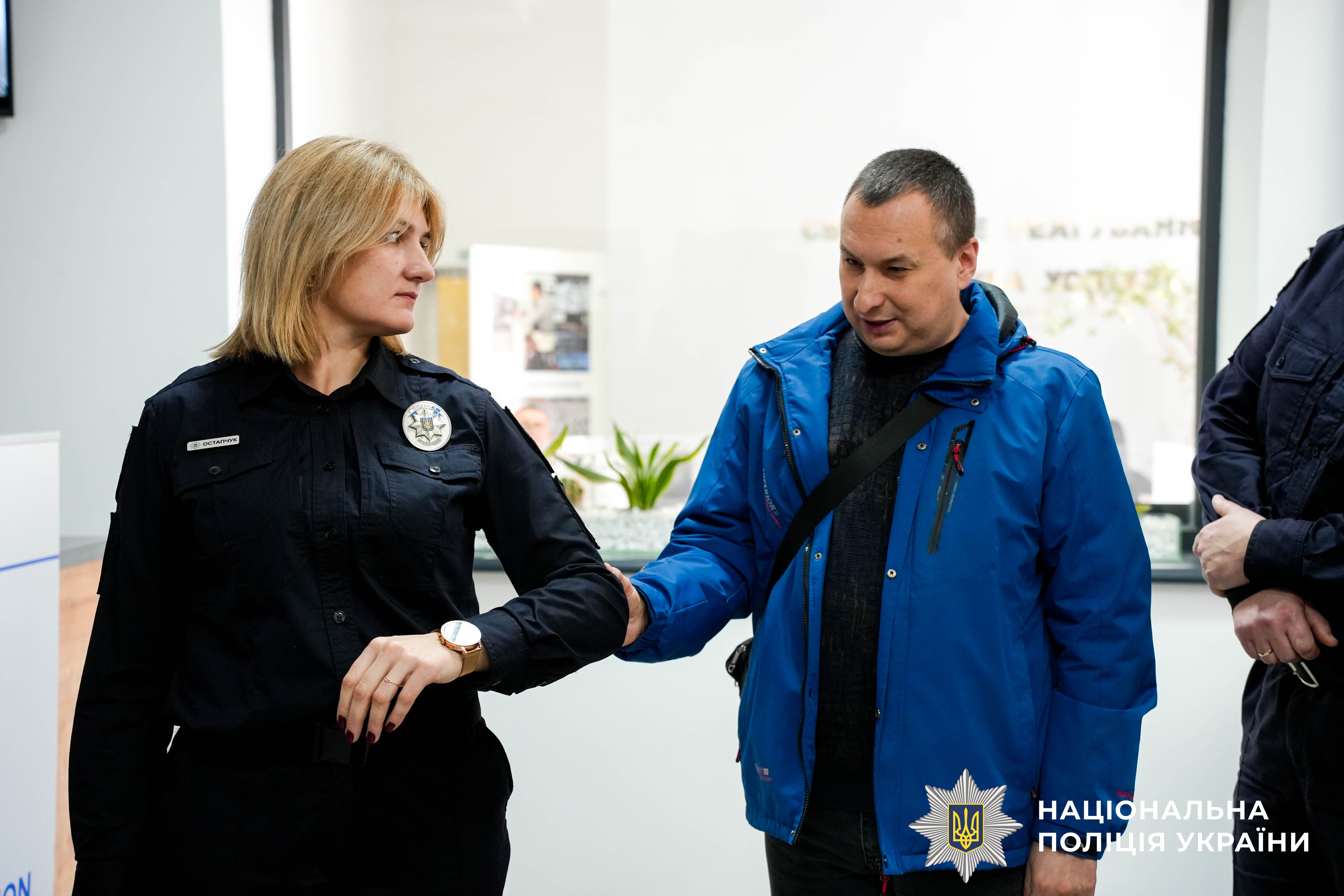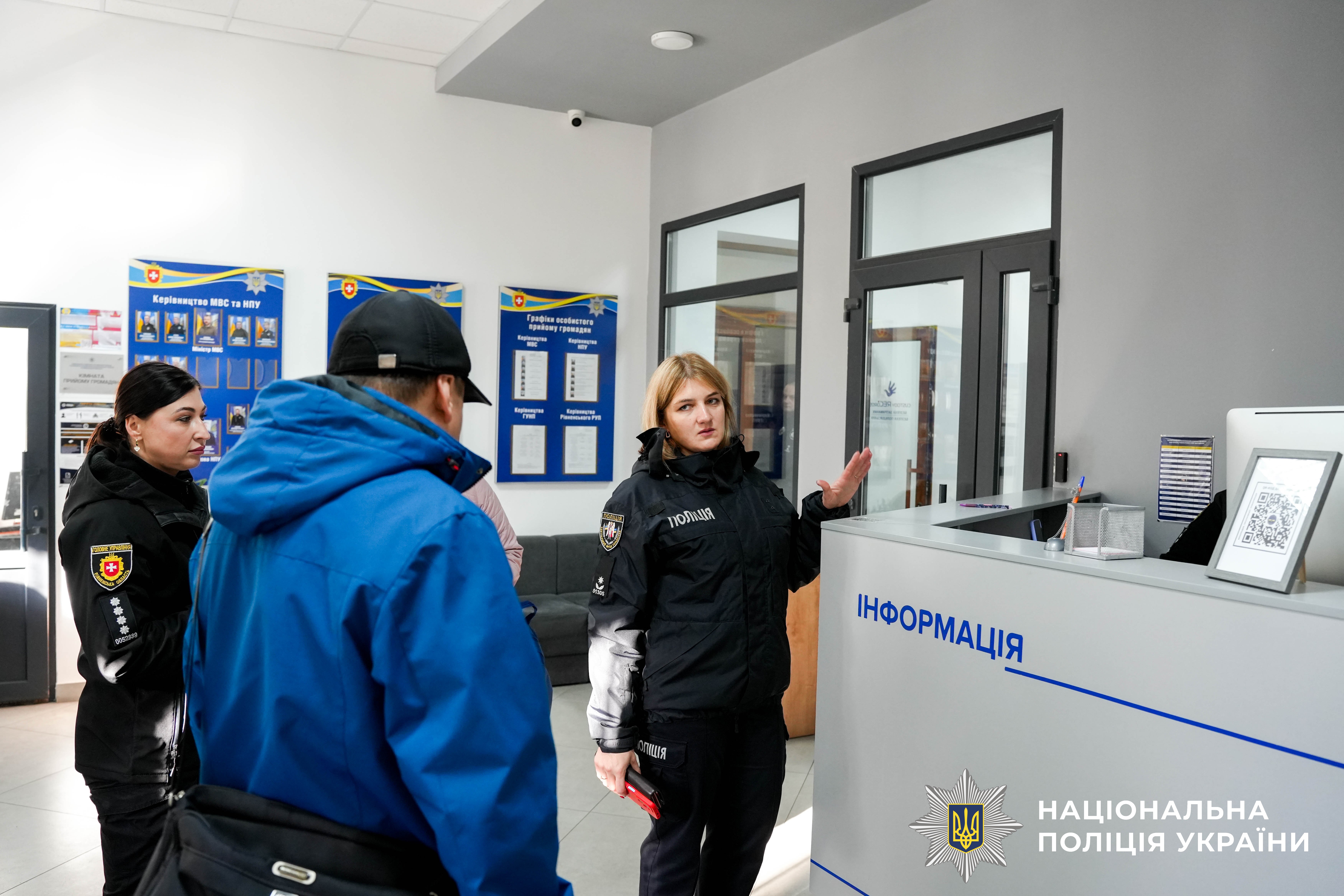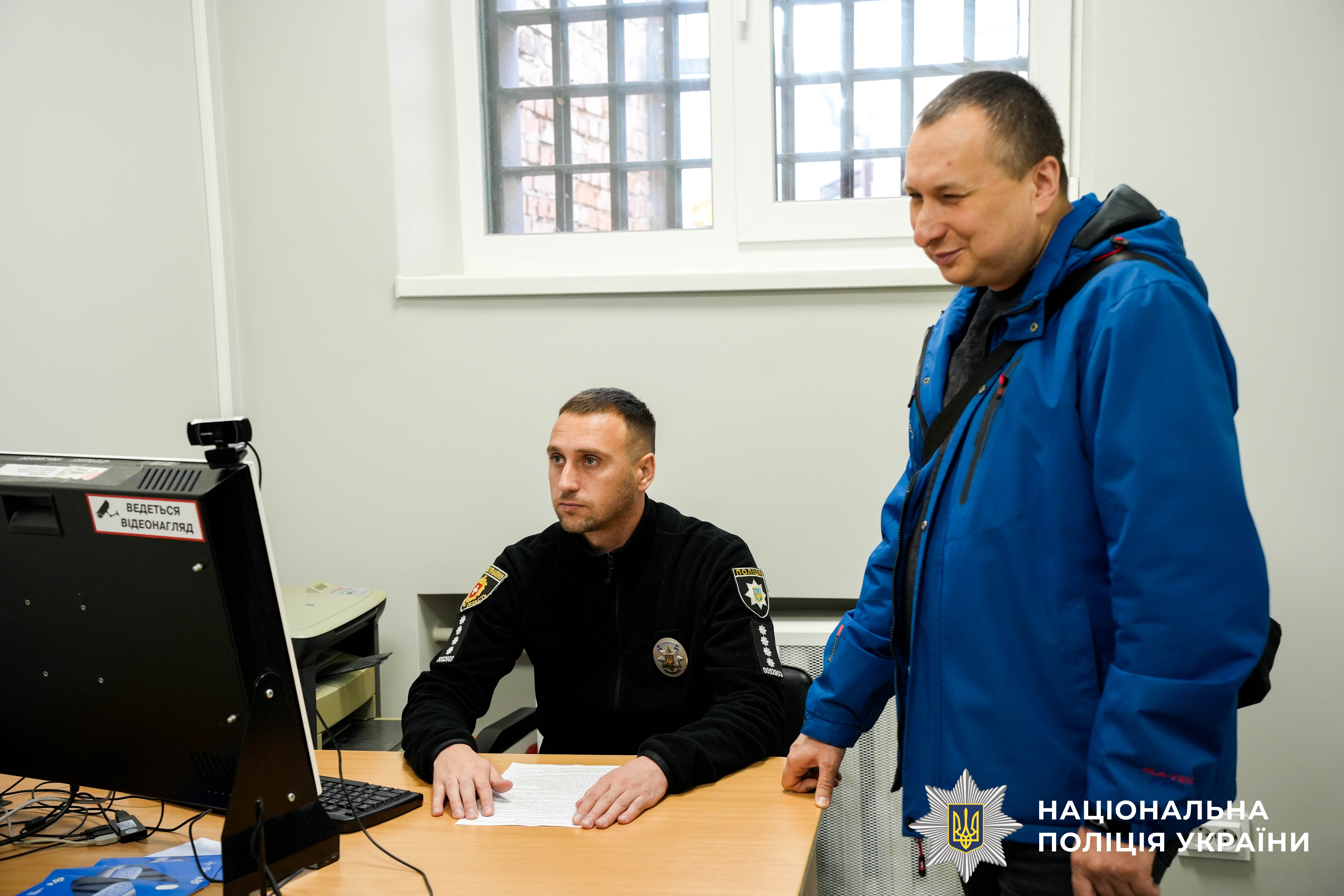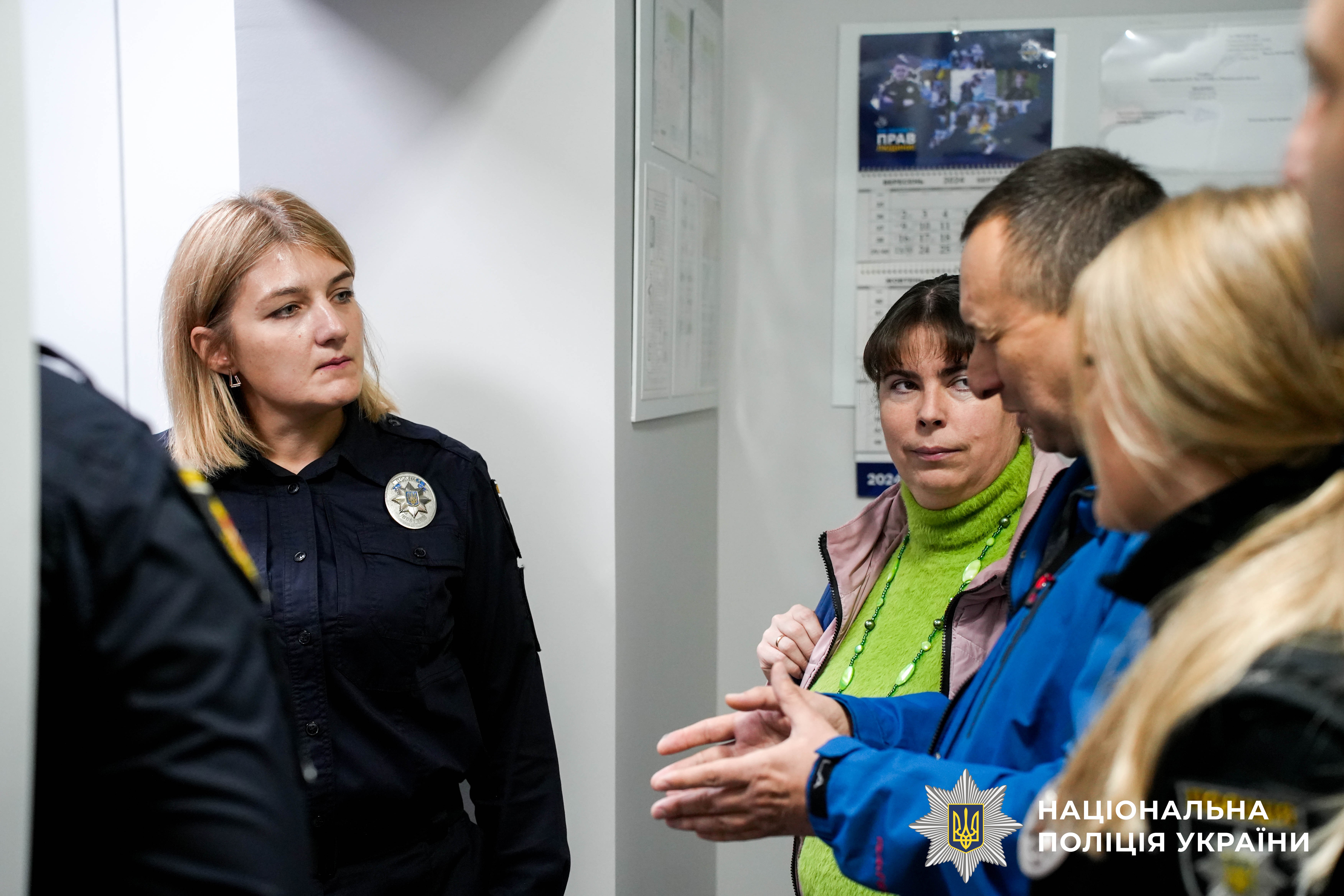 Насамперед ознайомились із входом до будівлі: тут табличка зі шрифтом Брайля та кнопка виклику чергового. Далі оглянули фронт-офіс та приміщення, де функціонує система «Custodi Records». Дізнались про порядок проведення інтерв’ювання особи під час доставлення її до підрозділу поліції, оглянули кімнати, де здійснюється дактилоскопіювання та проведення слідчих дій та зауважили на потребах незрячих і маломобільних груп населення.