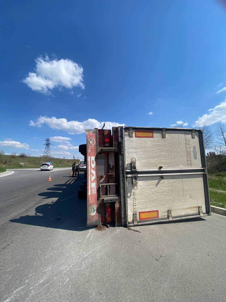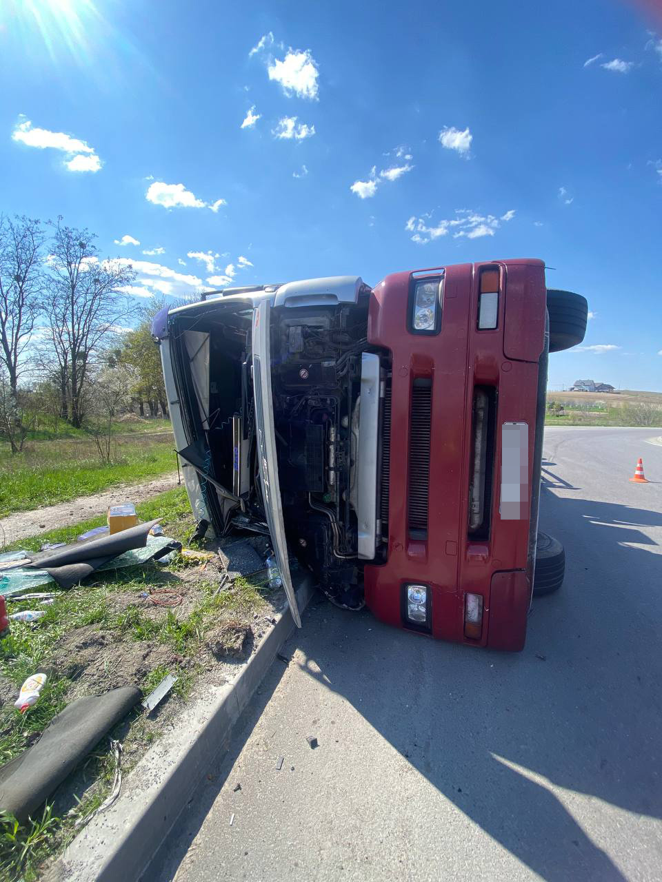 Поліцейські на місці події встановили, що водій вантажівки «MAN» із напівпричепом, 54-річний житель Львівщини, рухаючись перехрестям із круговим рухом, не впорався з керуванням, внаслідок чого автомобіль перекинувся на бік. Унаслідок ДТП керманича із незначними травмами доставили до лікарні та після надання необхідної допомоги — відпустили.