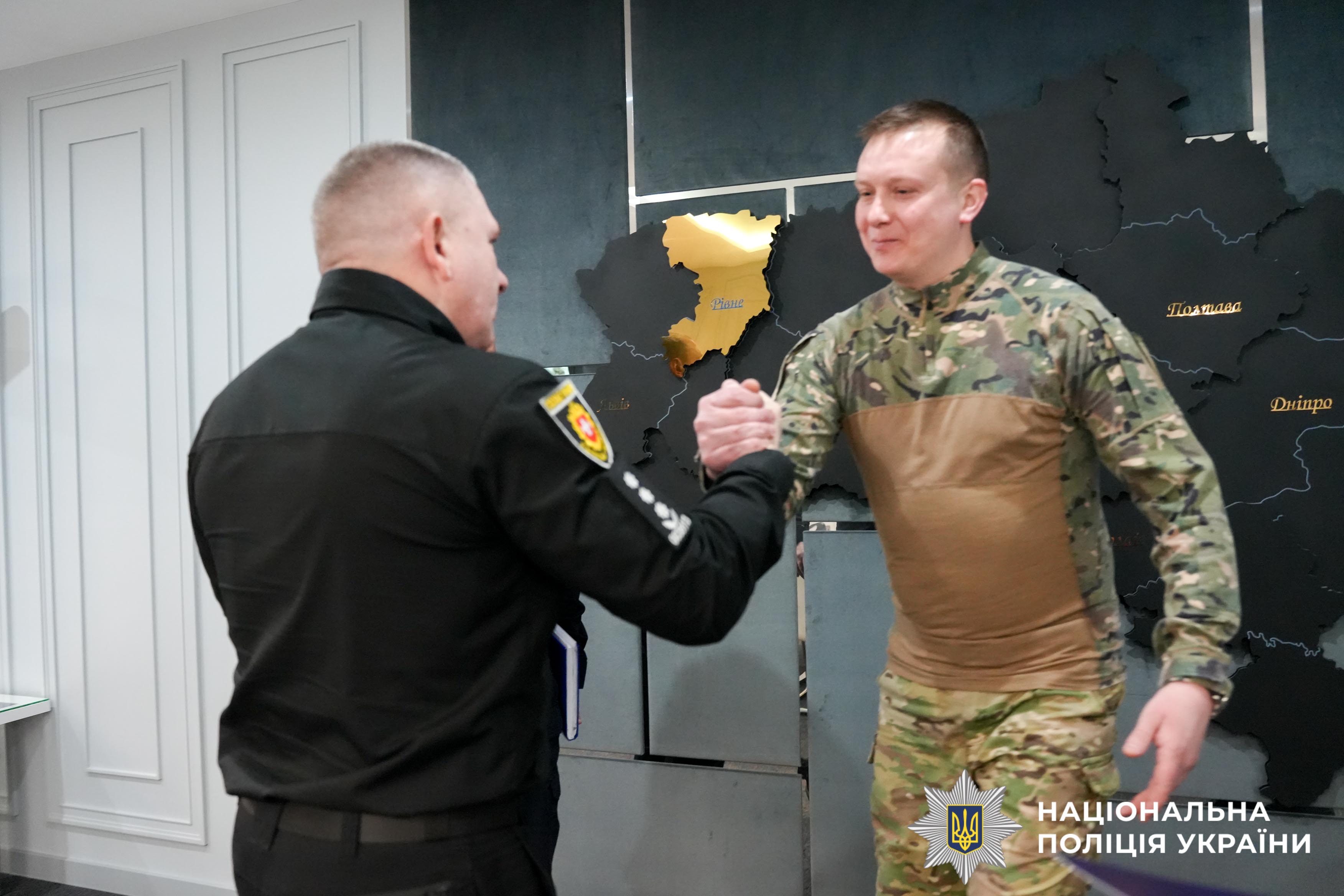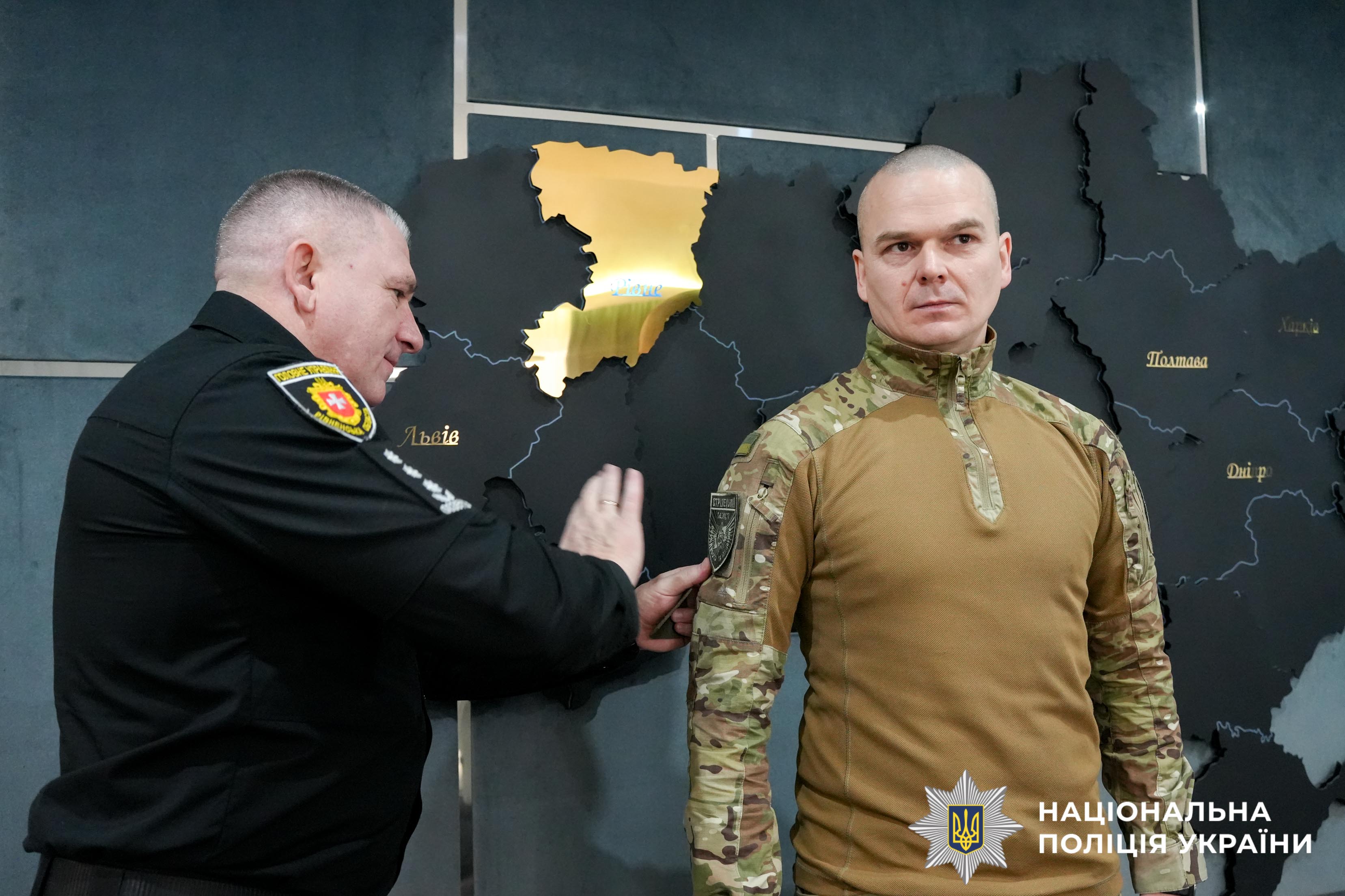 «Дякуємо за мужність, сміливість, відважність та героїзм. Ви — гордість підрозділу і приклад для всіх нас. Честь і шана. Раді вітати вас удома», — звернувся до поліцейських начальник ГУНП в Рівненській області Віктор Шанський.