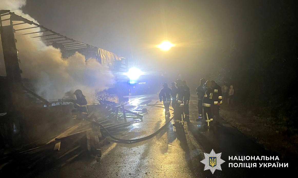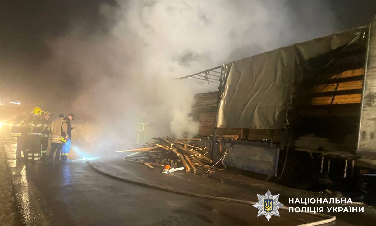 Внаслідок ДТП сталося займання вантажівки: тягач згорів повністю, а напівпричеп частково.