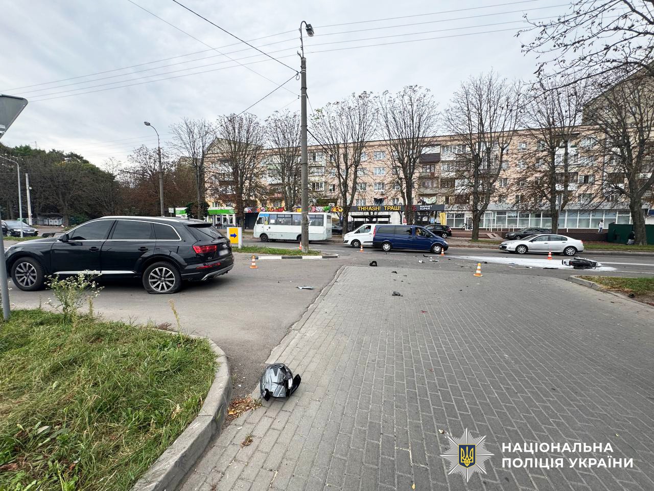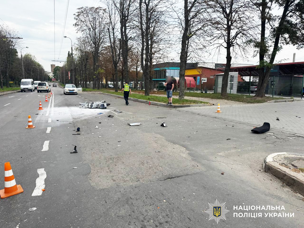 Від удару із позашляховиком двоколісний транспортний засіб загорівся. Вогонь загасили небайдужі громадяни, які стали свідками автопригоди.