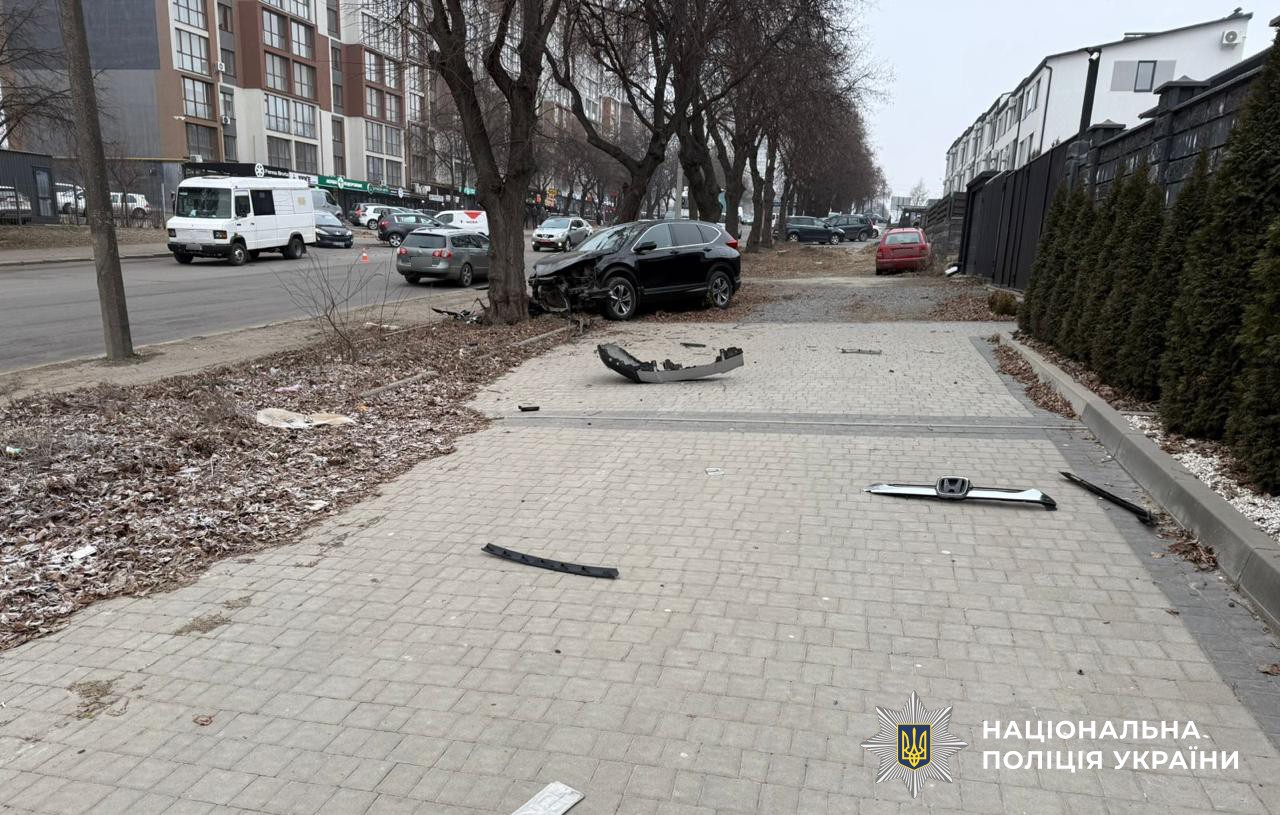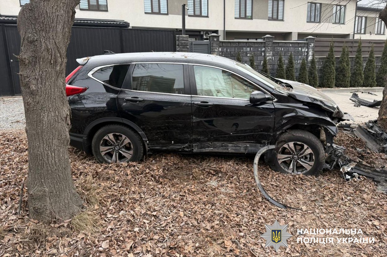 У результаті кросовер «Honda» втратив керованість, виїхав на зустрічну смугу, а в подальшому — на тротуар, де наїхав на пішохідку. Після цього авто врізалося у дерево.