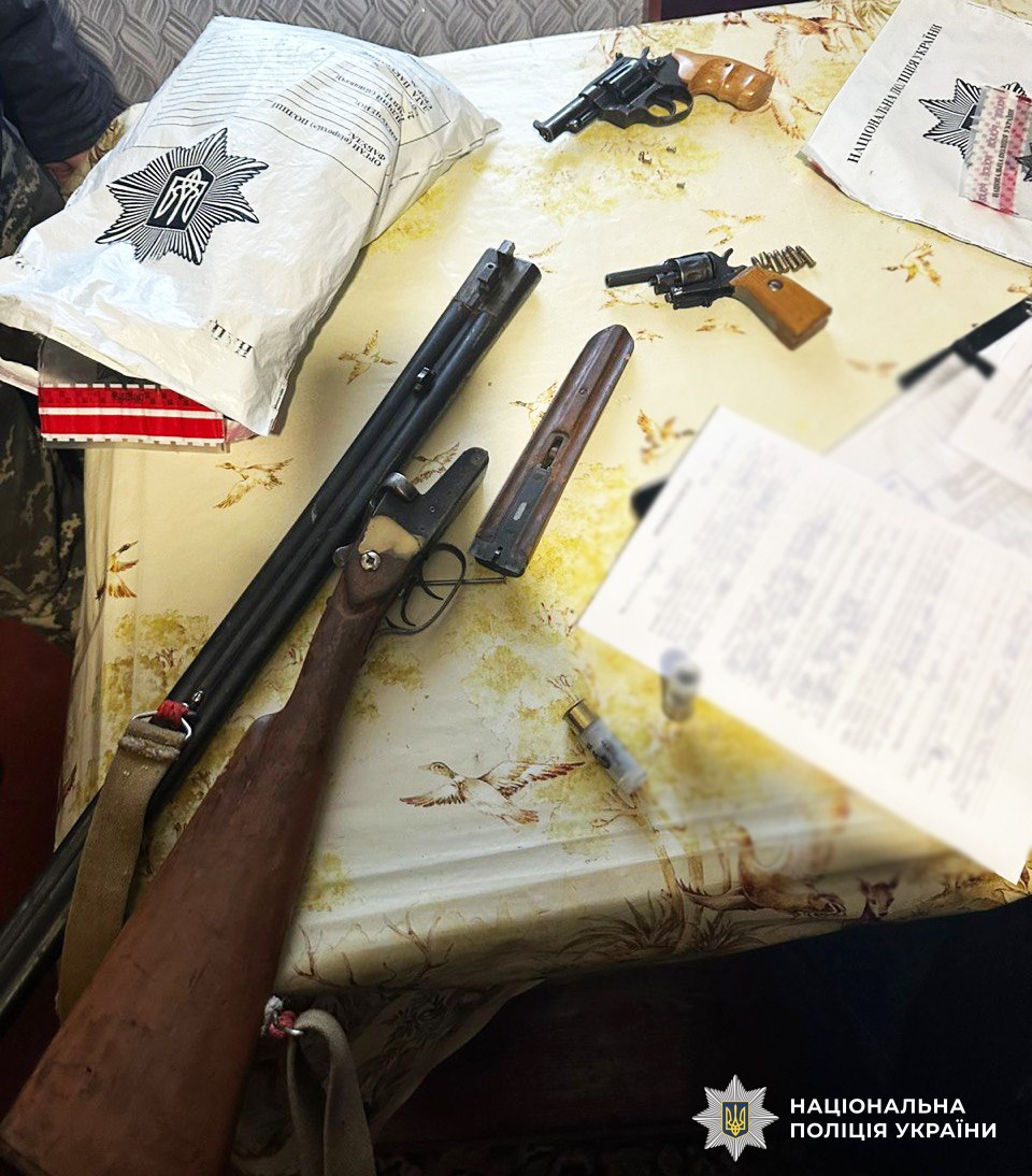 А у 51-річного мешканця села Залуччя — два револьвери, один з яких кустарного виробництва та гладкоствольну рушницю.