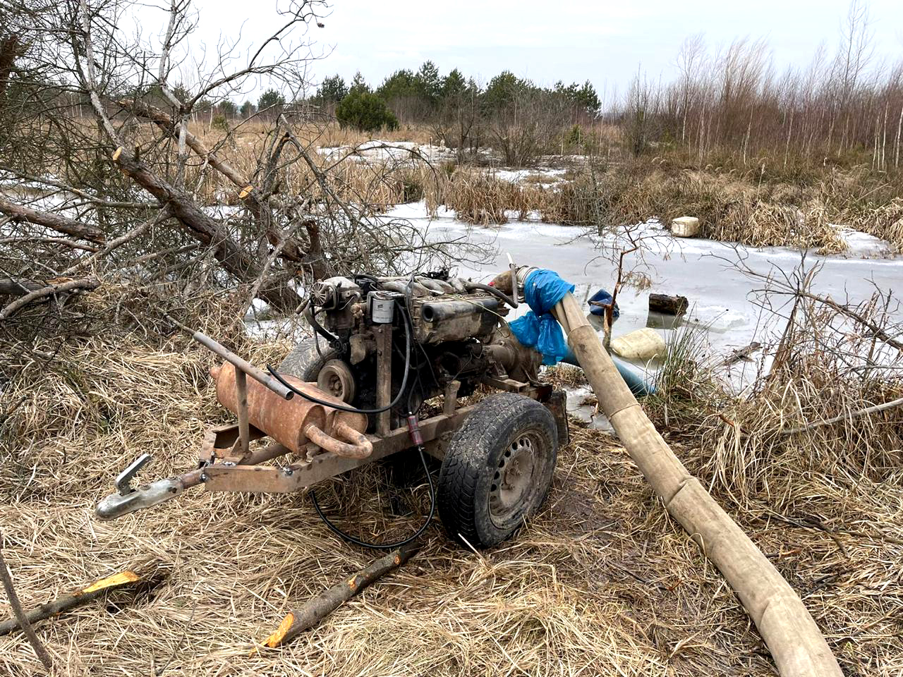 З місця події вилучено мотопомпу кустарного виробництва та обладнання для видобутку бурштину, а також автомобіль «УАЗ». 31-річний місцевий житель, якого поліцейські виявили на місці скоєного злочину, свою причетність до незаконного промислу заперечив, стверджуючи, що збирав довкола дрова.