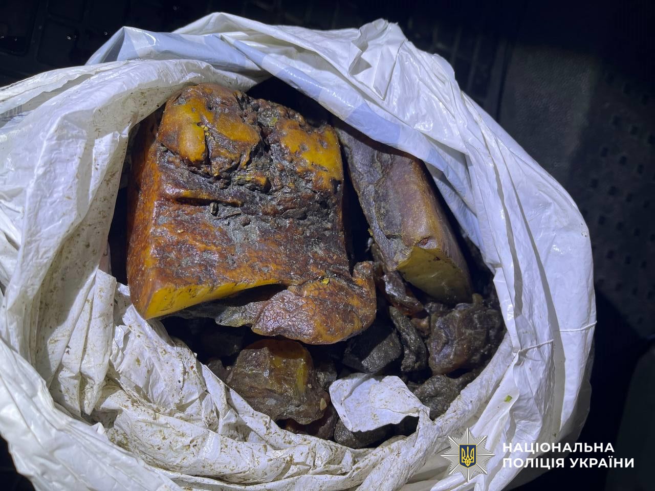 Під час візуального огляду поліцейські виявили під водійським сидінням підозрілий пакет, в якому містилося каміння бурштину-сирцю. 28-річний кермувальник, житель Володимирця, від будь-яких пояснень відмовився.