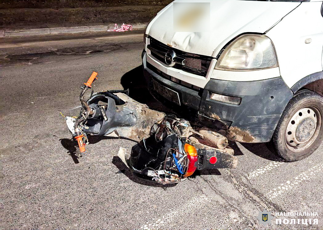 Унаслідок ДТП тяжко травмувався малолітній, який перебував без мотошолома. Потерпілого з черепно-мозковою травмою, крововиливом у мозок, переломами кісток черепа, ребра, ноги та численними забоями медики госпіталізували. Він досі проходить лікування.