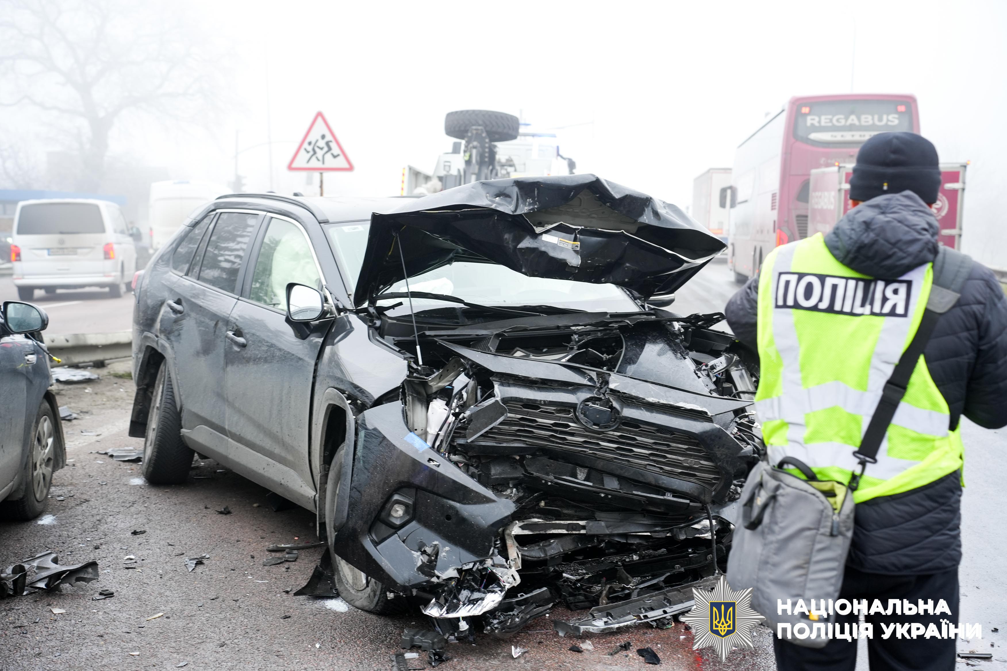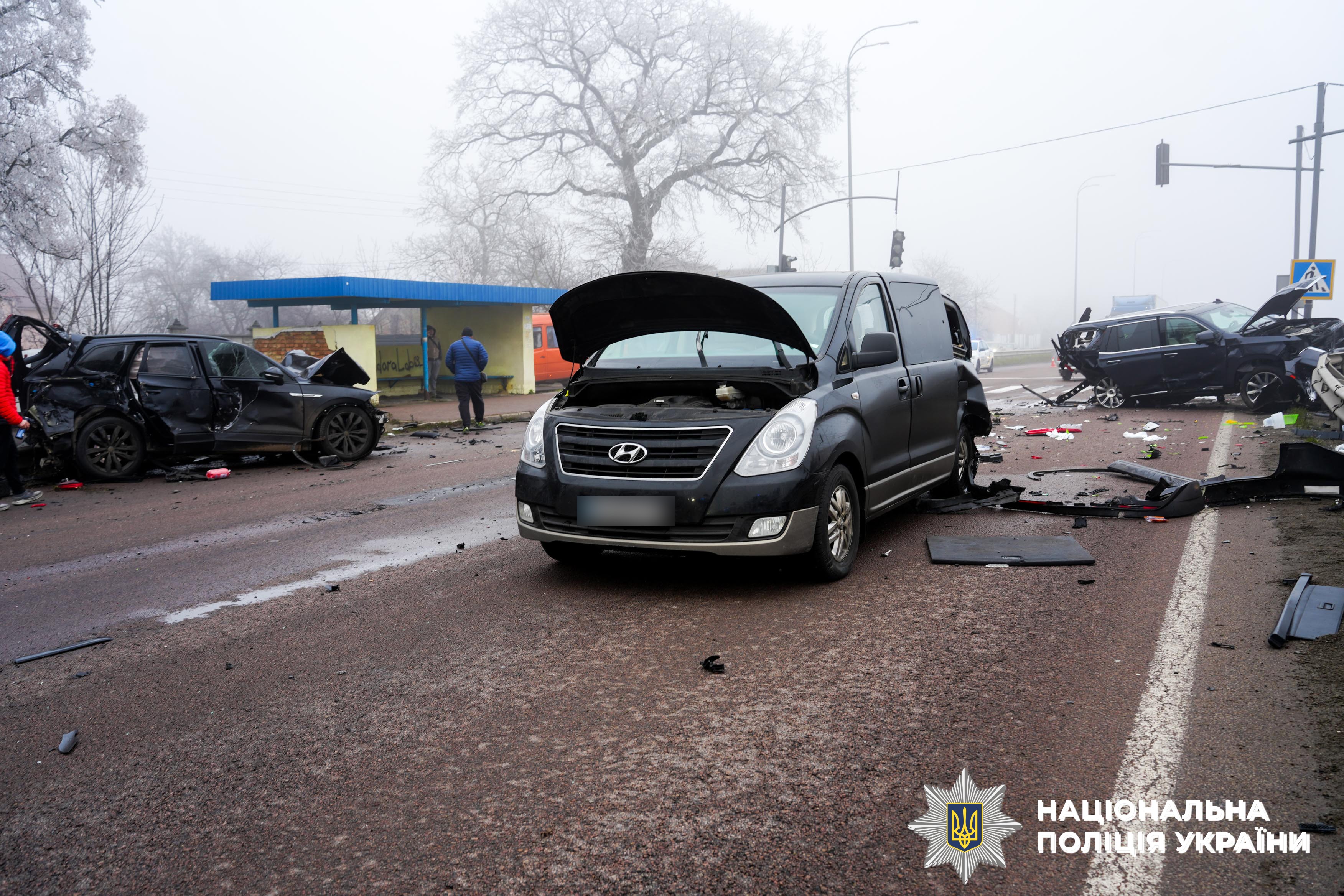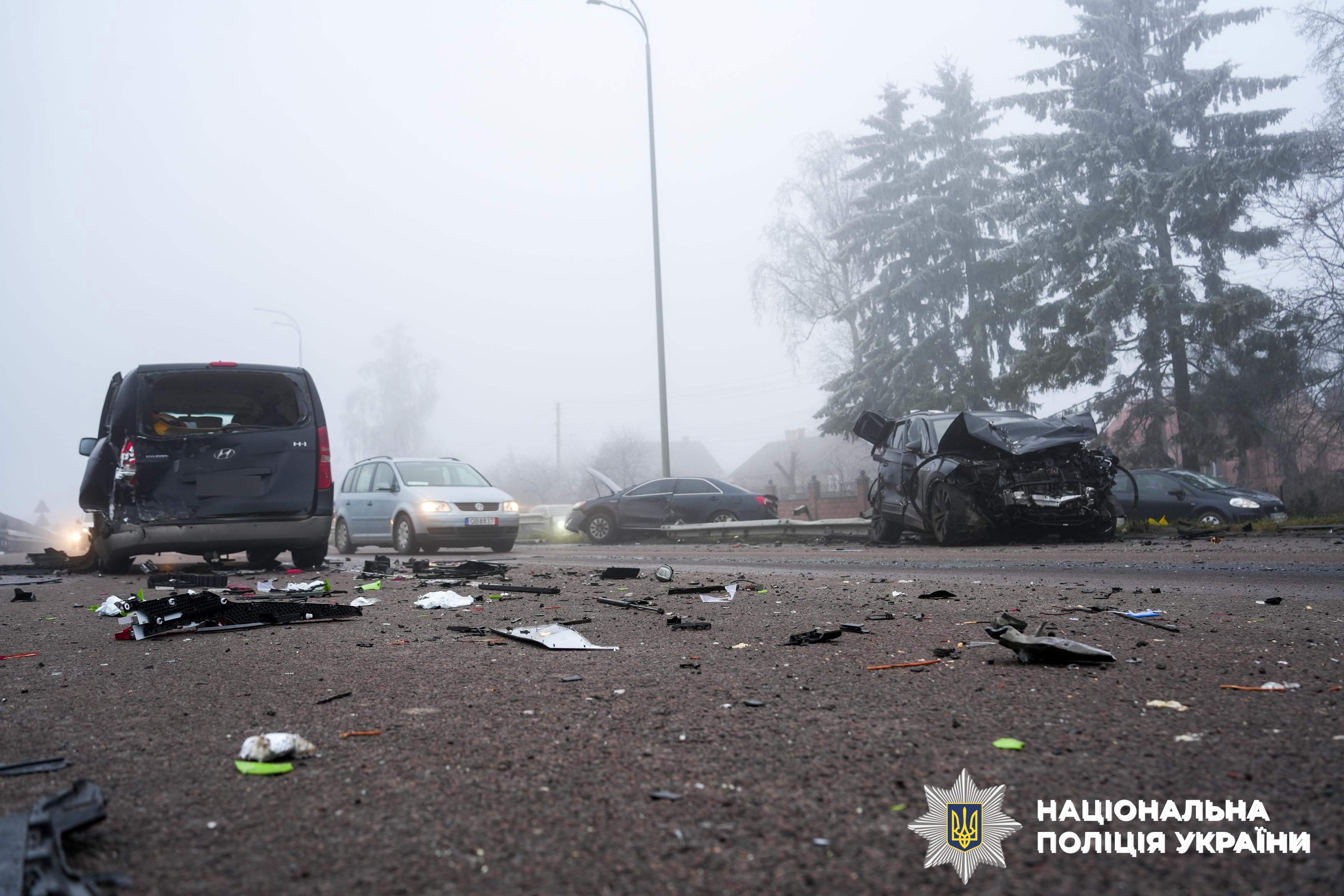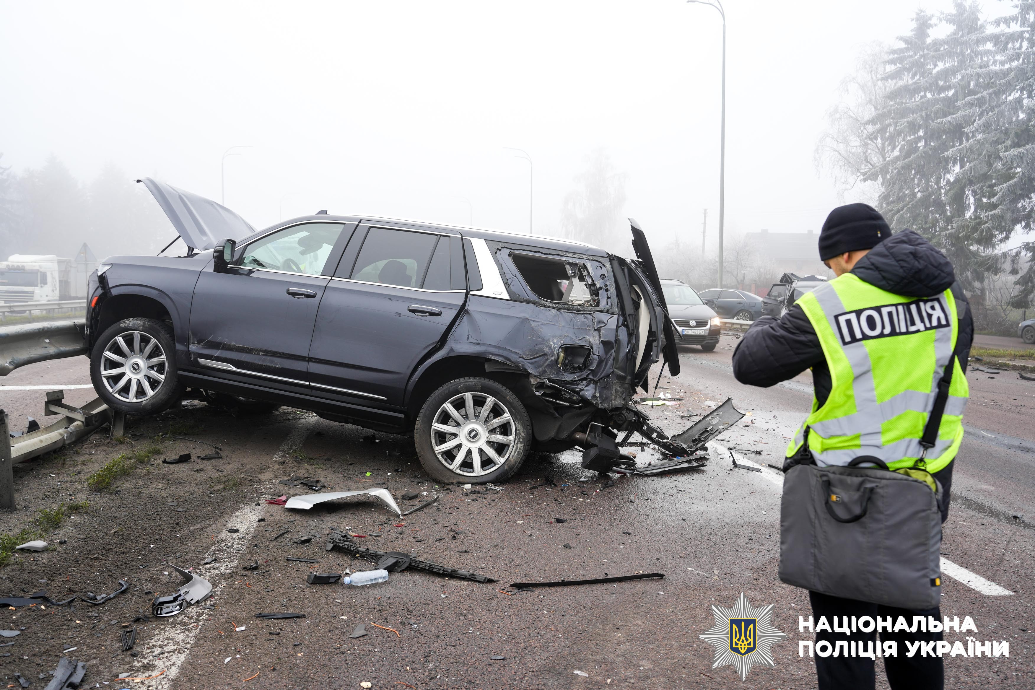 У момент очікування екіпажу патрульної поліції, близько 13 години, водій автомобіля Volkswagen Touareg в’їхав у Cadillac. В подальшому учасниками автопригоди стали іще п’ять транспортних засобів.