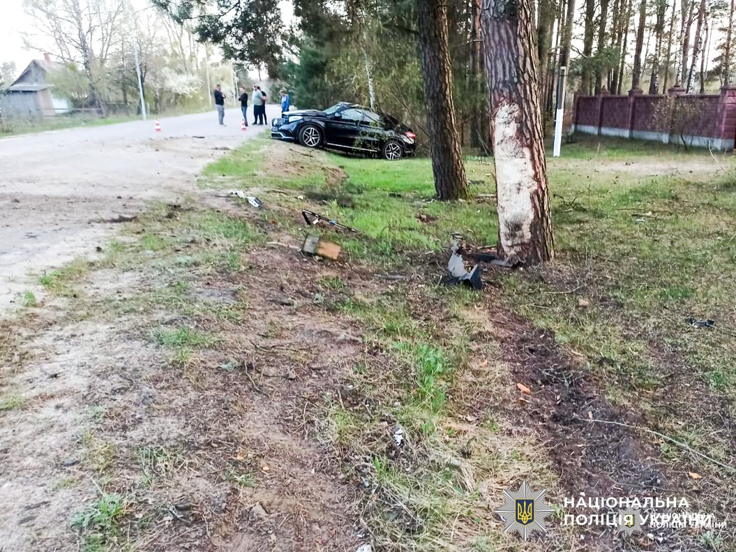 Поліцейські попередньо встановили, що водій автомобіля «Mercedes-Benz», 42-річний житель села Борове, під час зустрічного роз’їзду не врахував дорожньої обстановки, не вибрав безпечної швидкості та допустив з’їзд у кювет, де зіткнувся з деревом.