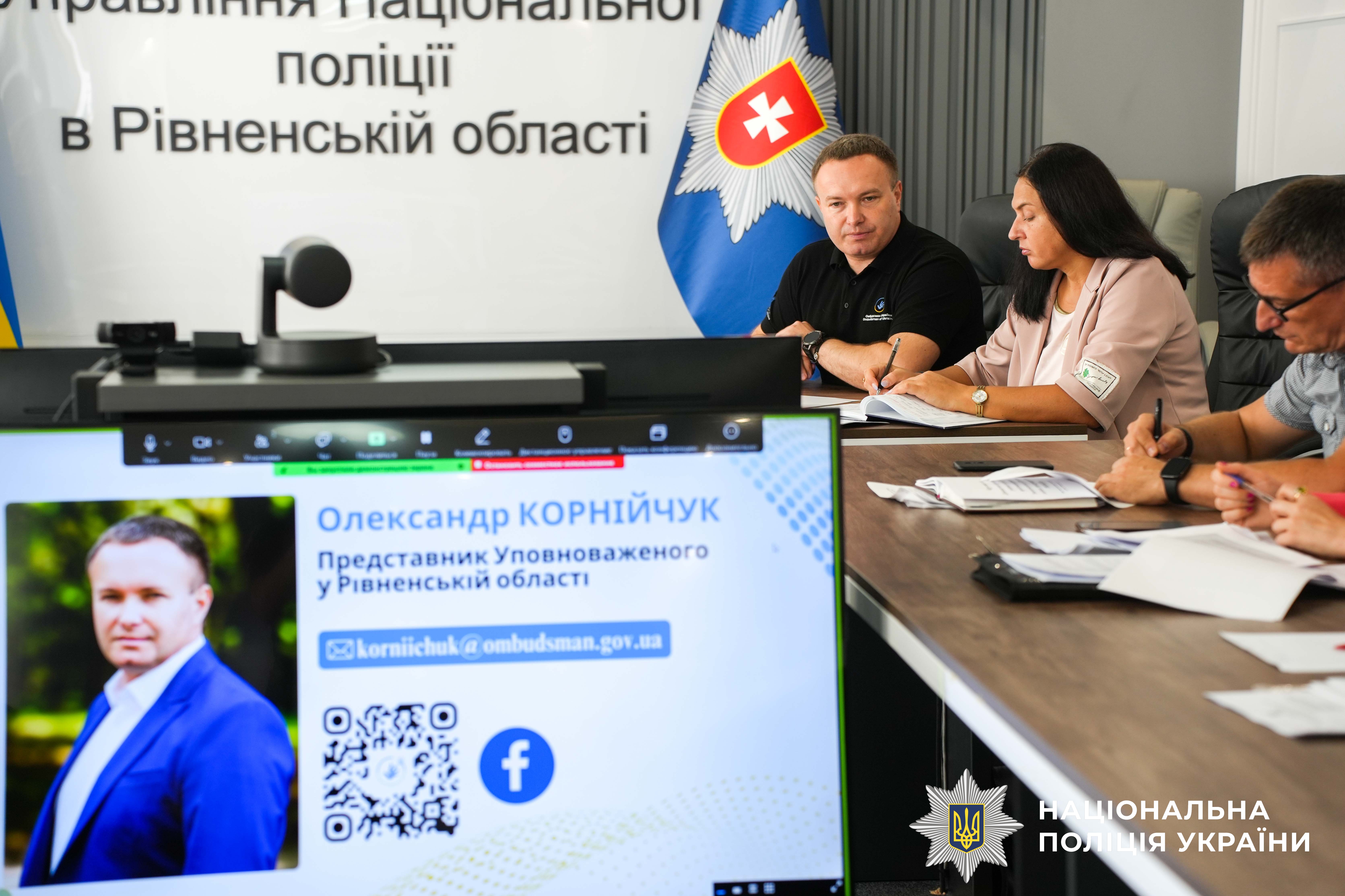 Учора, 18 вересня, у Головному управлінні за ініціативи представниці Департаменту Головної інспекції та дотримання прав людини Національної поліції України відбулась робоча зустріч з питань дотримання прав громадян, у якій взяли участь інспектори з дотримання прав людини територіальних підрозділів та ізоляторів тимчасового тримання поліції Рівненщини, керівники Управління головної інспекції та СОЗДМТТО, представники Уповноваженого Верховної Ради України з прав людини у Рівненській області, Західного міжрегіонального Центру надання безоплатної правничої допомоги та прокурори Рівненської обласної прокуратури.
