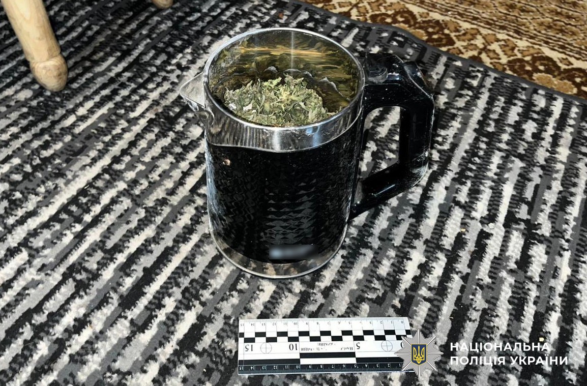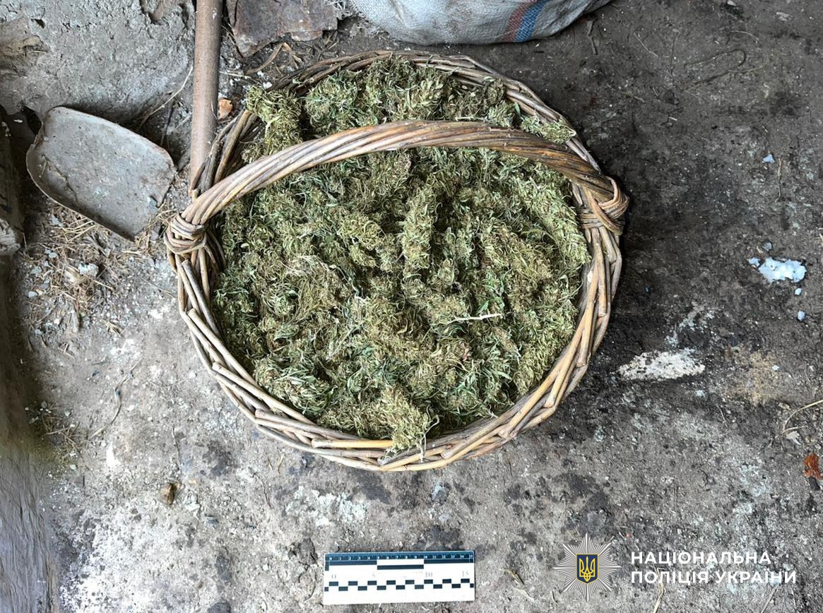 А у сарайному приміщенні 37-річного жителя села Квітневе правоохоронці виявили марихуану: вона була усюди — в кружці, тарілці, кошику, мішку та ящиках. Крім того, він висушував рослини конопель.