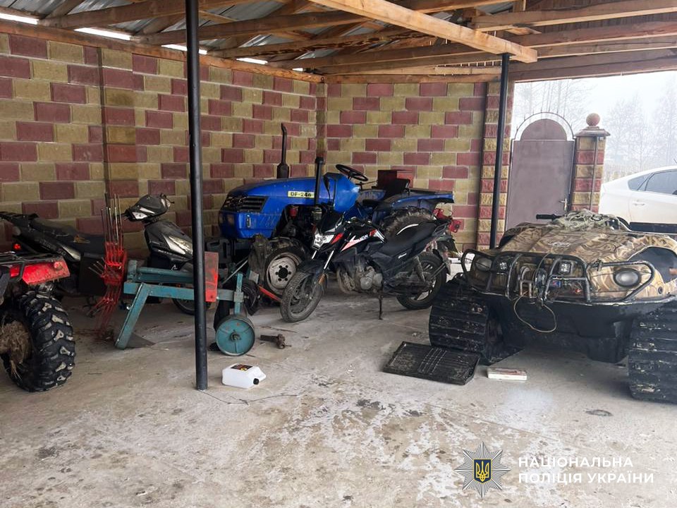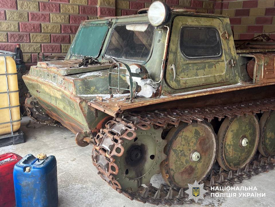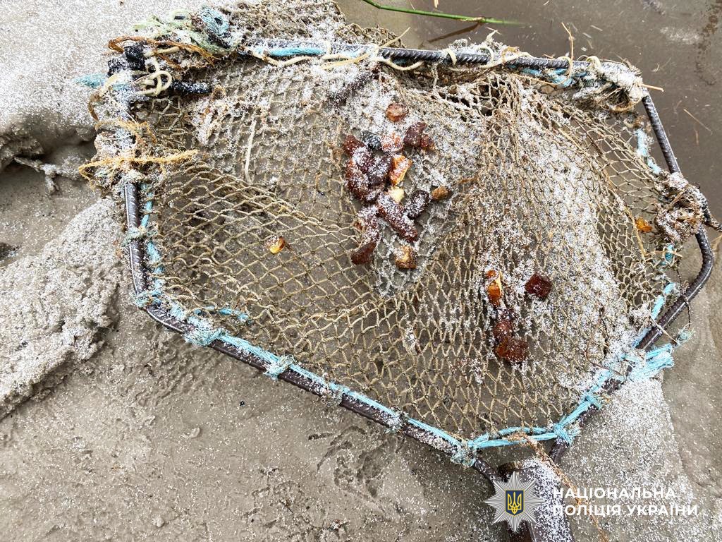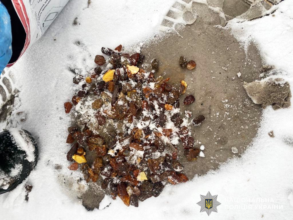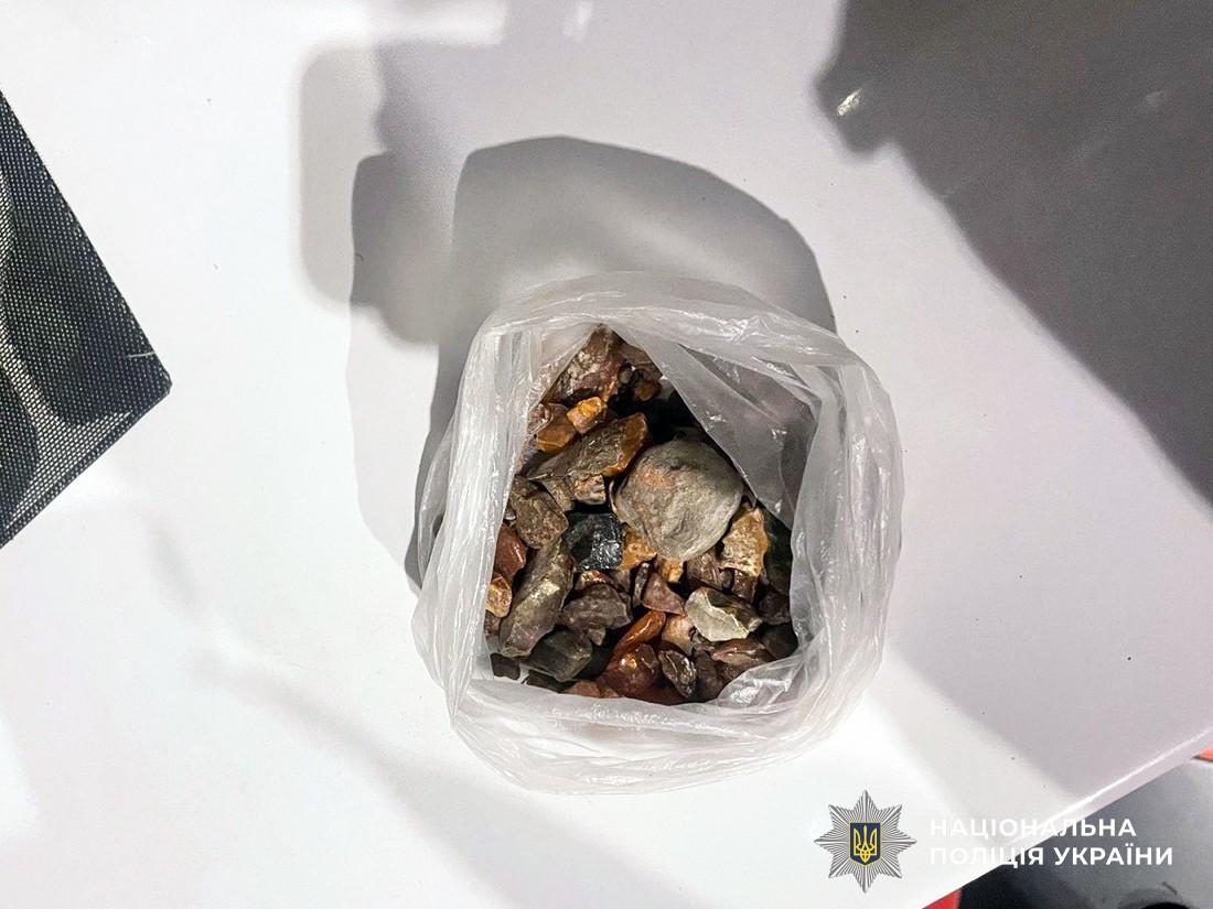 Під час слідчих дій поліцейські виявили та вилучили гусеничний тягач, каміння бурштину-сирцю, мобільні телефони та інші докази, які мають значення у справі.