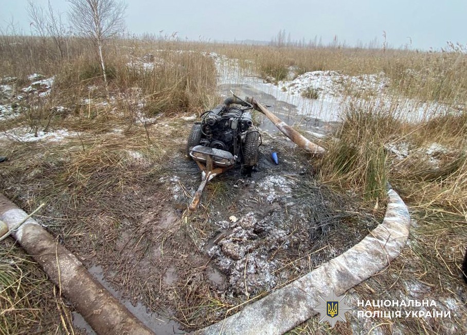 Слідчі СУ вилучили мотопомпу кустарного виробництва, незаконне знаряддя для видобутку бурштину-сирцю та «сонячне» каміння.