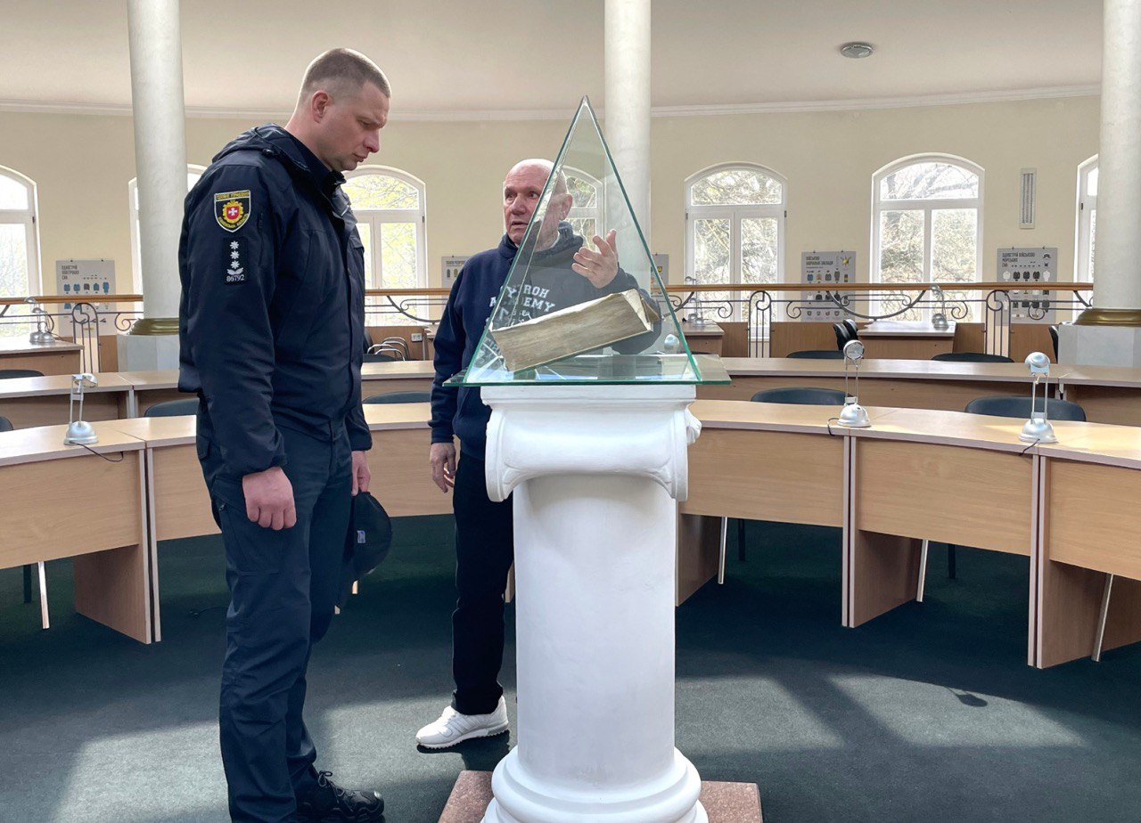 Учора, 22 квітня, Олександр Ганжа разом із керівником Рівненського райуправління поліції Романом Штебою проінспектував роботу та оглянув відділок в Острозі, а також не оминув увагою історичну пам’ятку – НУ «Острозька академія».