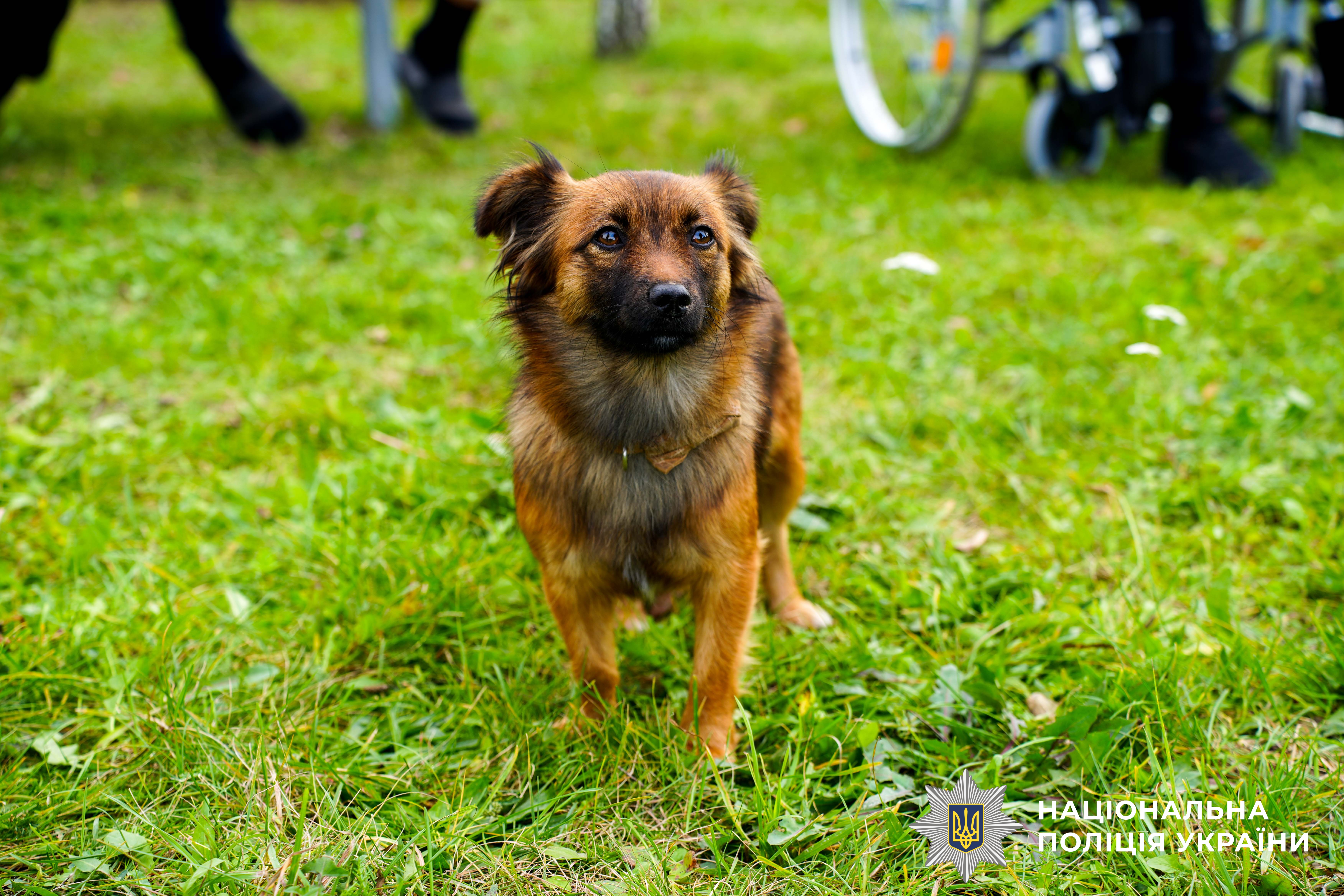 Втім, головною гостею заходу та розрадою була усім відома чотирилапа «Гайка». Собаку із Донеччини у кінологічний центр привезли військові. Відтак поліцейські опікуються нею вже орієнтовно пів року.