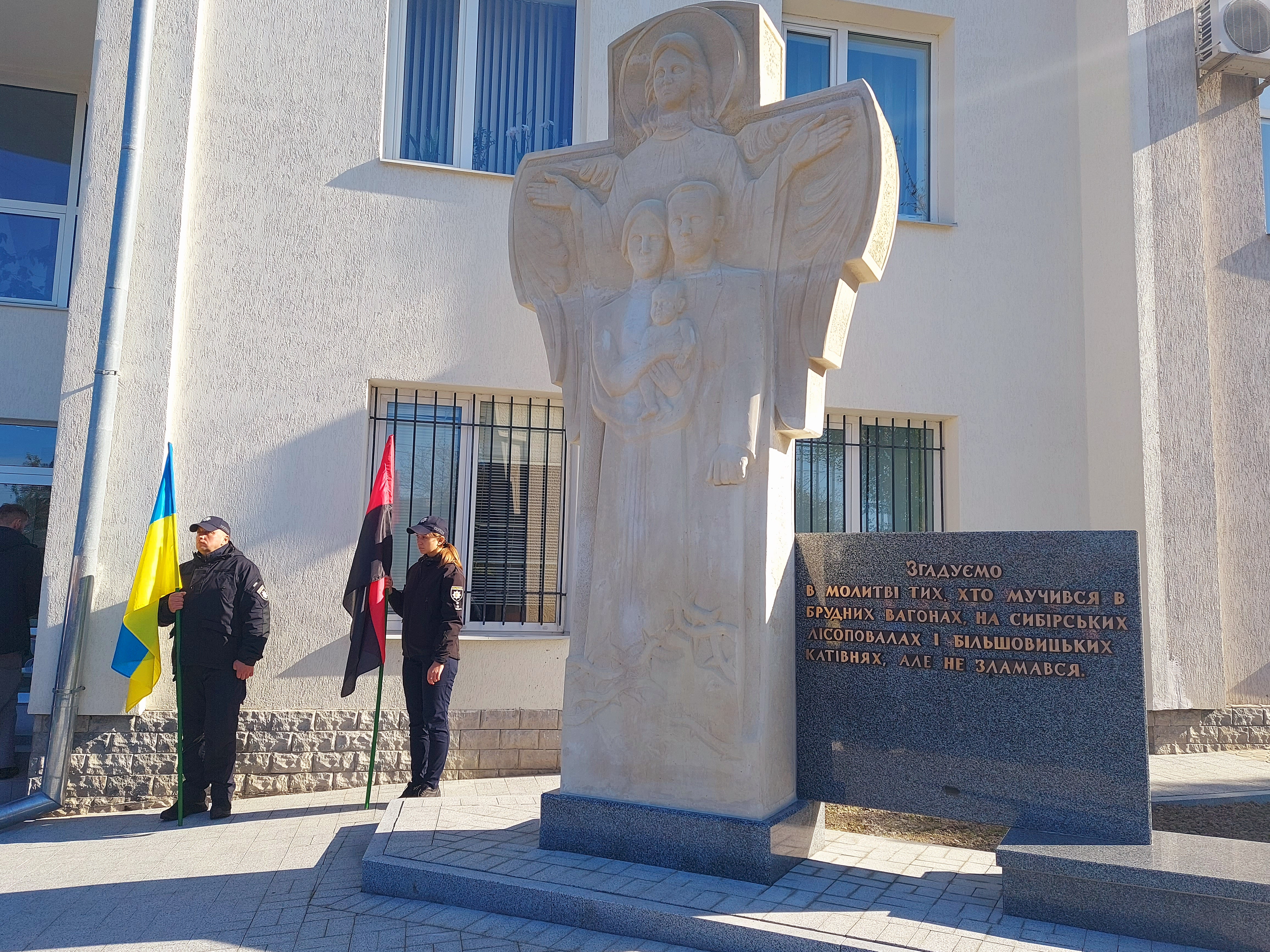 Поряд із приміщенням главку — пам’ятник репресованим та примусово виселеним жителям Рівненщини.