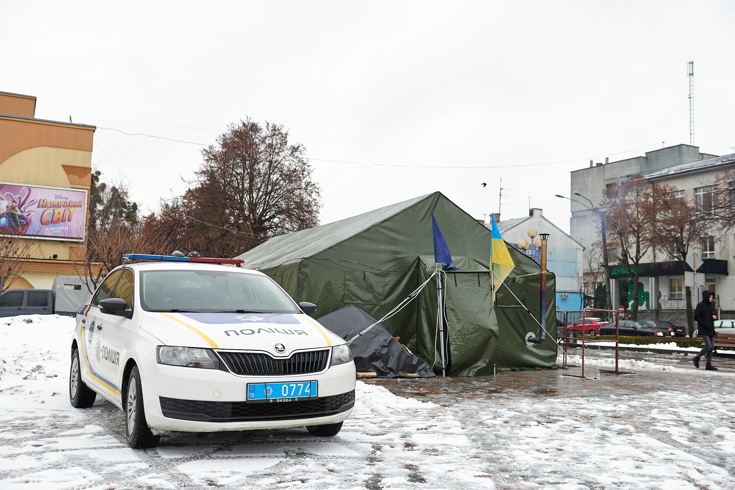 На центральній площі Рівного та Сарн розгорнуті поліцейські пункти підтримки.
