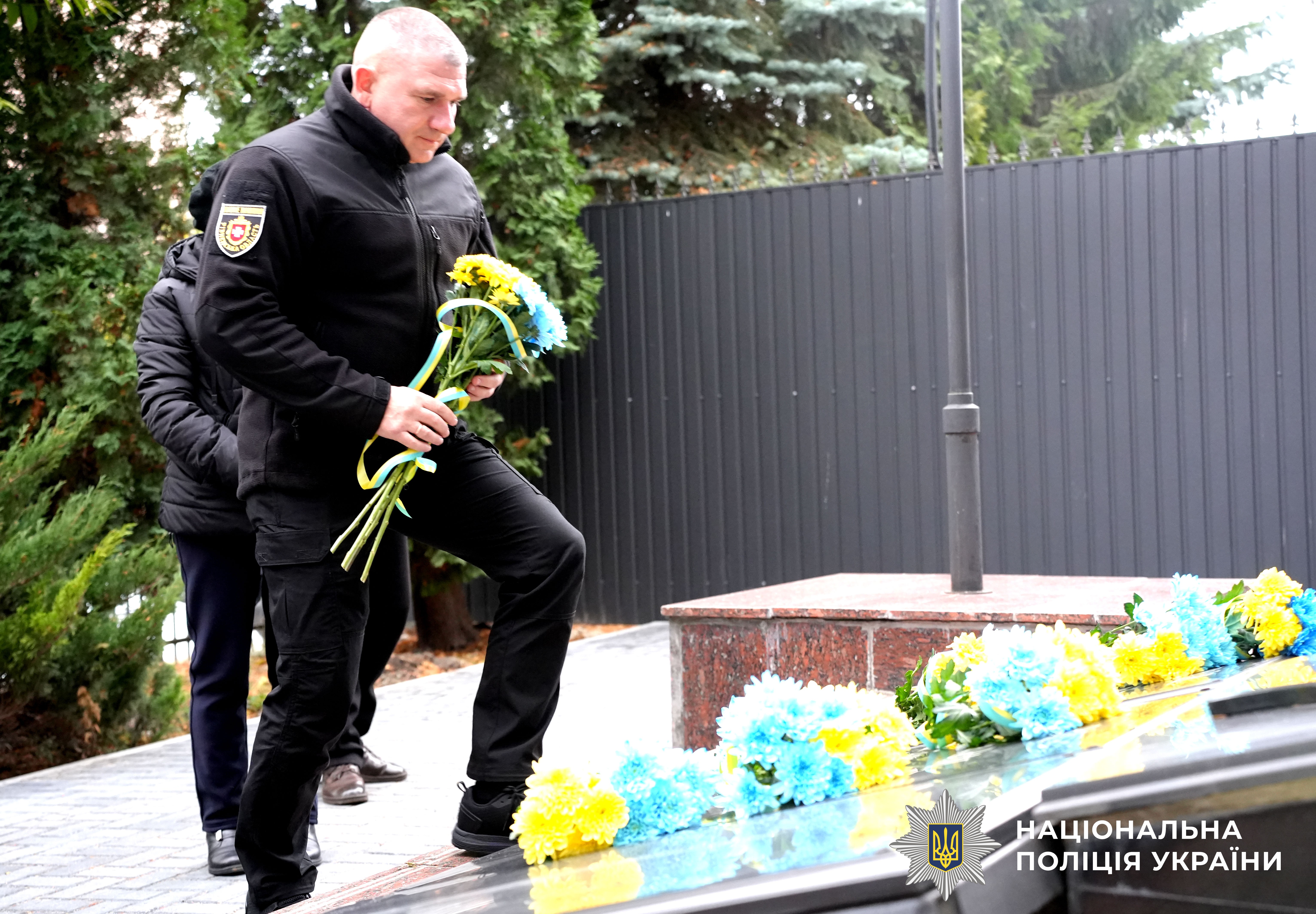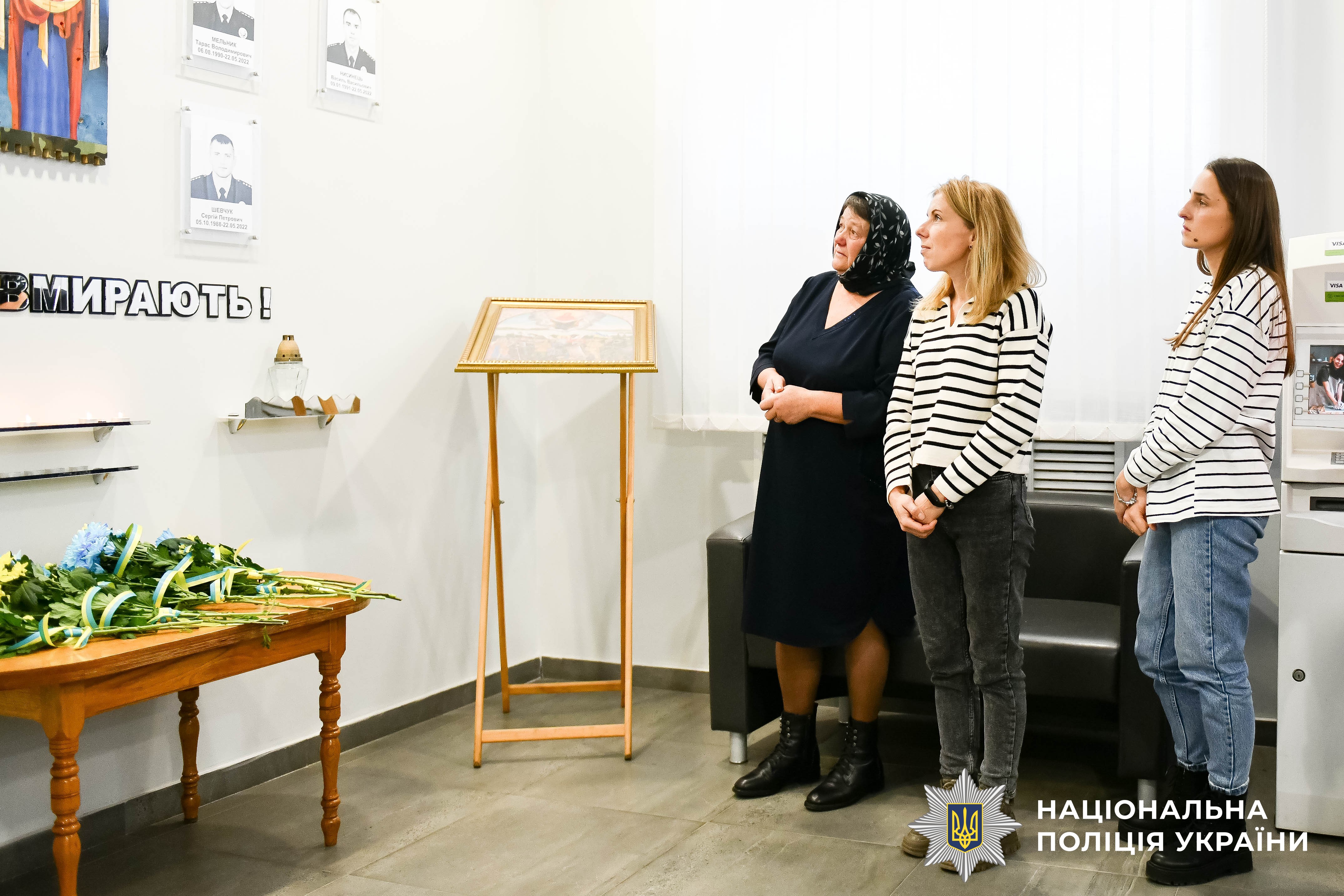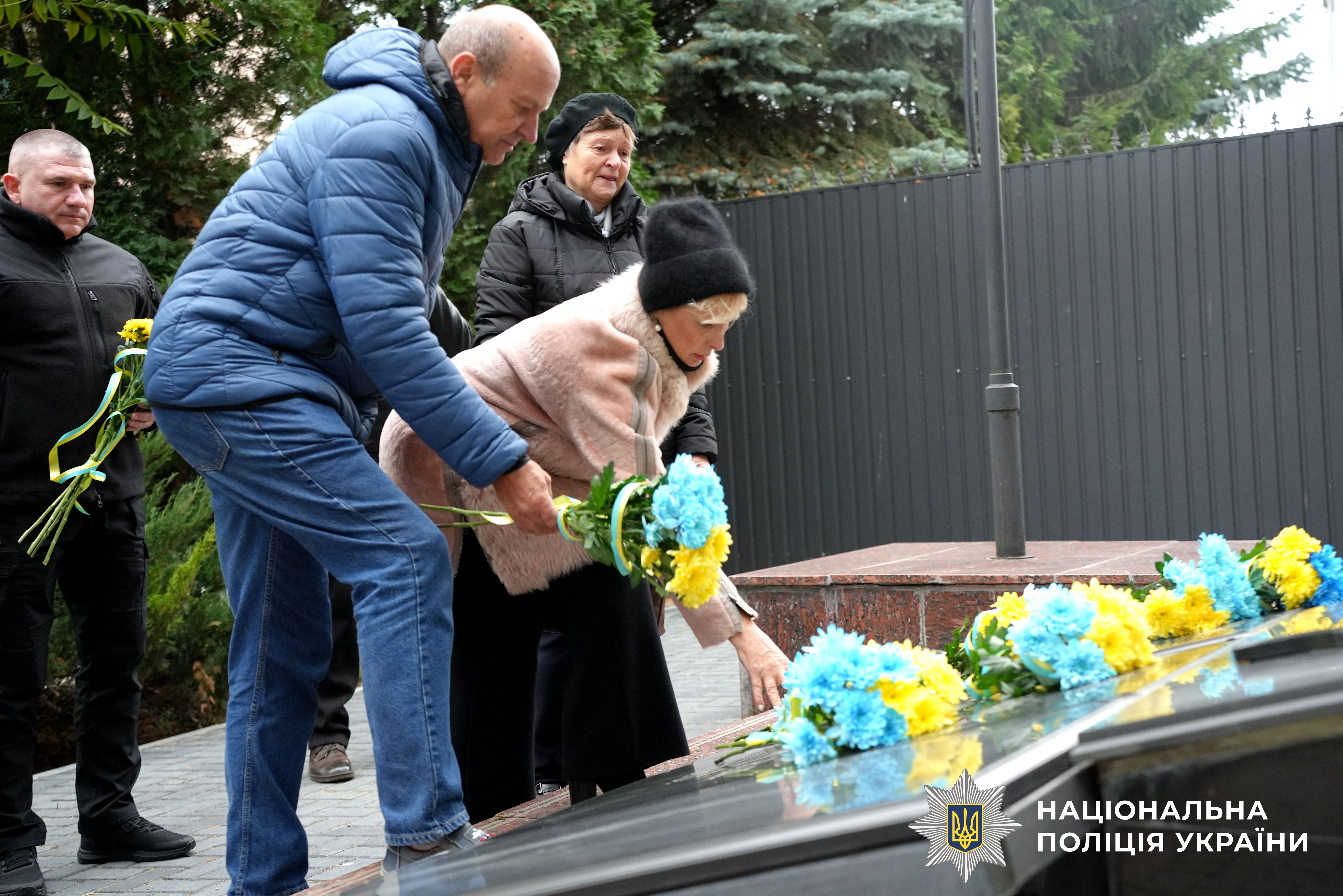 Після спілкування та теплих згадок про Героїв присутні поклали квіти до пам’ятника загиблим правоохоронцям та встановленої у фронт-офісі Головного управління меморіальної дошки.