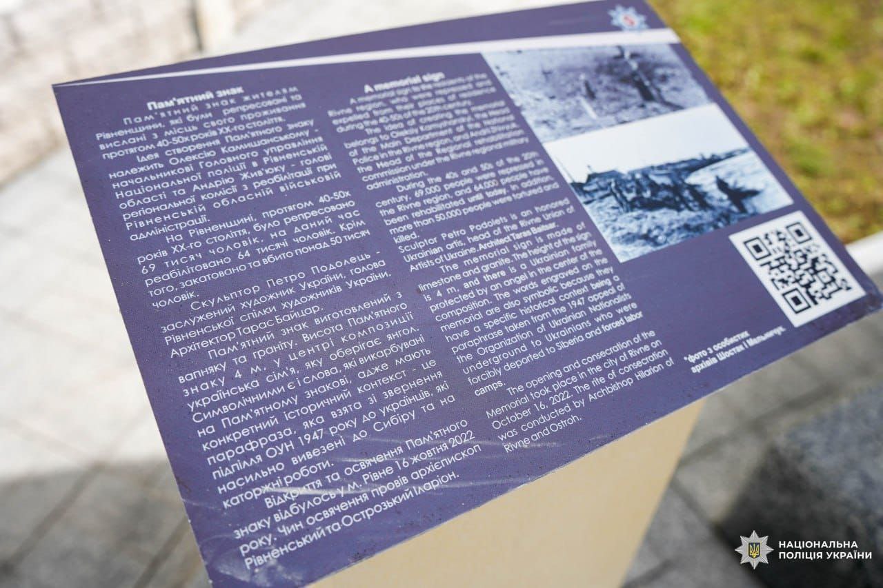 Начальник ГУНП в Рівненській області Віктор Шанський спільно з особовим складом та рівнянами хвилиною мовчання вшанували пам’ять всіх репресованих та виселених радянською владою українців в період 1940-1950 років та поклали квіти до пам’ятника, збудованого біля будівлі Главку у жовтні 2022 року.