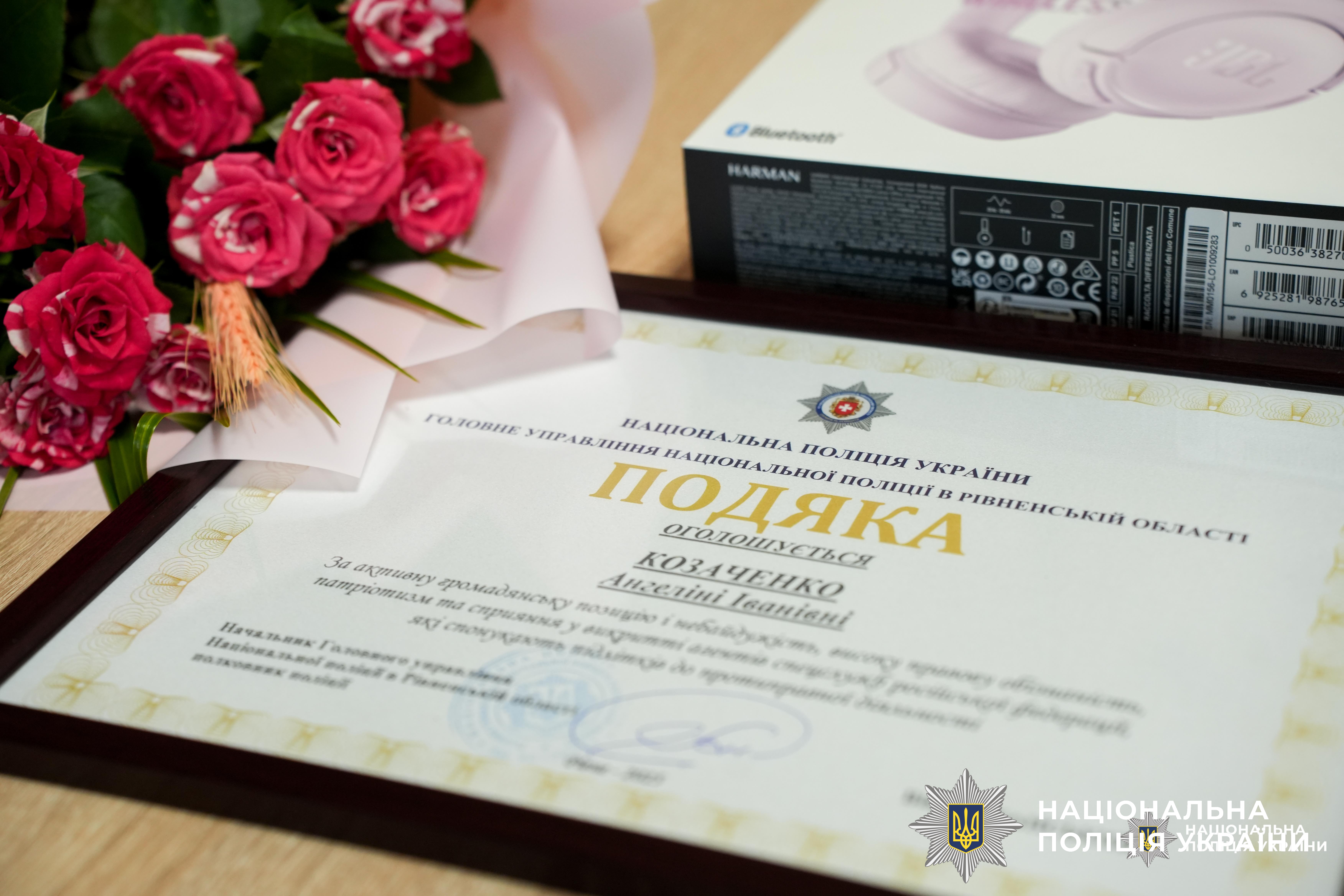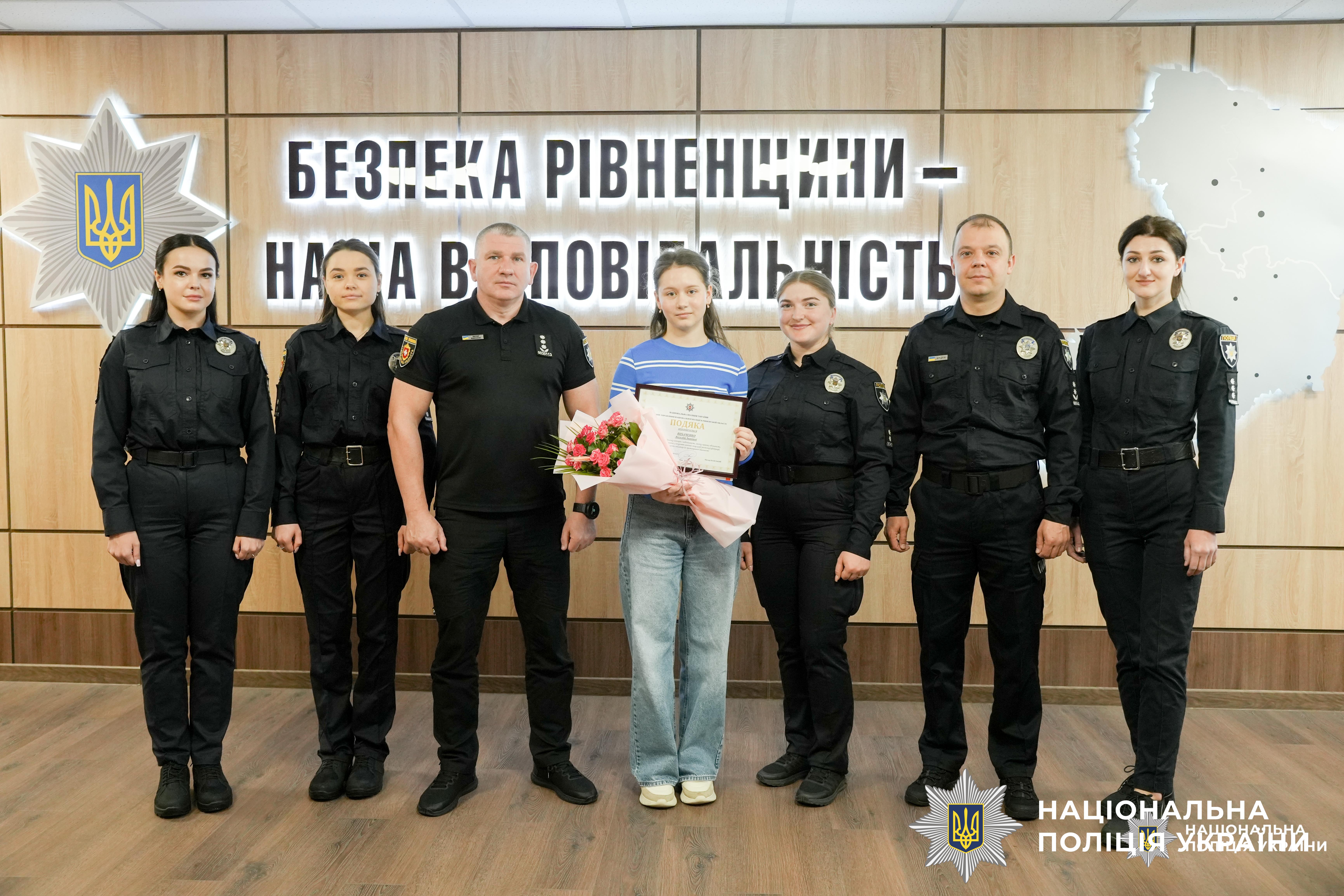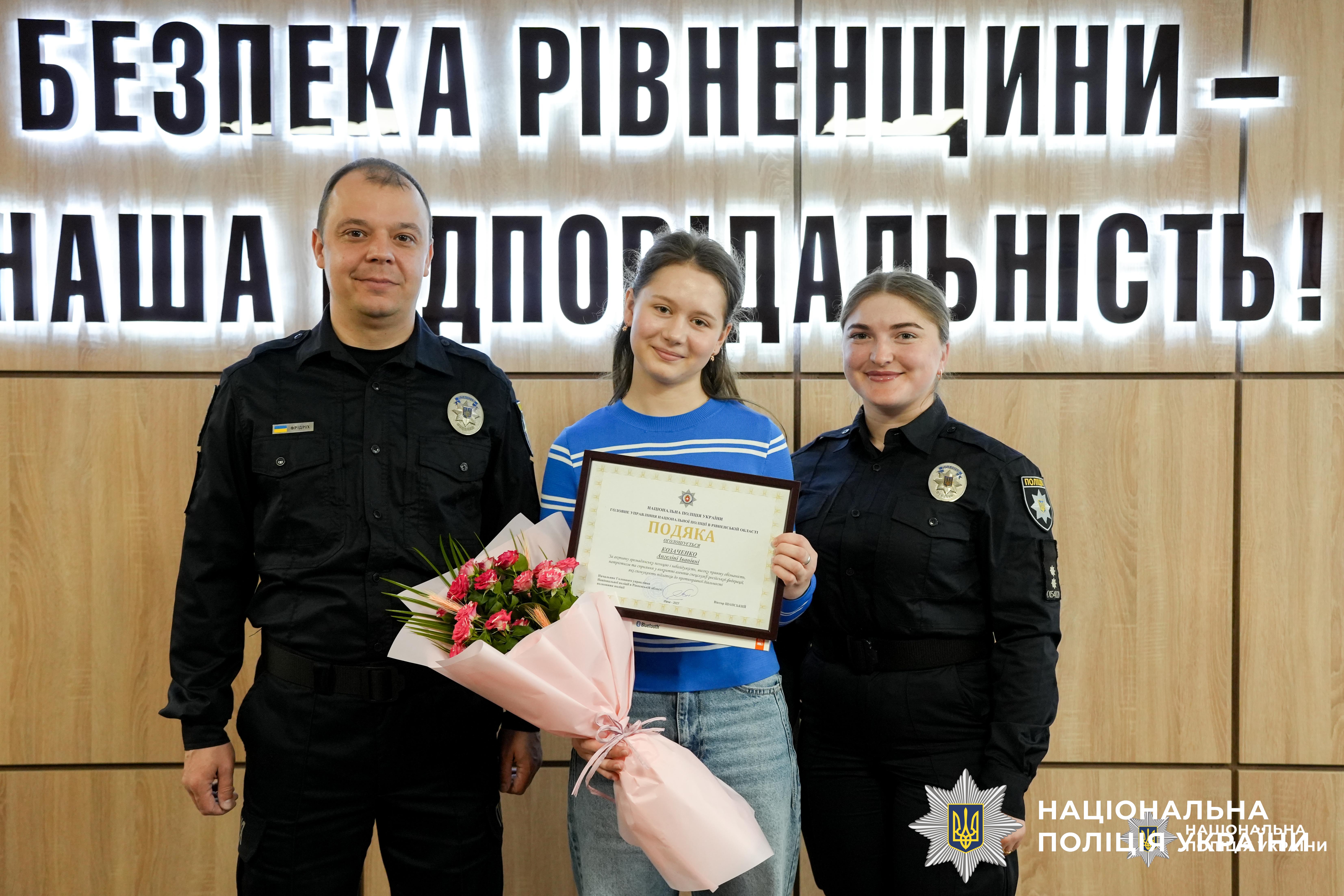 Керівництво поліції Рівненщини відзначило ліцеїстку, яка повідомила про пропозицію завербувати її спецлужбами рф