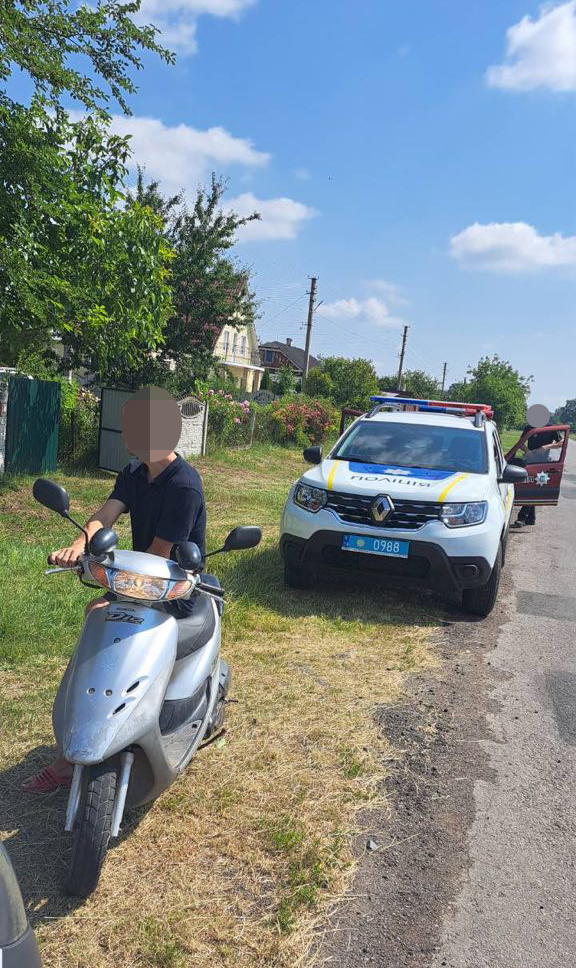 Учора, 18 липня, близько 10:30 під час патрулювання у селі Береги, в поле зору поліцейської офіцерки Милинівської громади потрапив мопед «Honda», водій якого рухався без мотошолому.