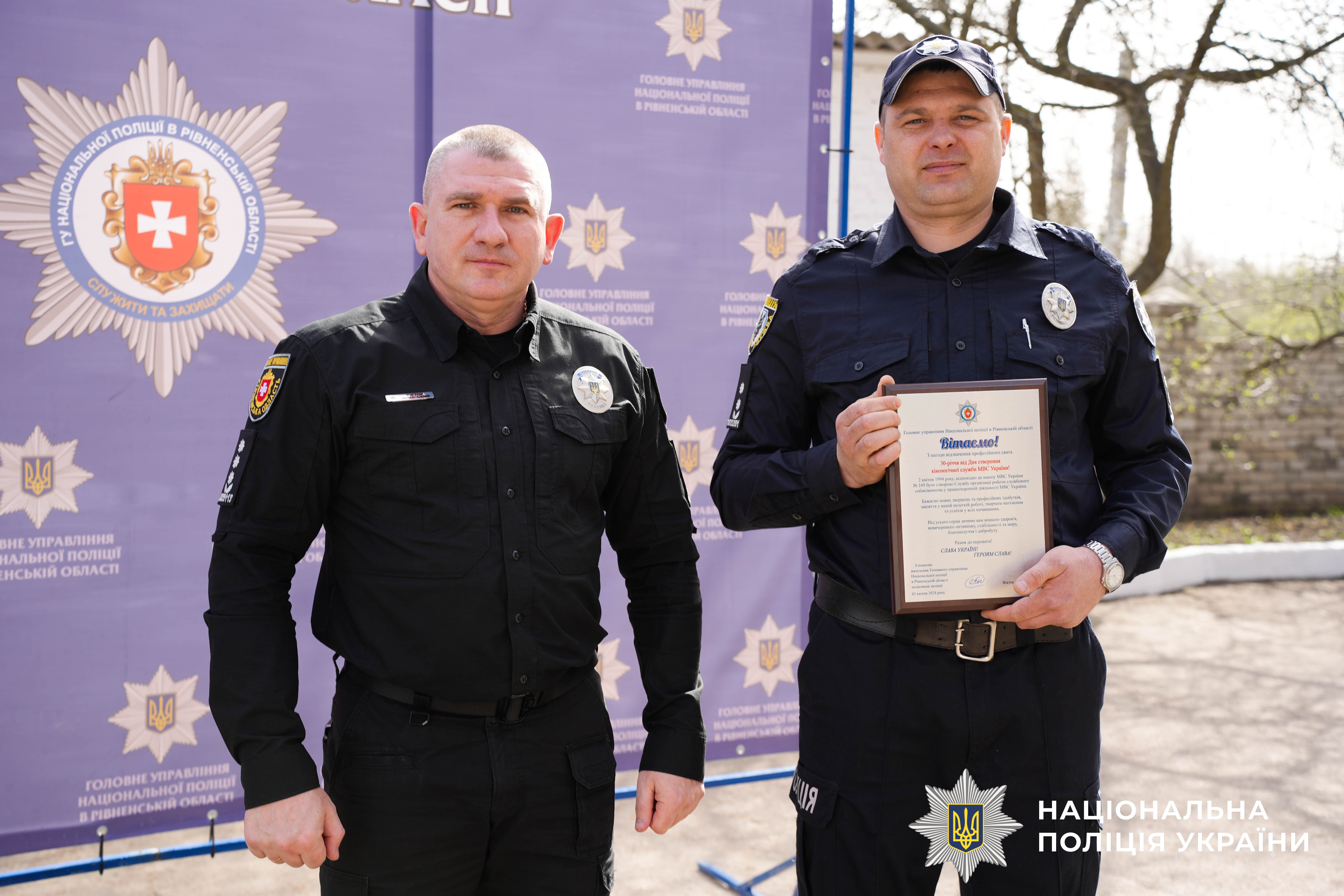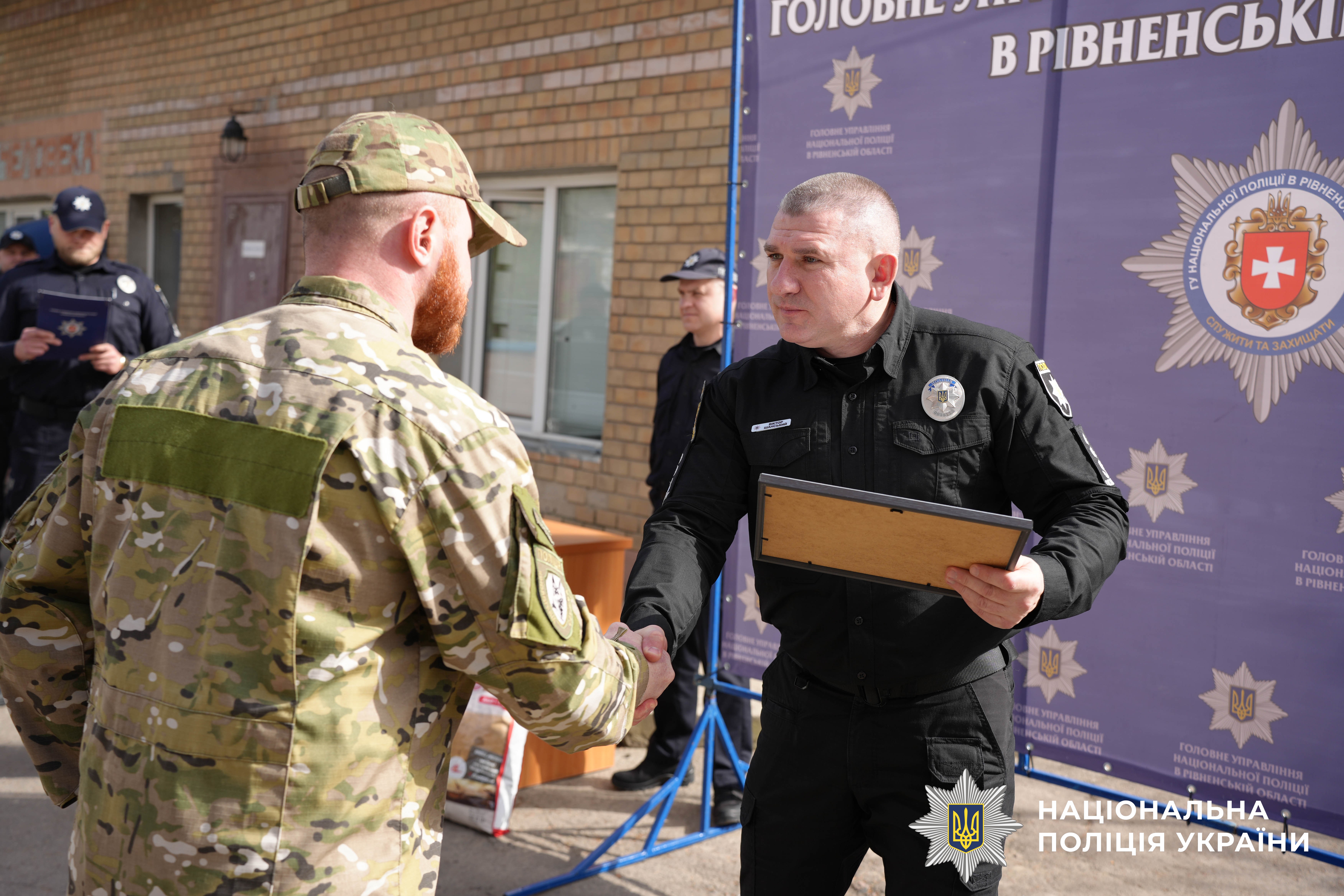Кінологічній службі — 30 років: очільник поліції Рівненщини привітав кінологів та їхніх чотирилапих напарників